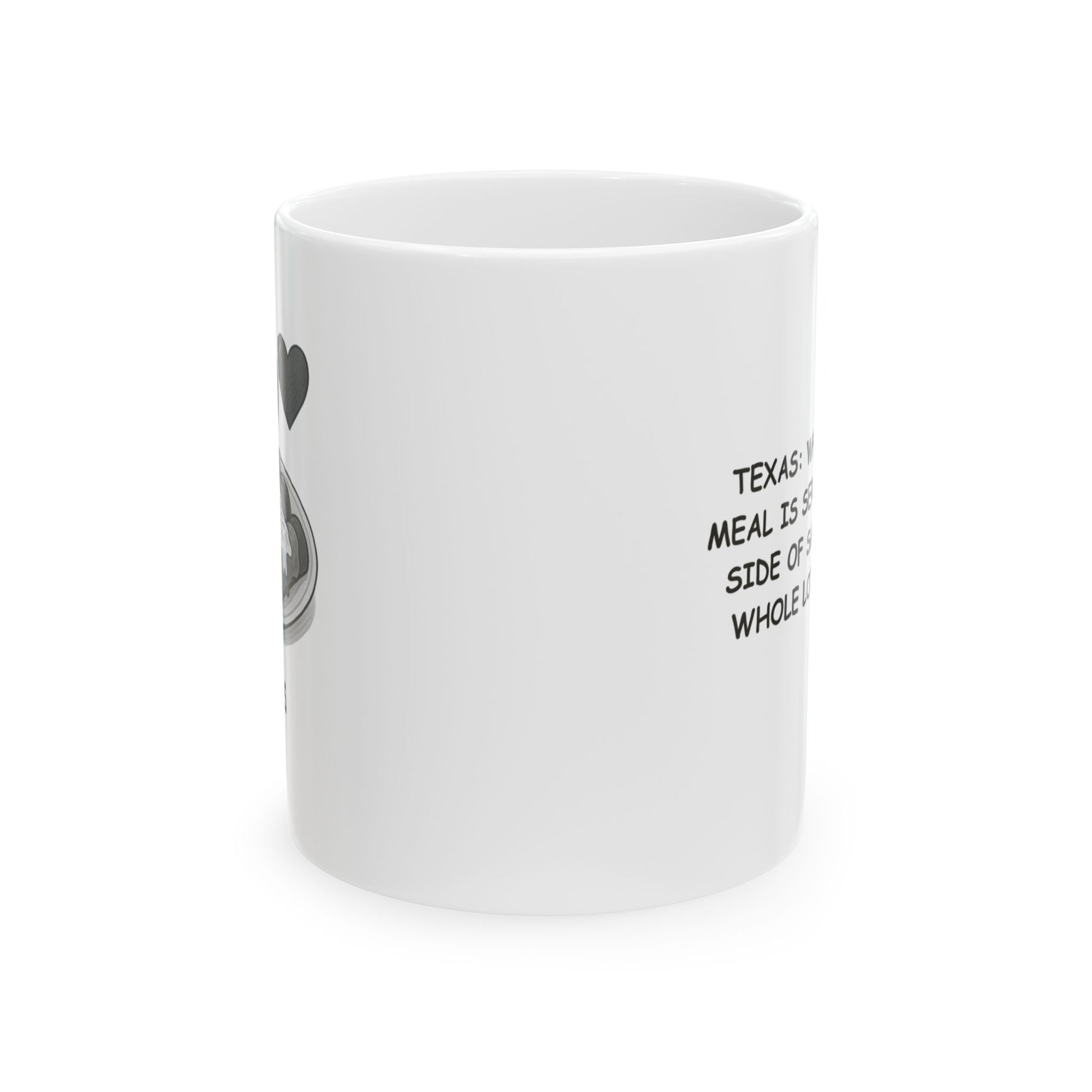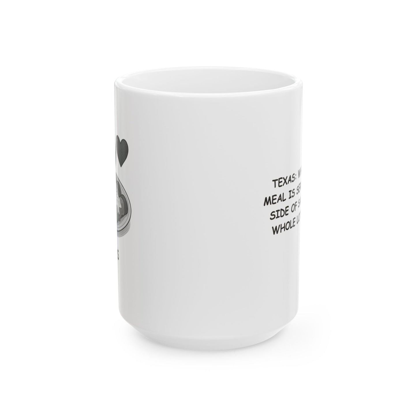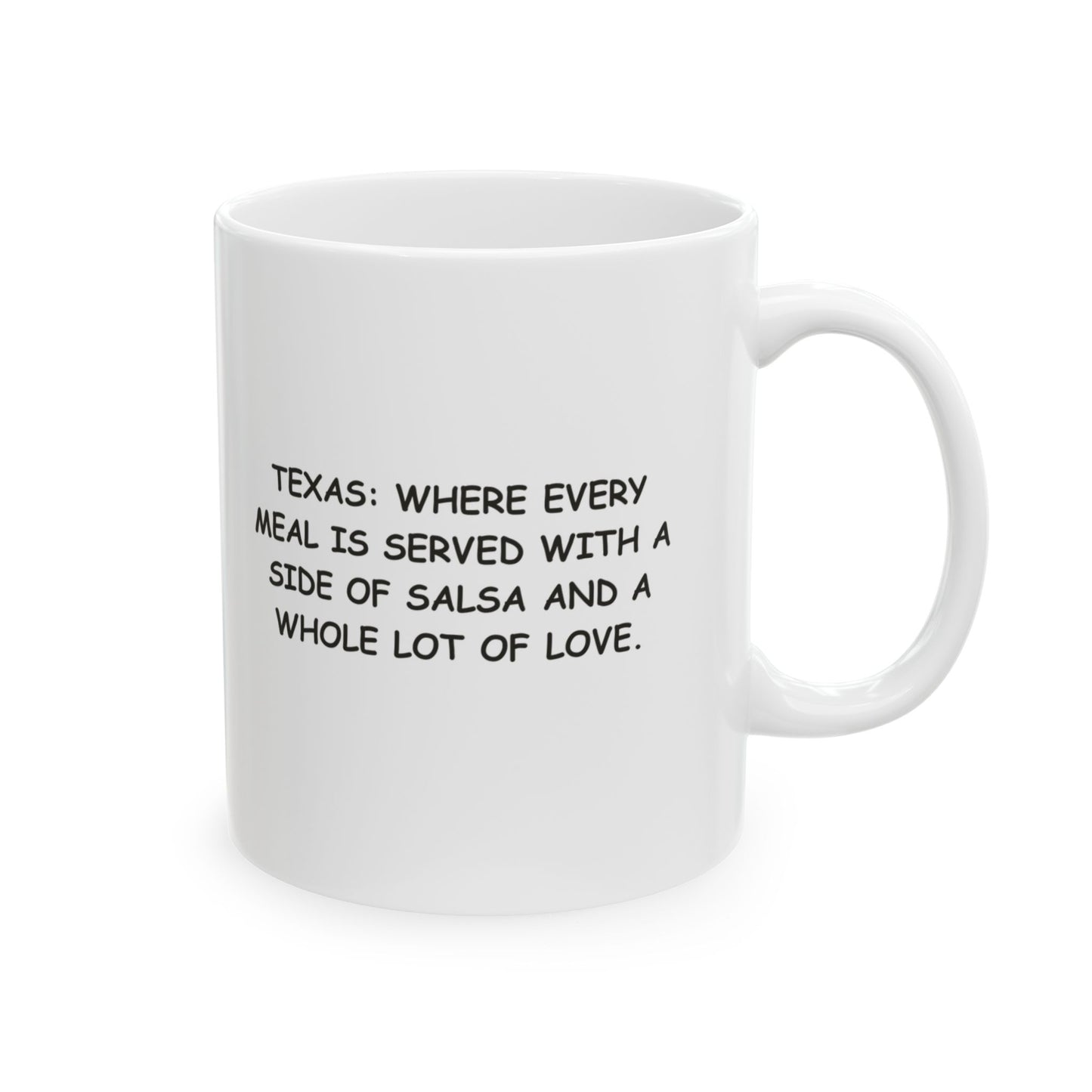 "Texas: Where every meal is served with a side of salsa and a whole lot of love." Ceramic Mug - 11oz & 15oz - 12757