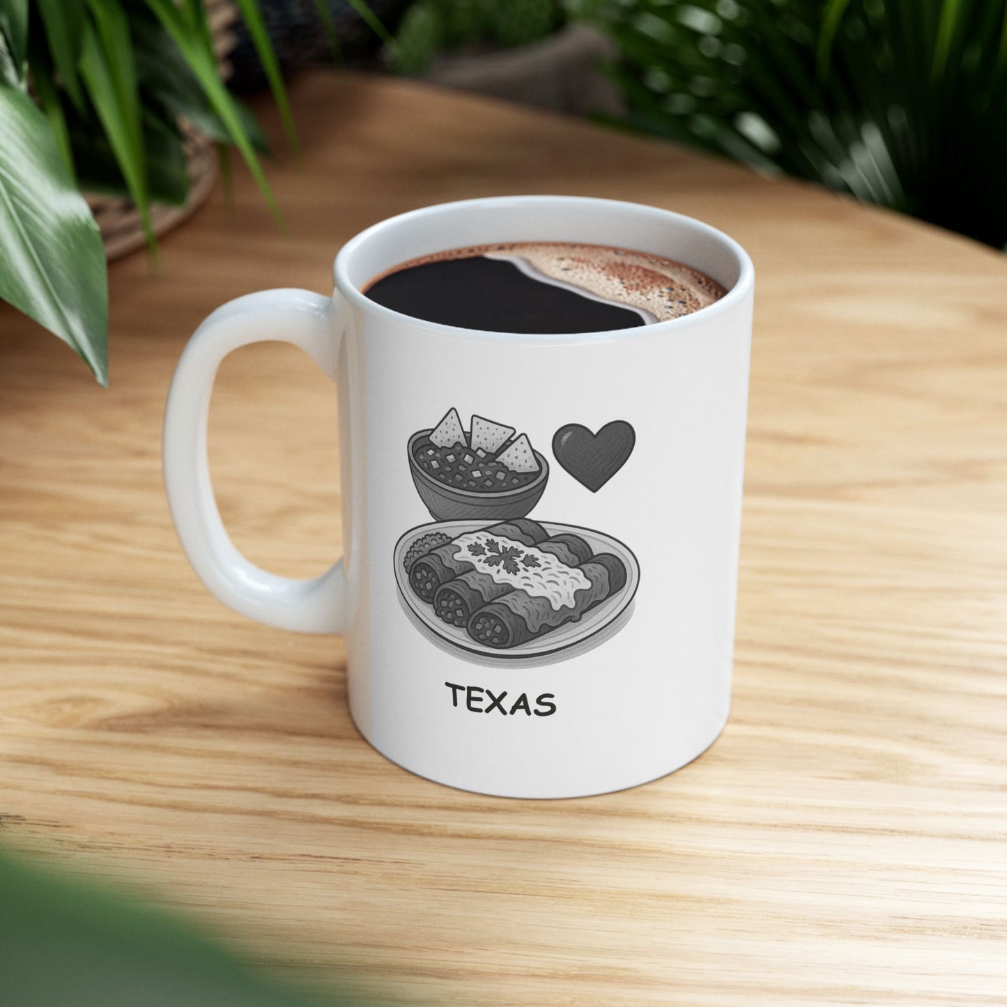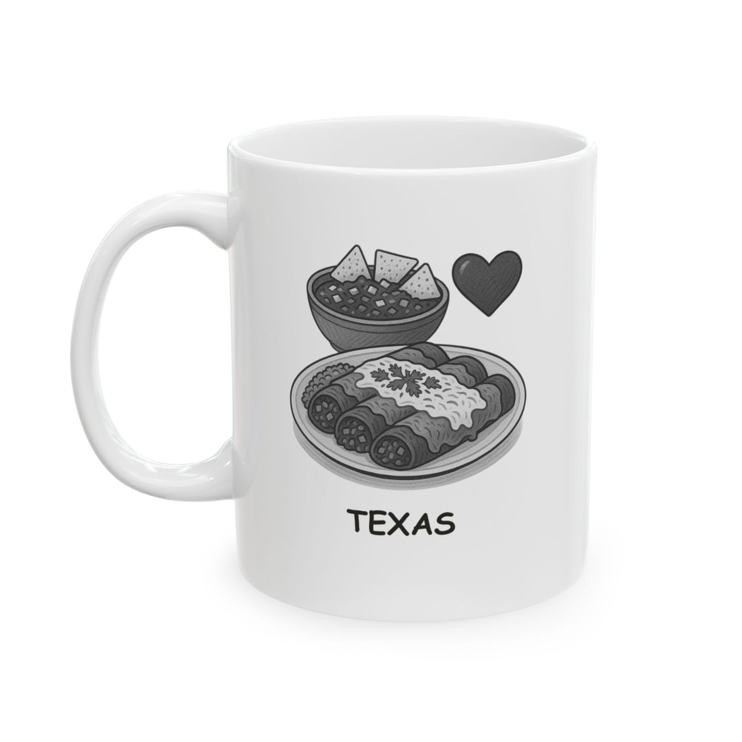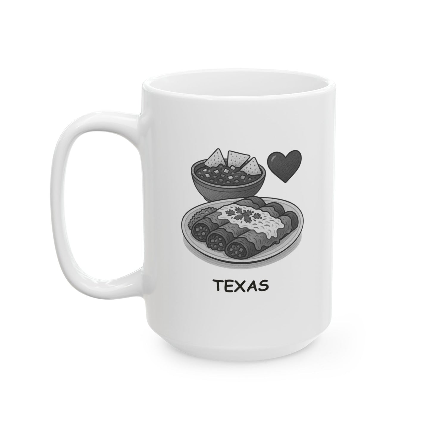 "Texas: Where every meal is served with a side of salsa and a whole lot of love." Ceramic Mug - 11oz & 15oz - 12757