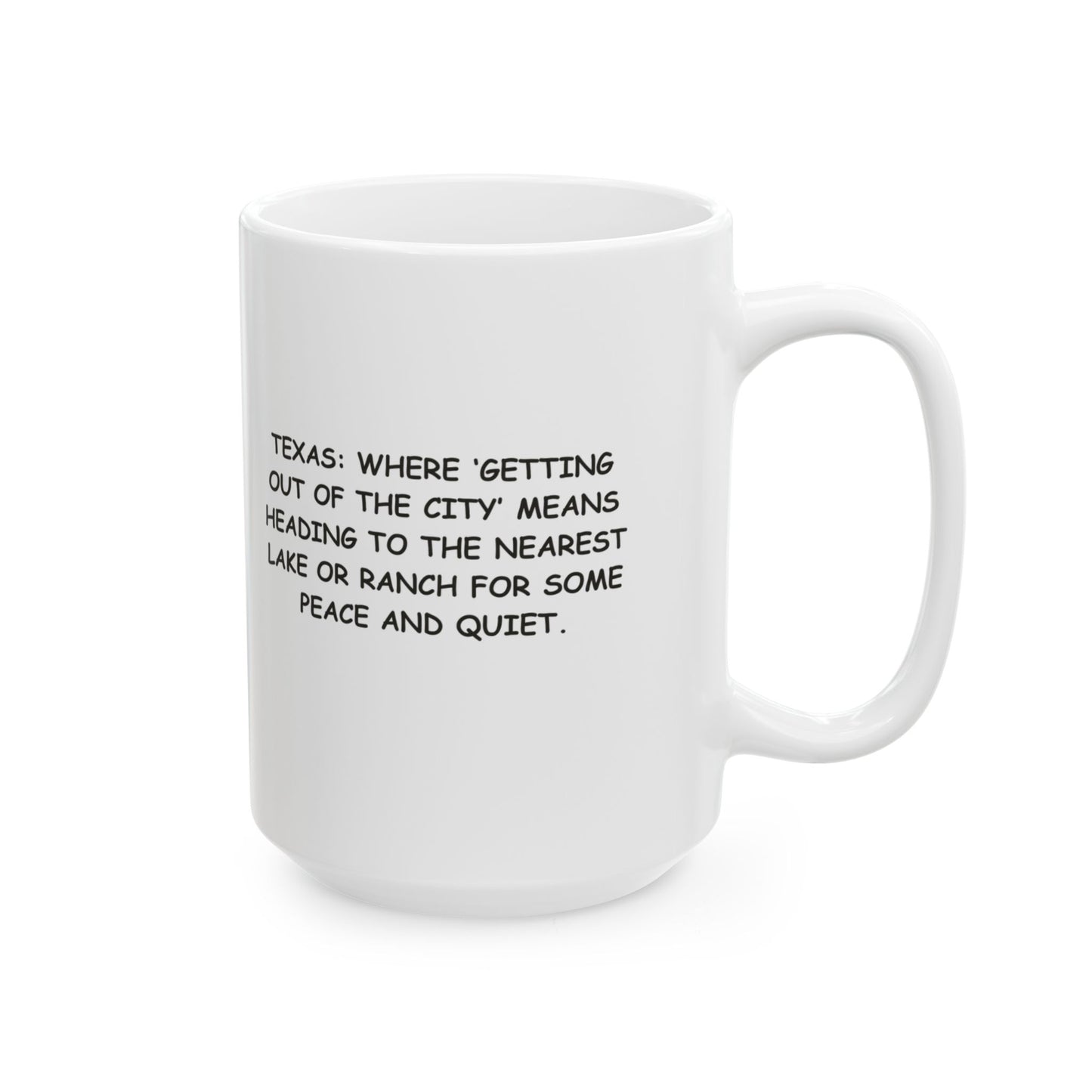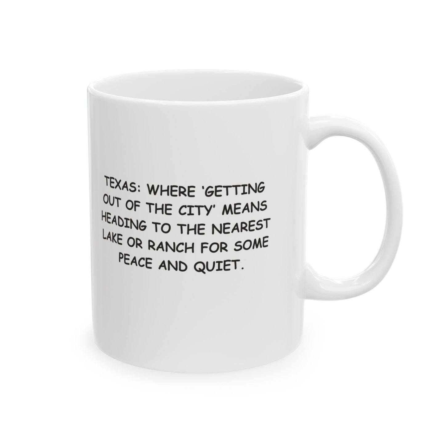 "Texas: Where ‘getting out of the city’ means heading to the nearest lake or ranch for some peace and quiet." Ceramic Mug - 12751