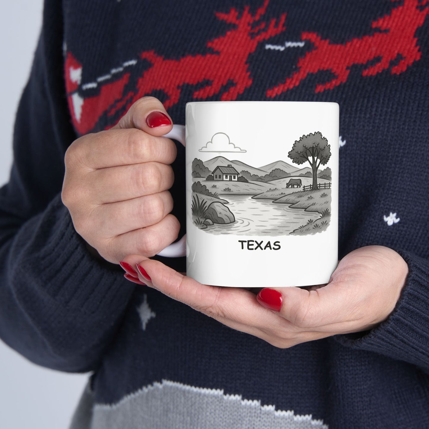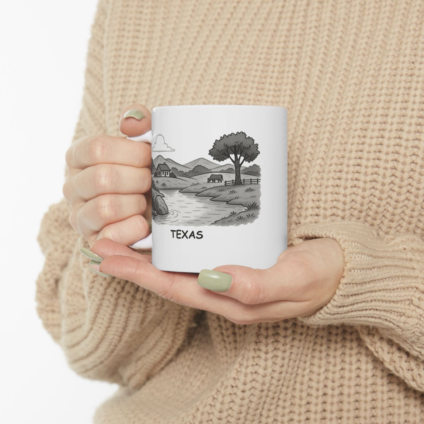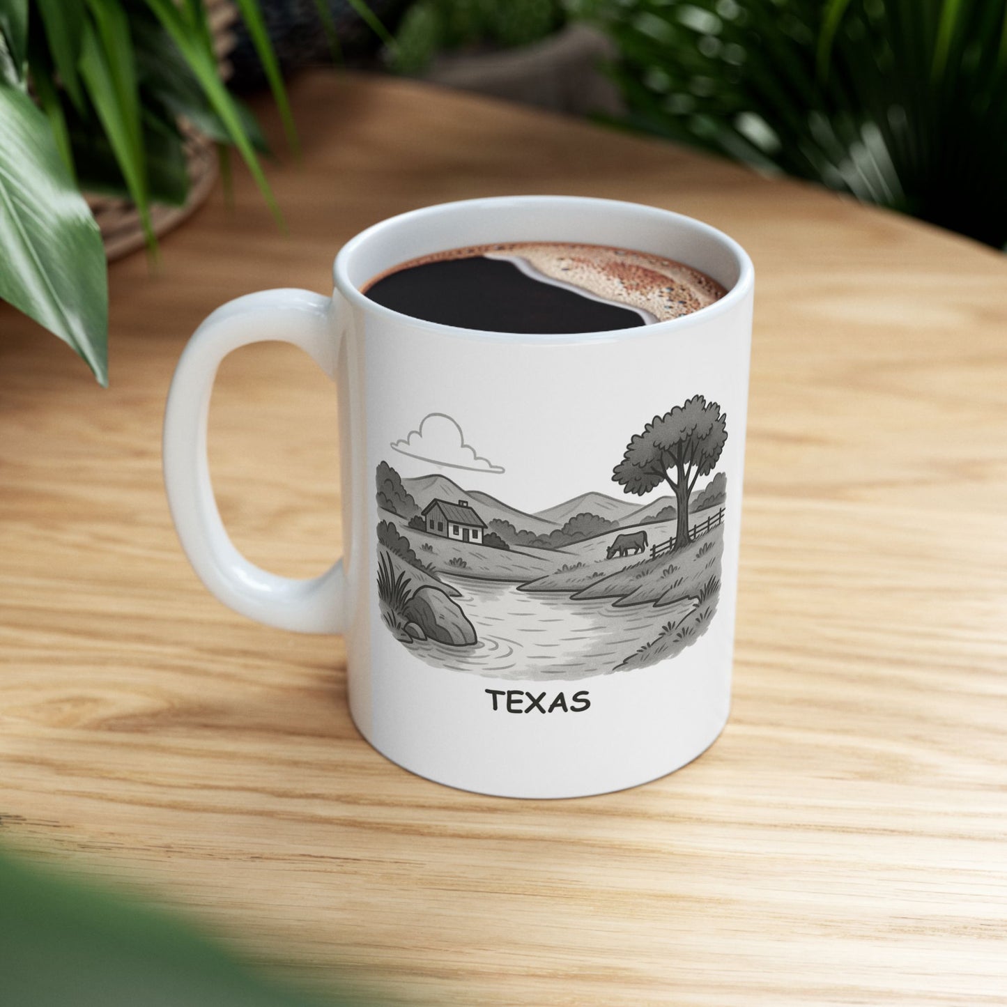 In Texas, escaping the hustle and bustle doesn’t mean sitting in traffic—it means swapping skyscrapers for wide-open skies, peaceful lakes, and quiet ranches. This ceramic mug celebrates that perfect balance of Texas living. Available in 11oz and 15oz sizes, it’s ideal for enjoying your morning coffee while dreaming of your next peaceful getaway. A great gift for Texans and nature lovers alike!