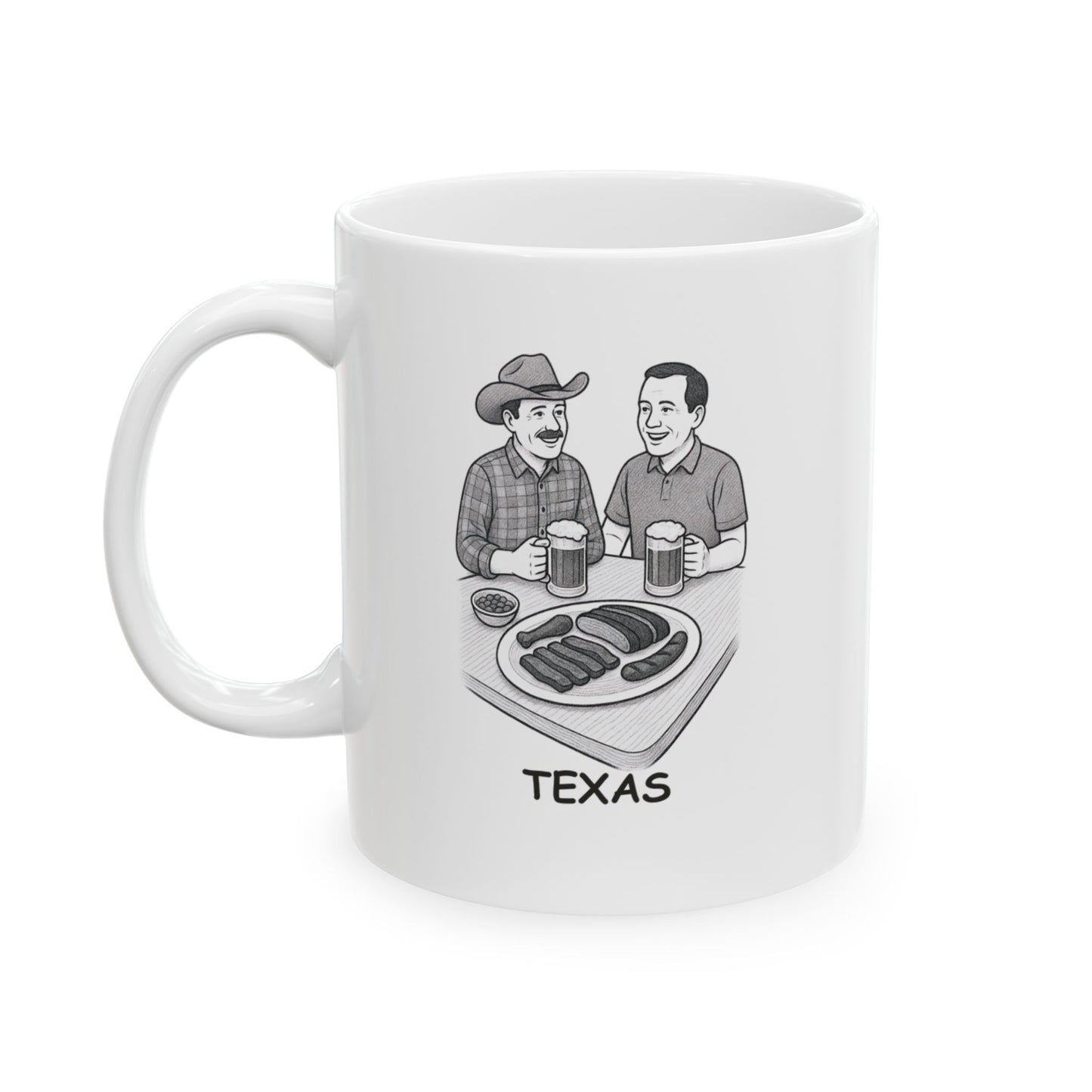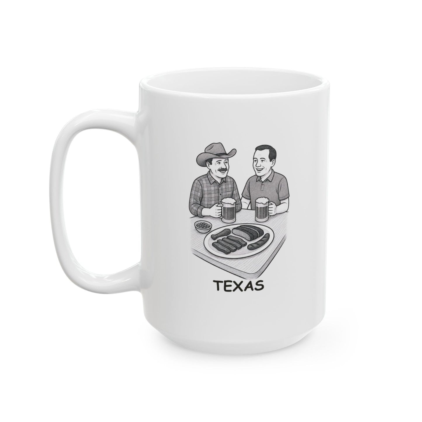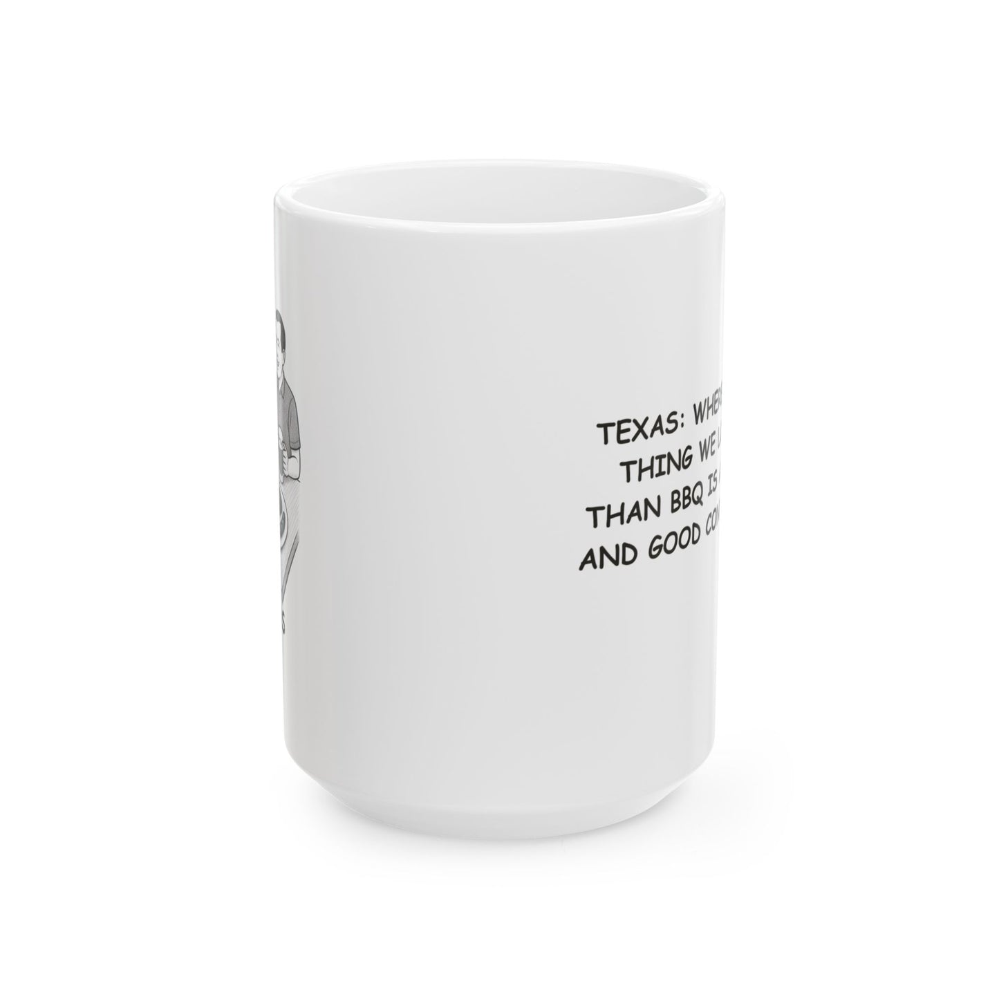 "Texas: Where the only thing we love more than BBQ is a cold beer and good conversation." Ceramic Mug - 12749
