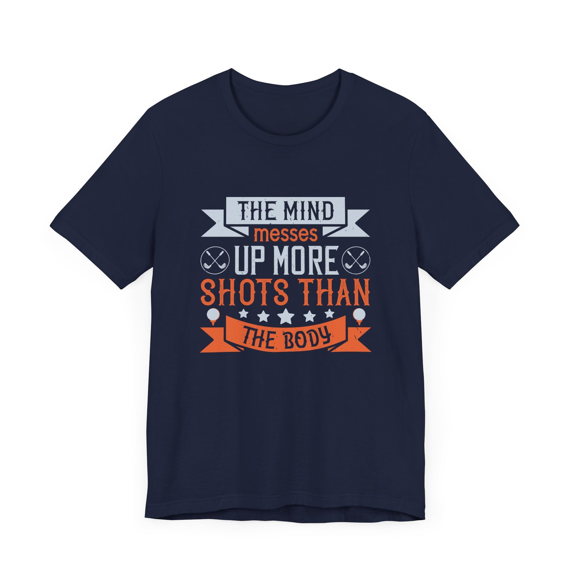 In the game of golf, mental strength often outweighs physical prowess. This Unisex Jersey Short Sleeve Tee, featuring the thought-provoking quote, "The Mind Messes Up More Shots Than the Body," is a reminder that success on the course is as much about controlling your thoughts as it is about perfecting your swing.