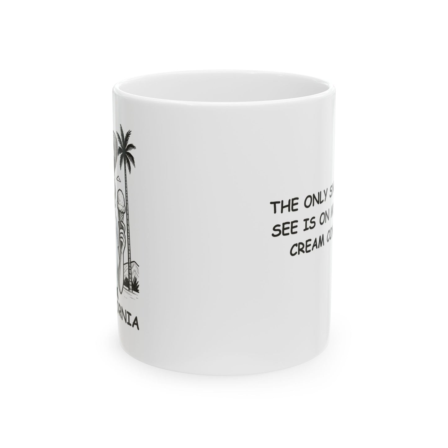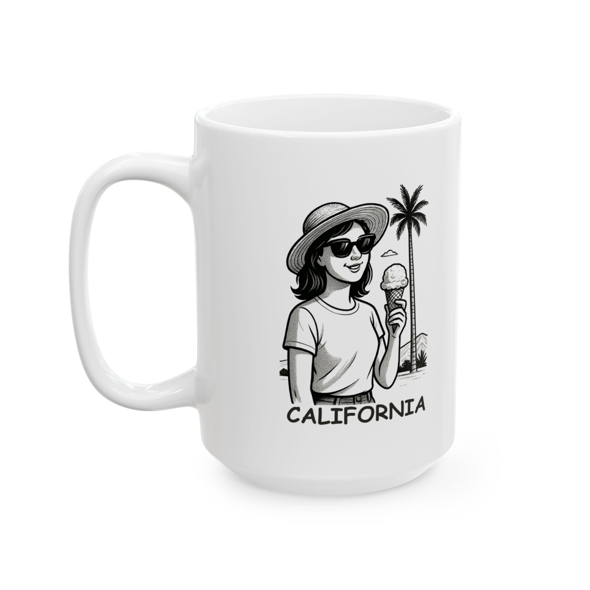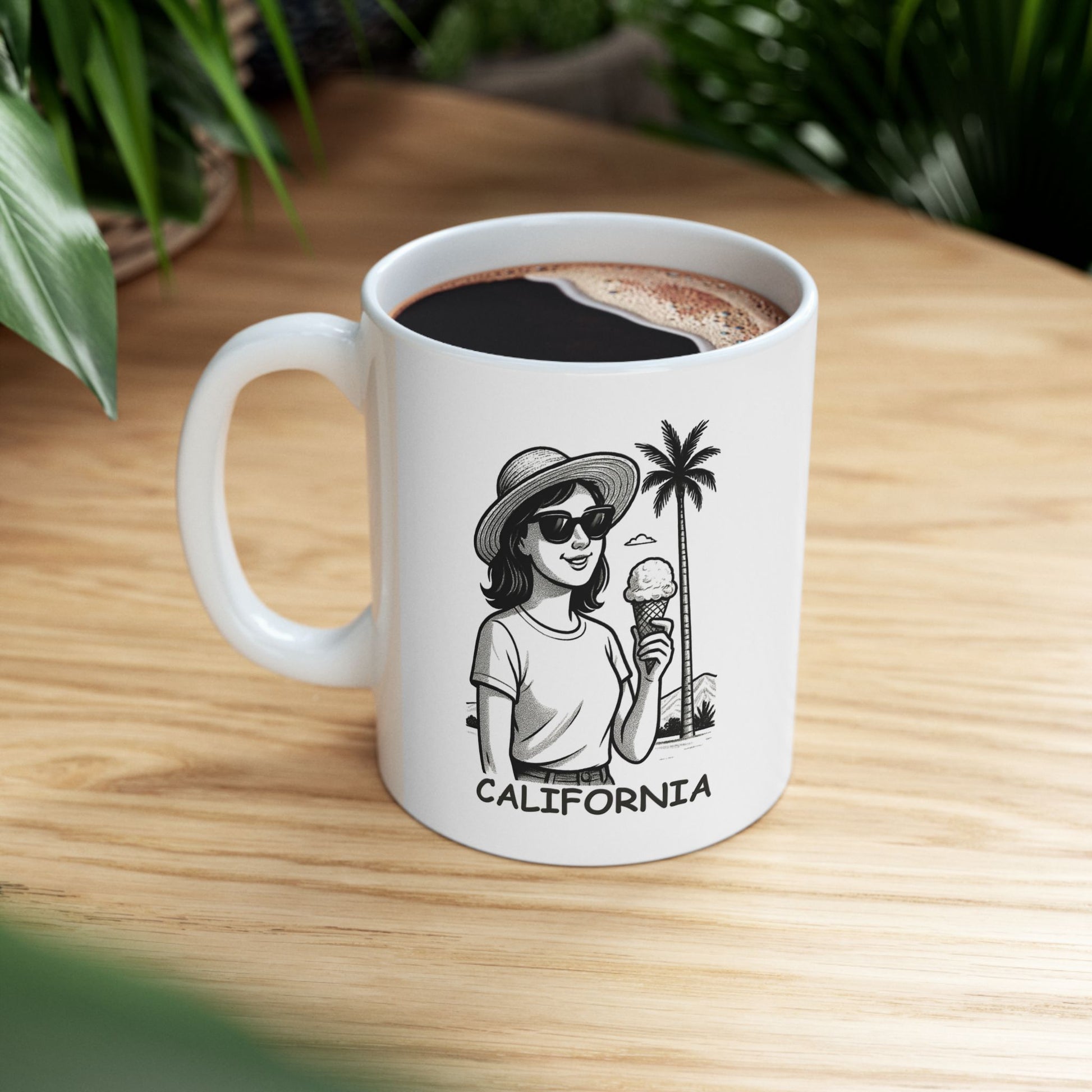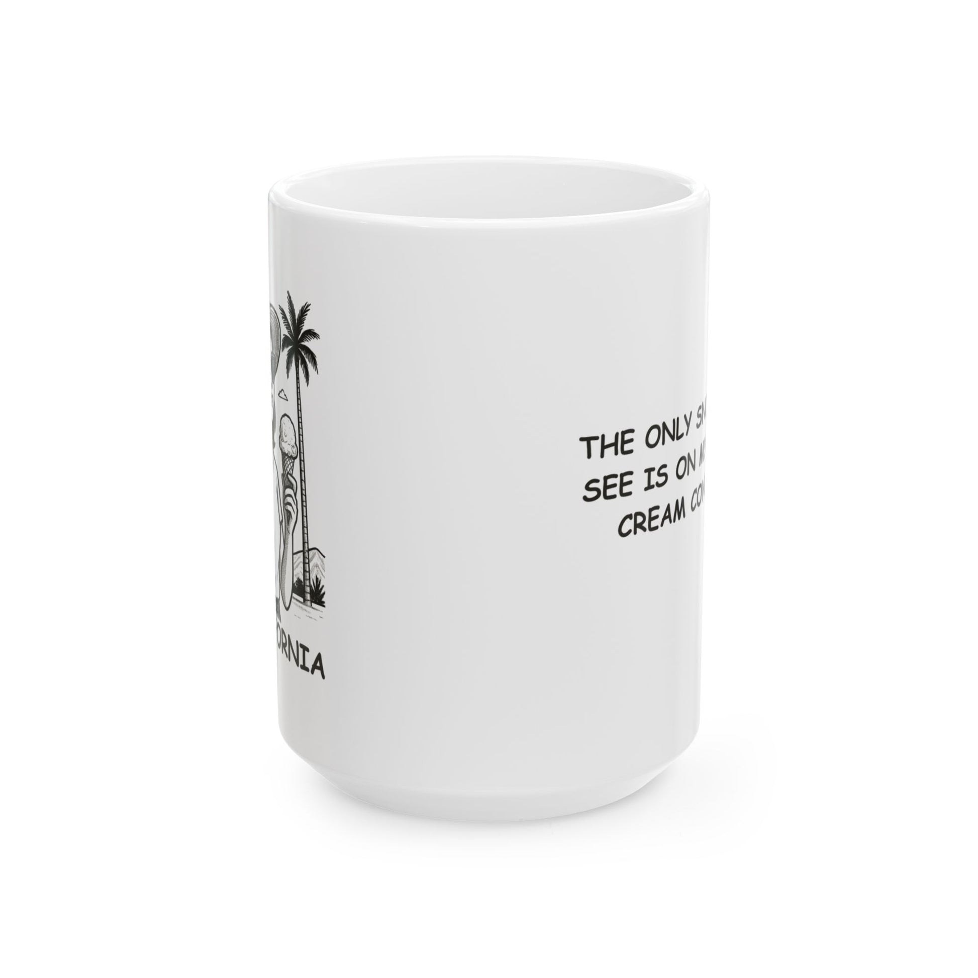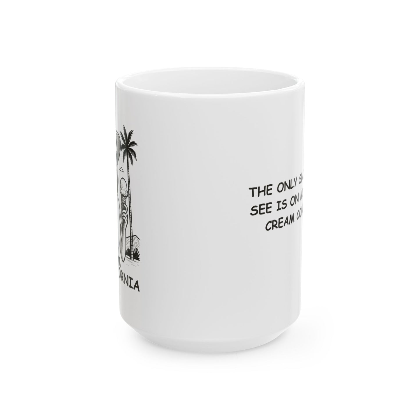 Snow days? Not in California. Our "The only snow I see is on my ice cream cone." Ceramic Mug brings a sweet, sunny twist to your morning routine. Perfect for those who prefer palm trees to snowflakes and believe dessert is better than winter weather. Whether you’re sipping coffee or tea, this mug delivers a taste of the Golden State’s year-round sunshine and humor.