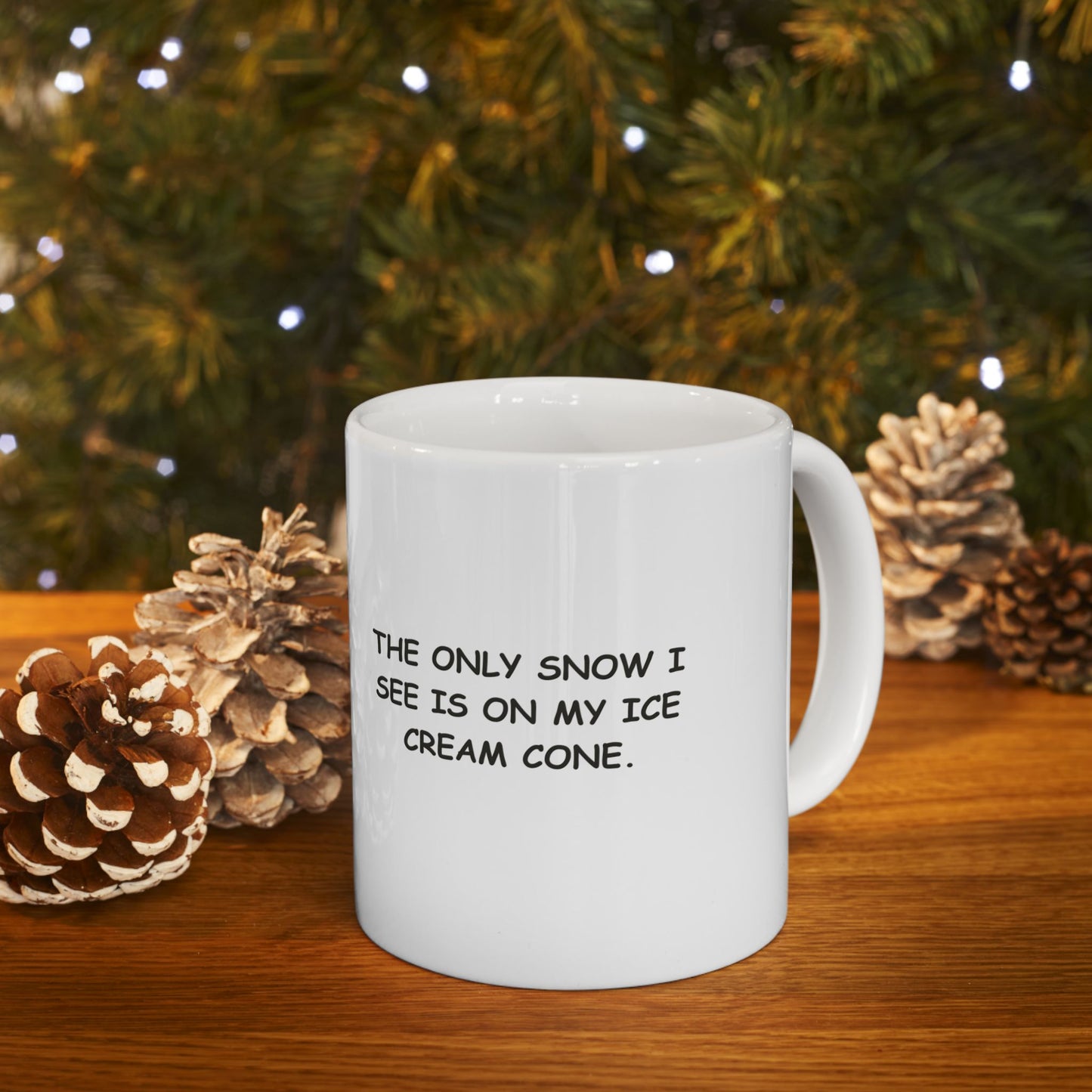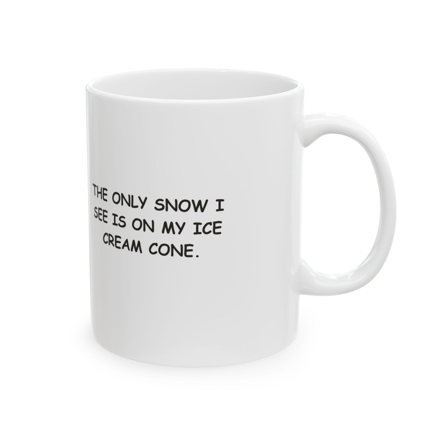 "The only snow I see is on my ice cream cone." Ceramic Mug - 12732