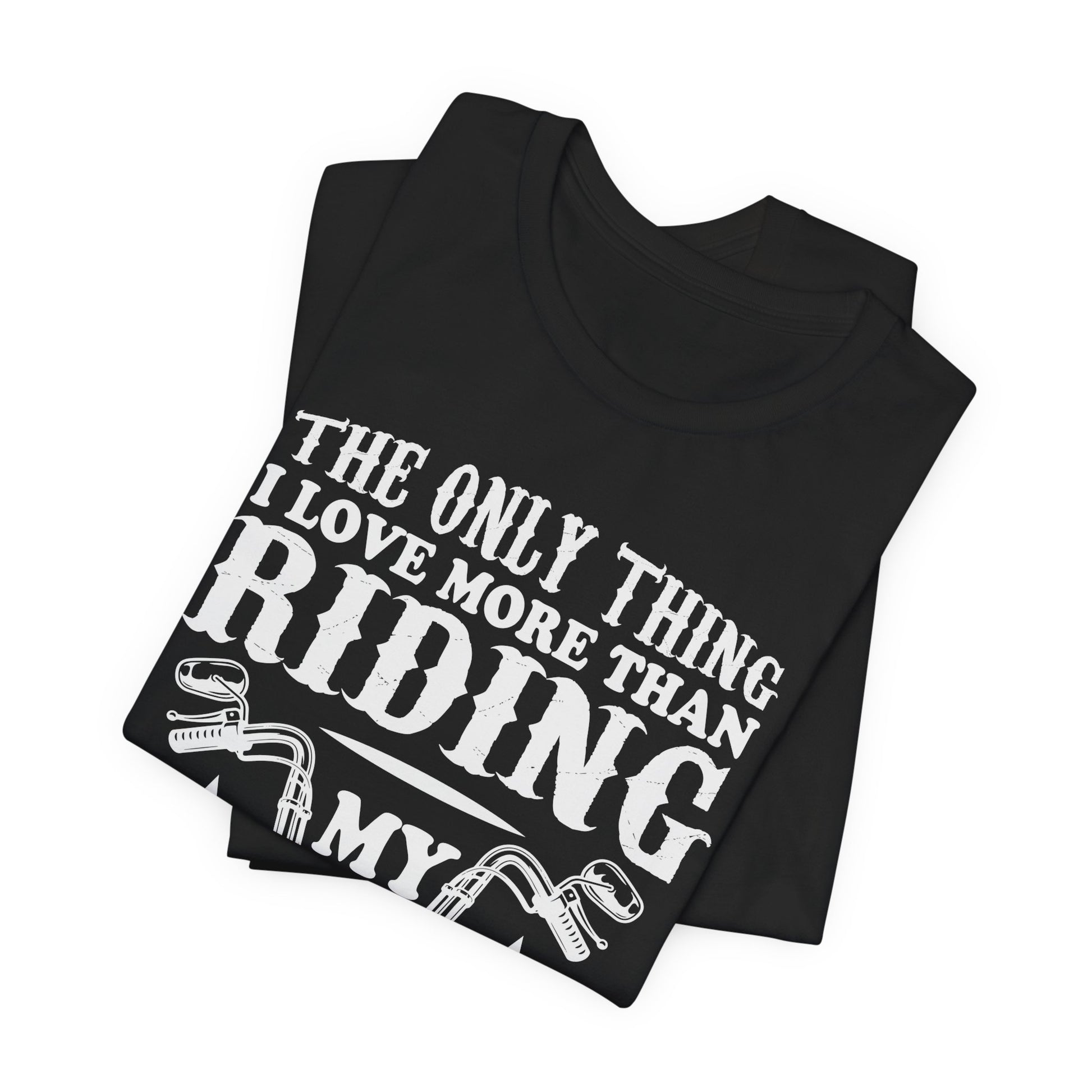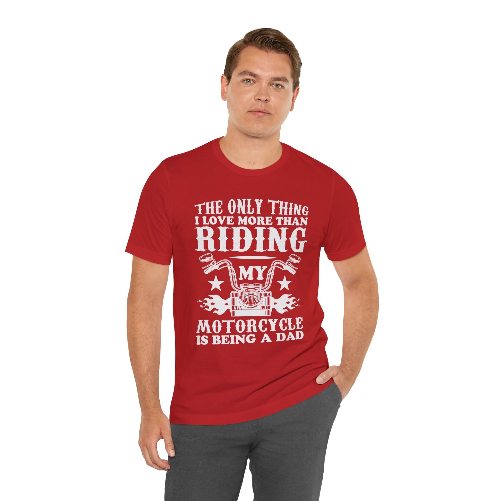 Crafted from premium ring-spun cotton, this tee provides a soft, comfortable fit that’s great for any occasion. The design features the heartfelt phrase "The Only Thing I Love More Than Riding My Motorcycle is Being a Dad" alongside a cool motorcycle graphic, making it a perfect choice for biker dads.