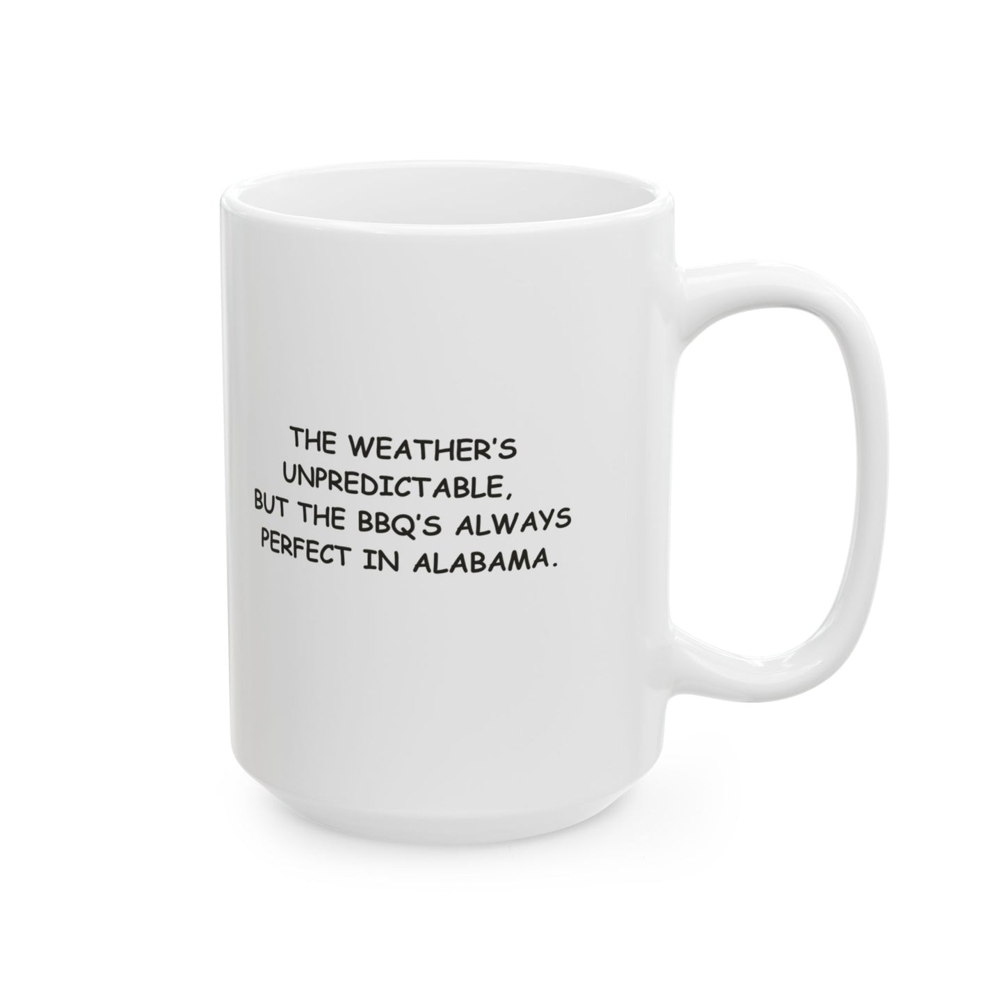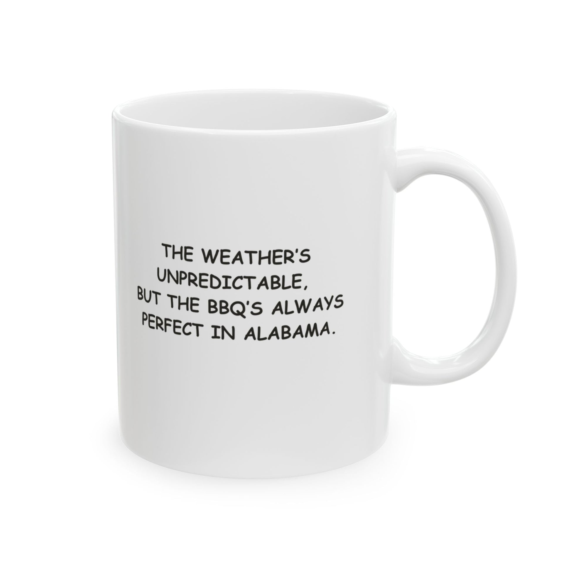 "The weather’s unpredictable, but the BBQ’s always perfect in Alabama." Ceramic Mug - 12814