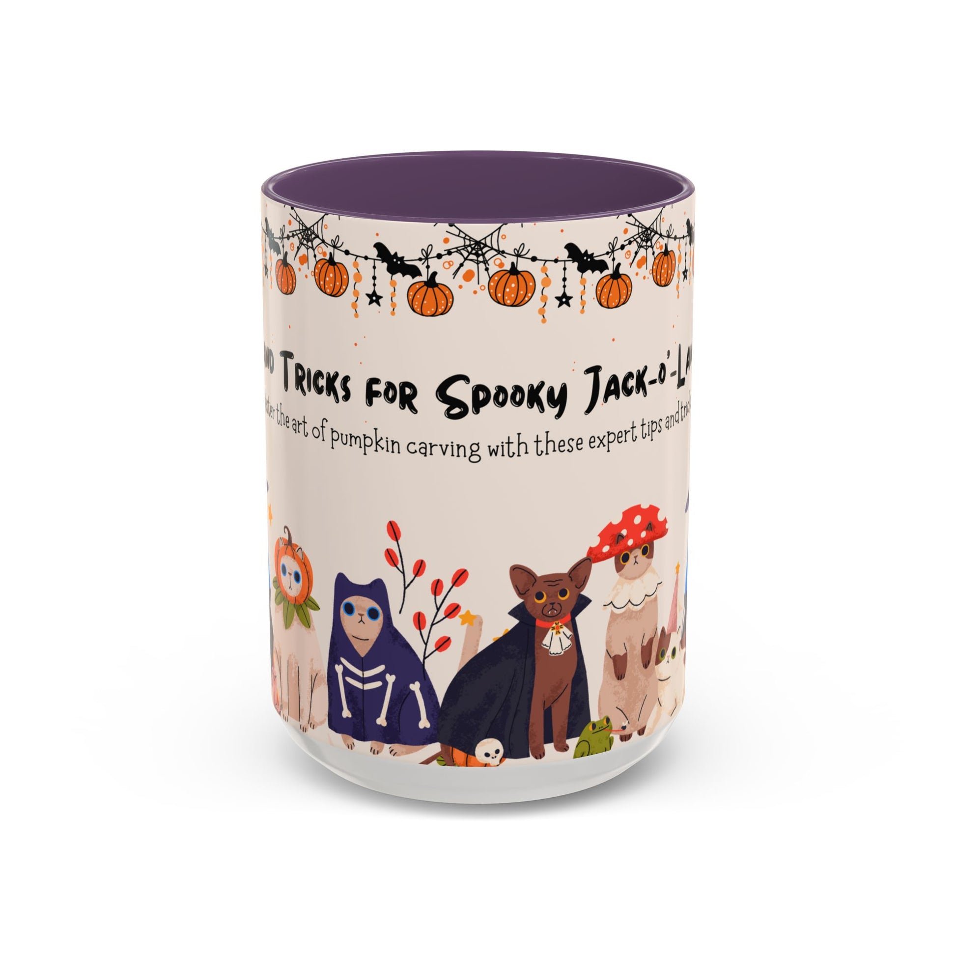Get into the Halloween spirit with the Tips & Tricks for Spooky Jack-o-Lanterns Accent Coffee Mug! Featuring a fun, spooky design, this mug is perfect for pumpkin carving enthusiasts or anyone who loves the Halloween season.