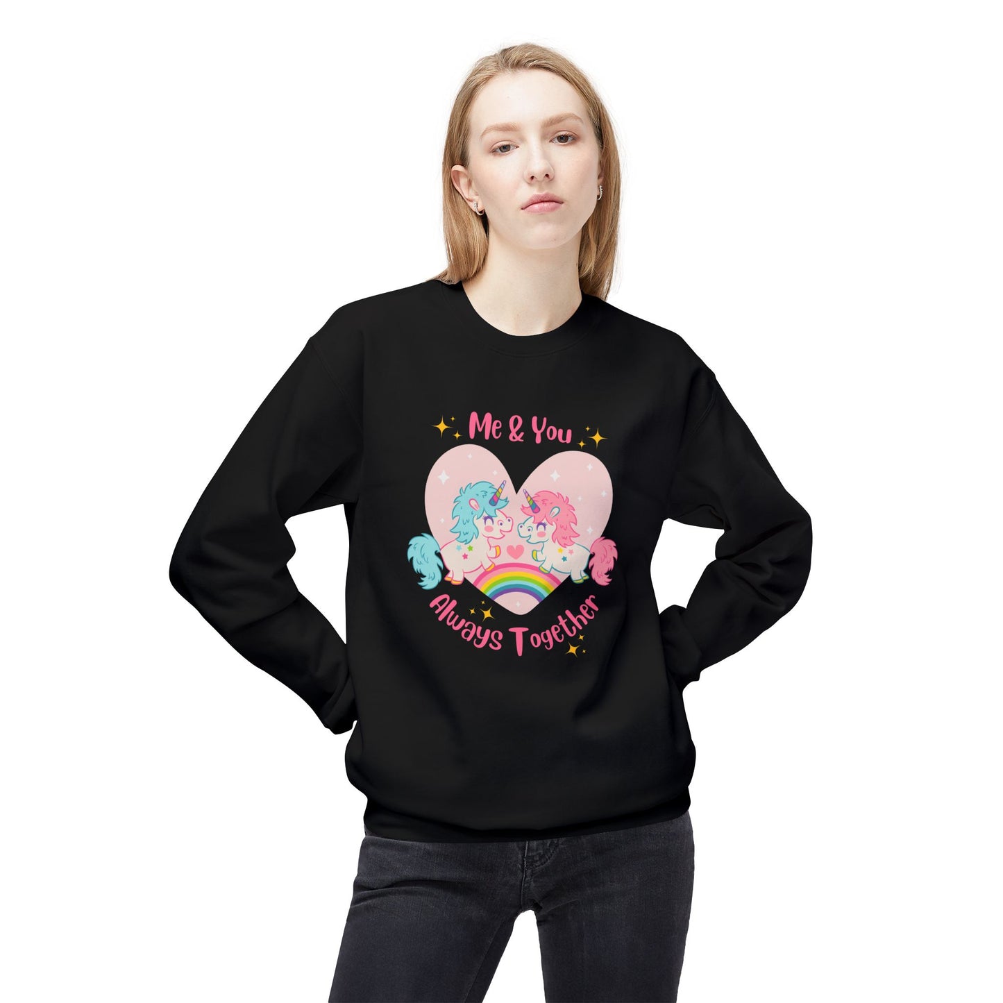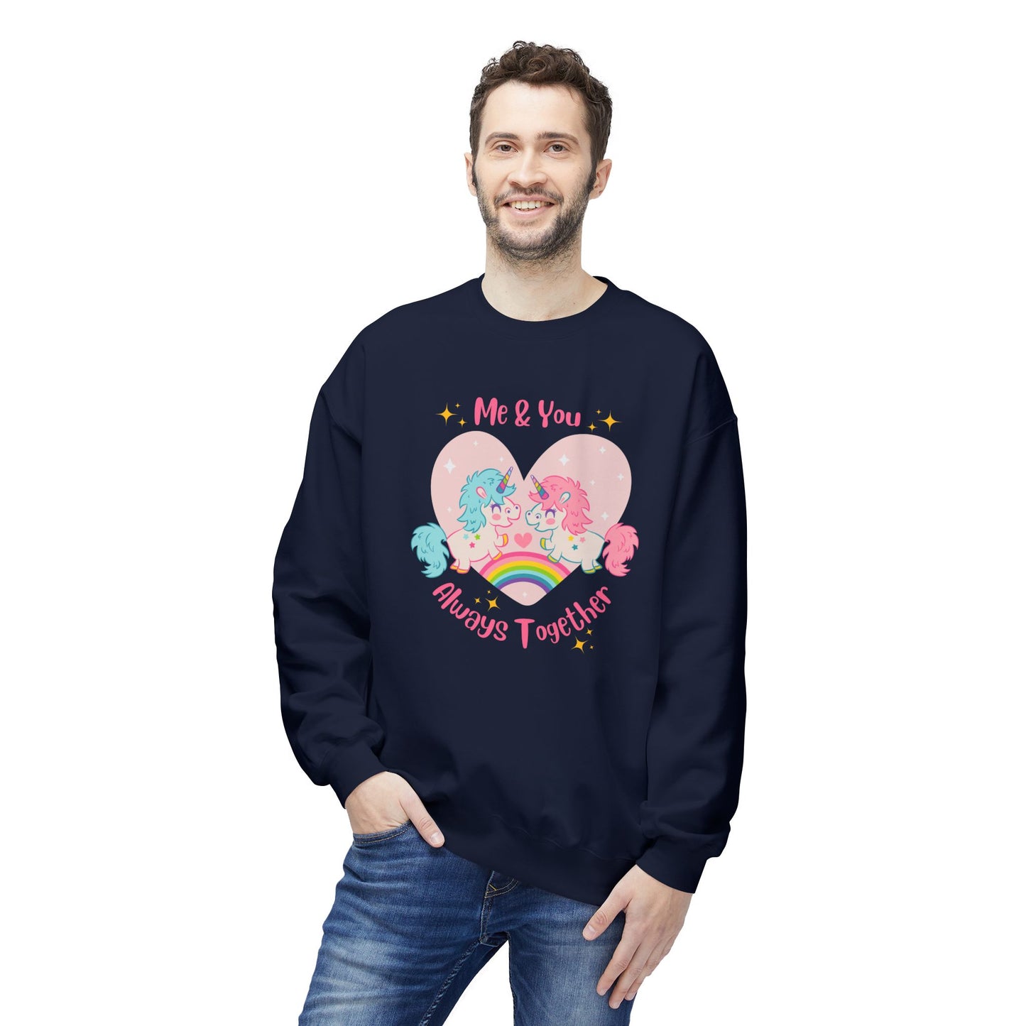 Celebrate the magic of togetherness with our Unicorns, You & Me, Always Together Sweatshirt. This dreamy crewneck features a whimsical unicorn design and a heartfelt message, perfect for spreading love and positivity wherever you go.