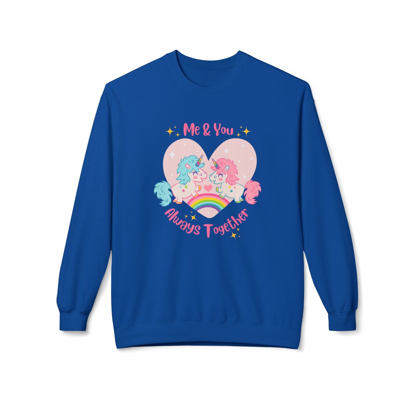 Unicorns, You & Me, Always Together - Unisex Midweight Softstyle Fleece Crewneck Sweatshirt - 11353