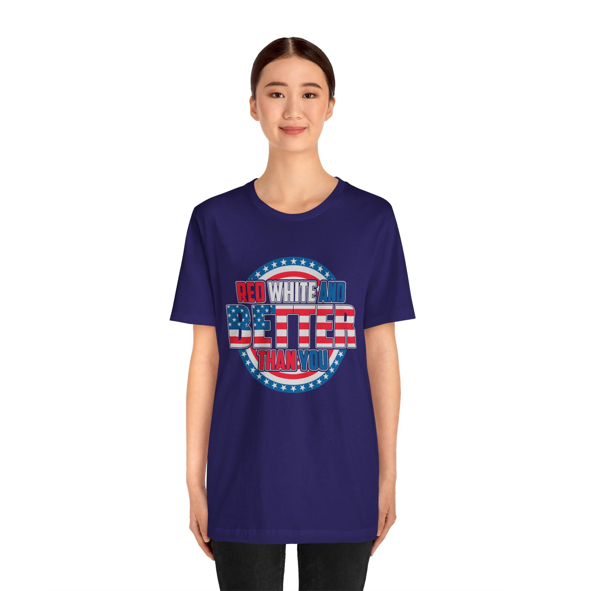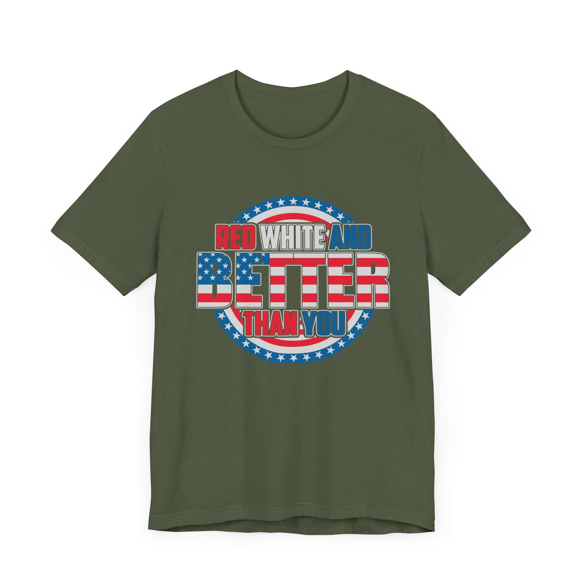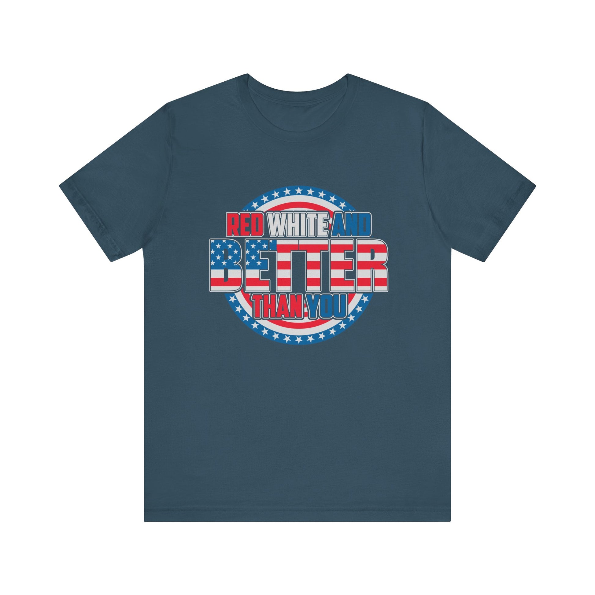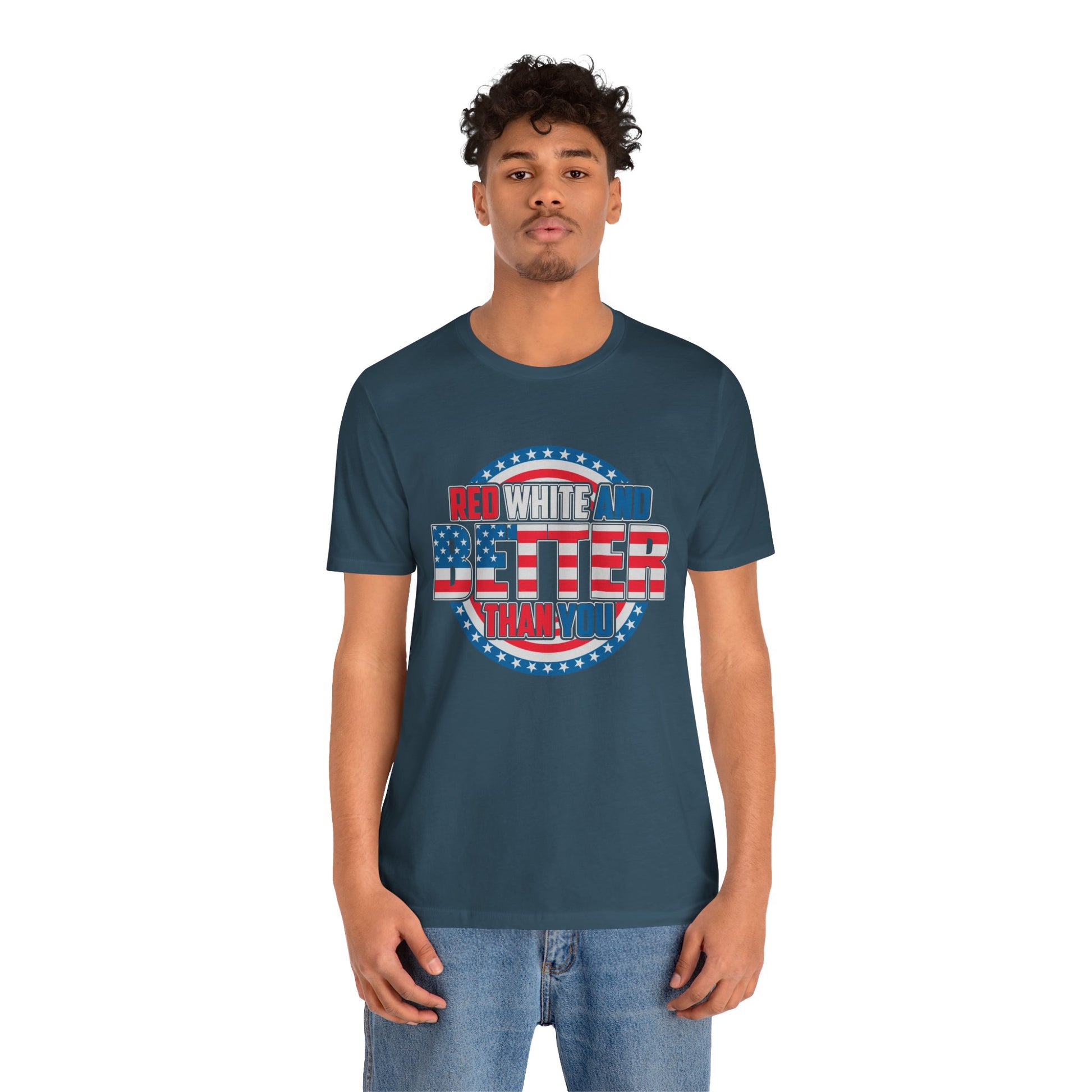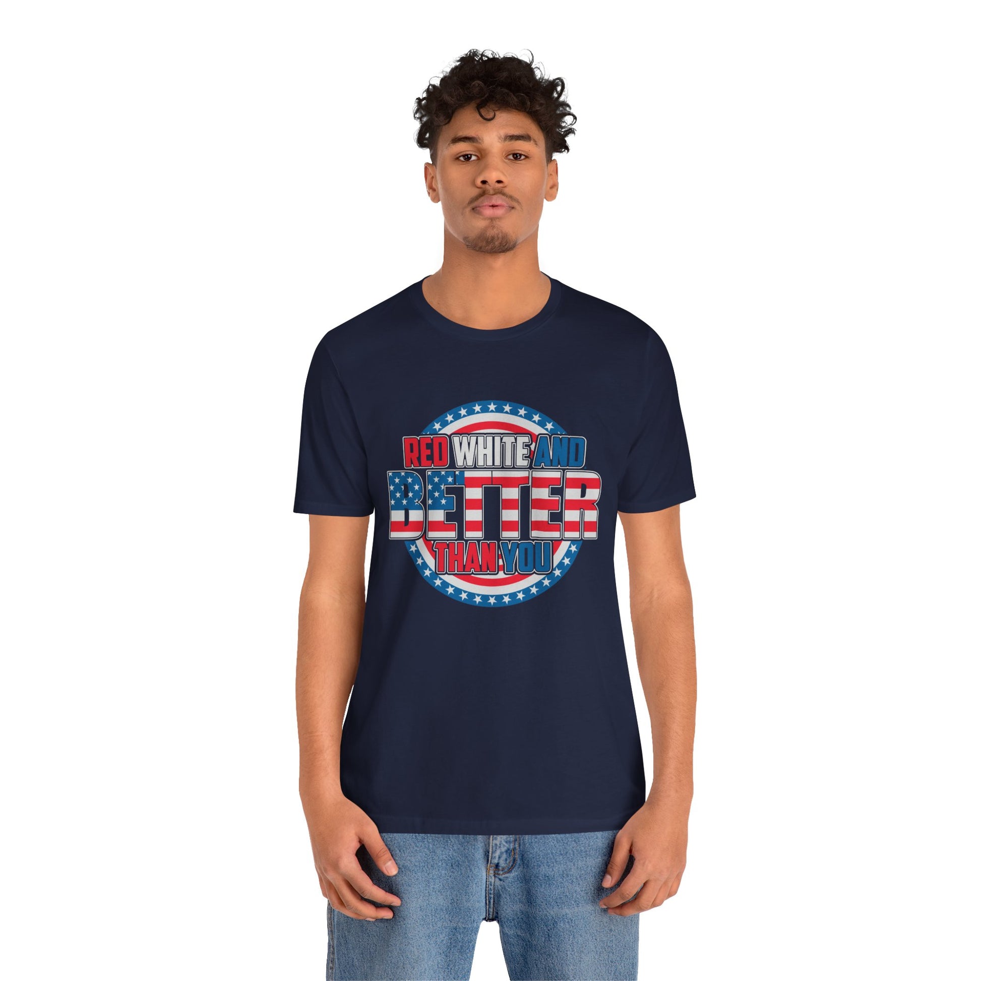 Unisex Jersey Short Sleeve Tee with Patriotic Design - 'Red White and Better Than You' Shirt, Independence Day T-Shirt, 4th of July - 13638
