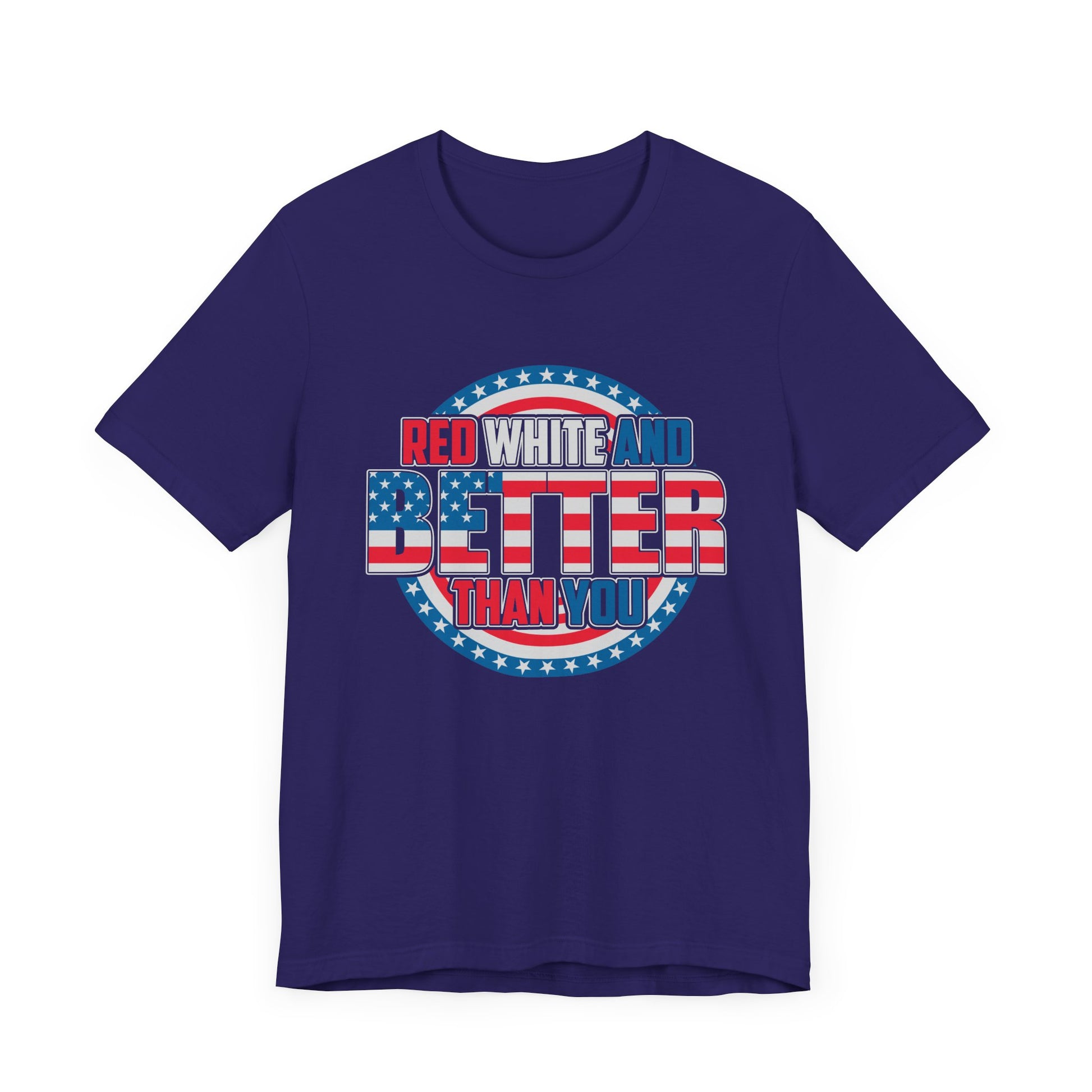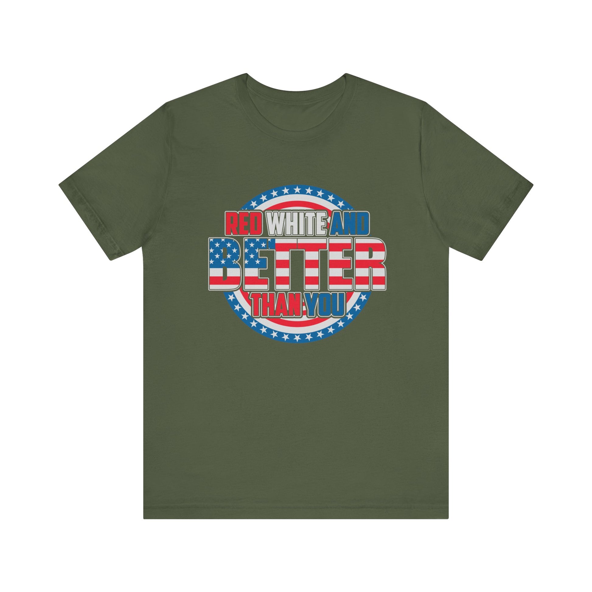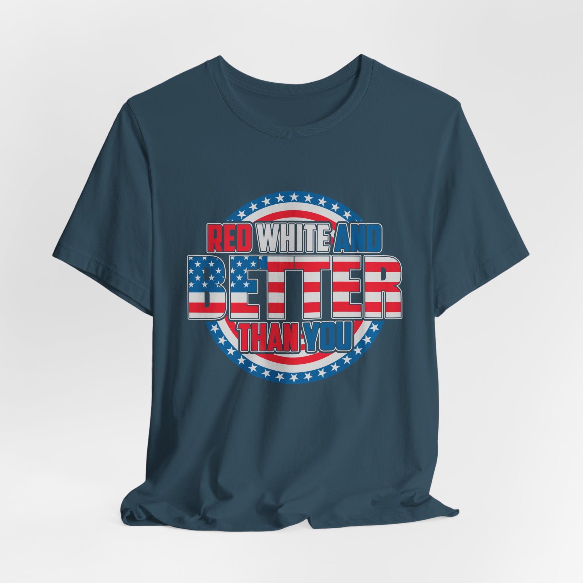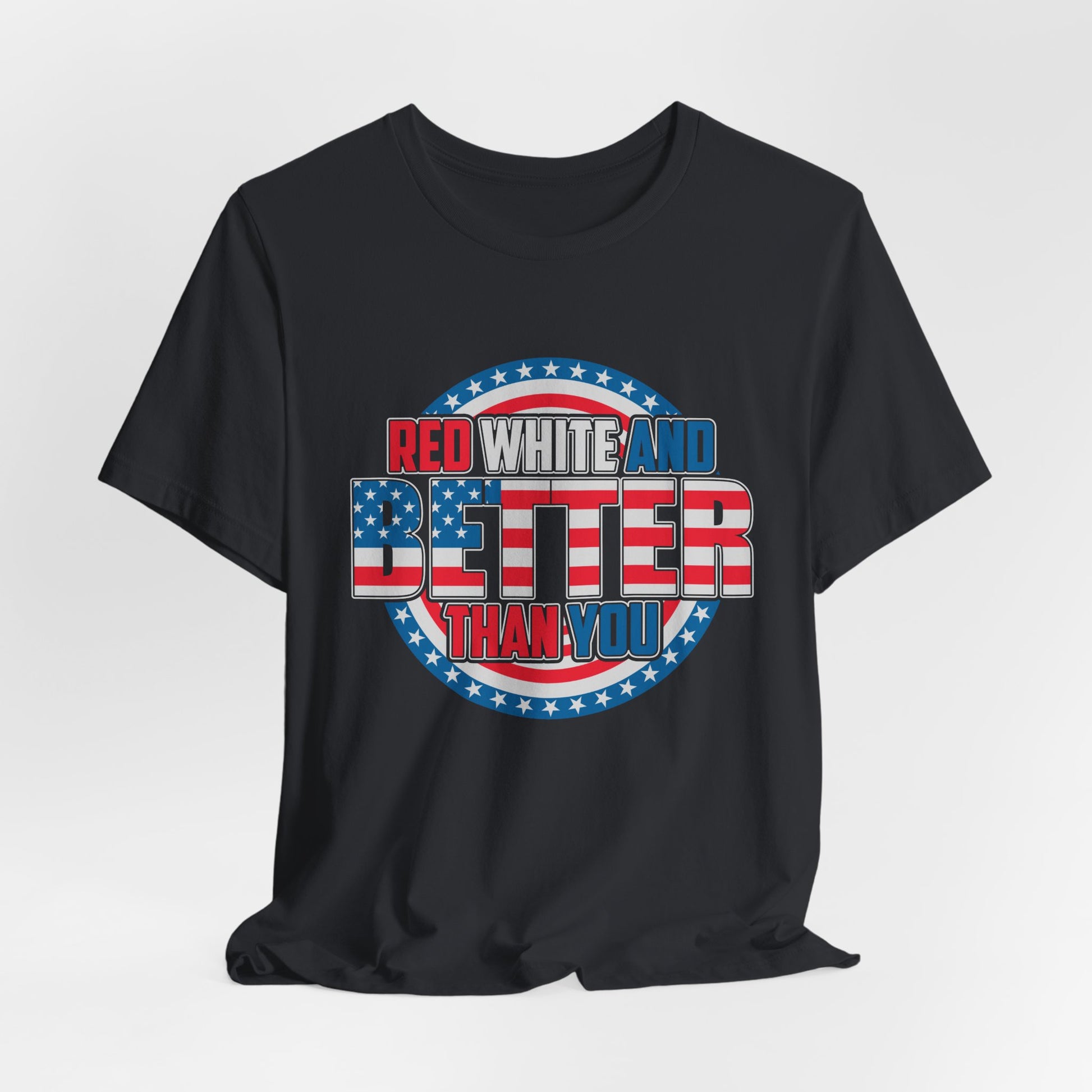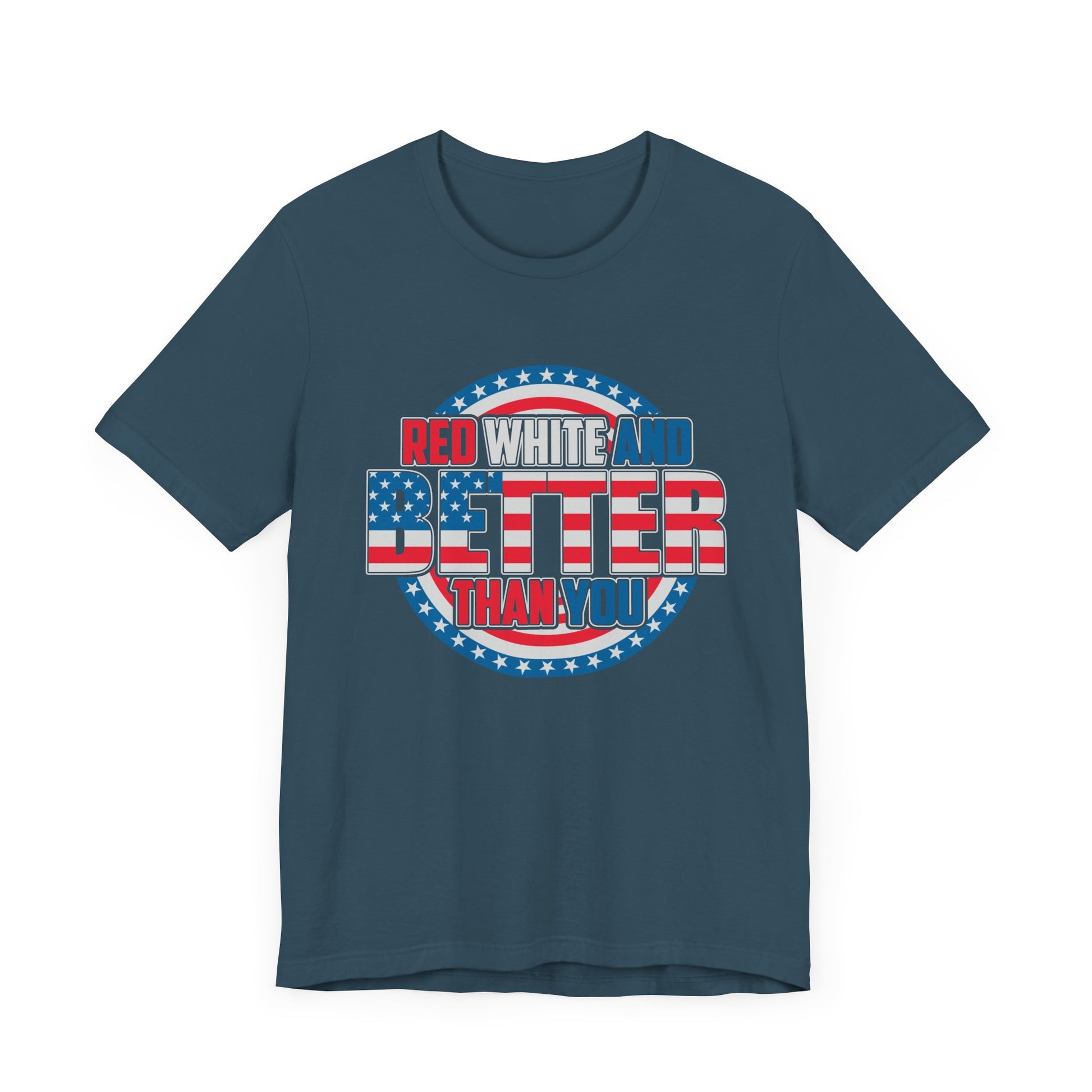 Unisex Jersey Short Sleeve Tee with Patriotic Design - 'Red White and Better Than You' Shirt, Independence Day T-Shirt, 4th of July - 13638