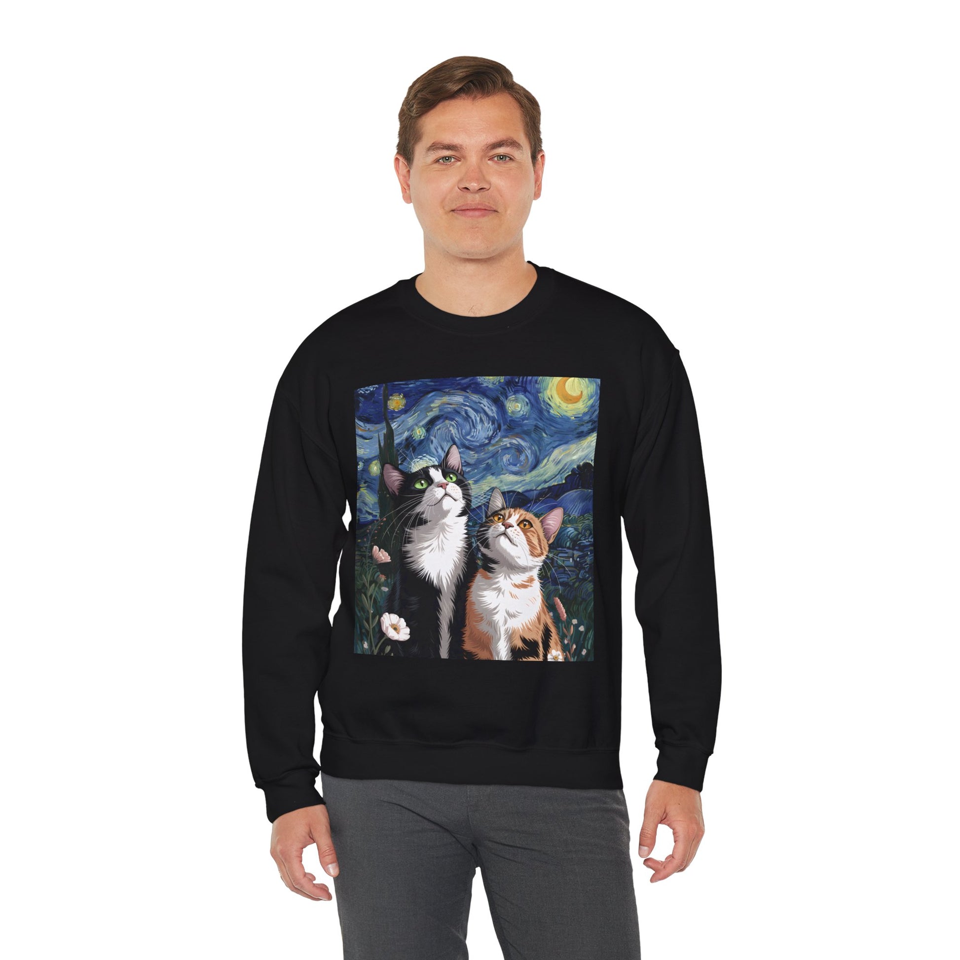 Van Gogh Style Cat Art Sweatshirt - Cozy Unisex Crewneck, Valentines Day Gift for Cat Lovers - 14768