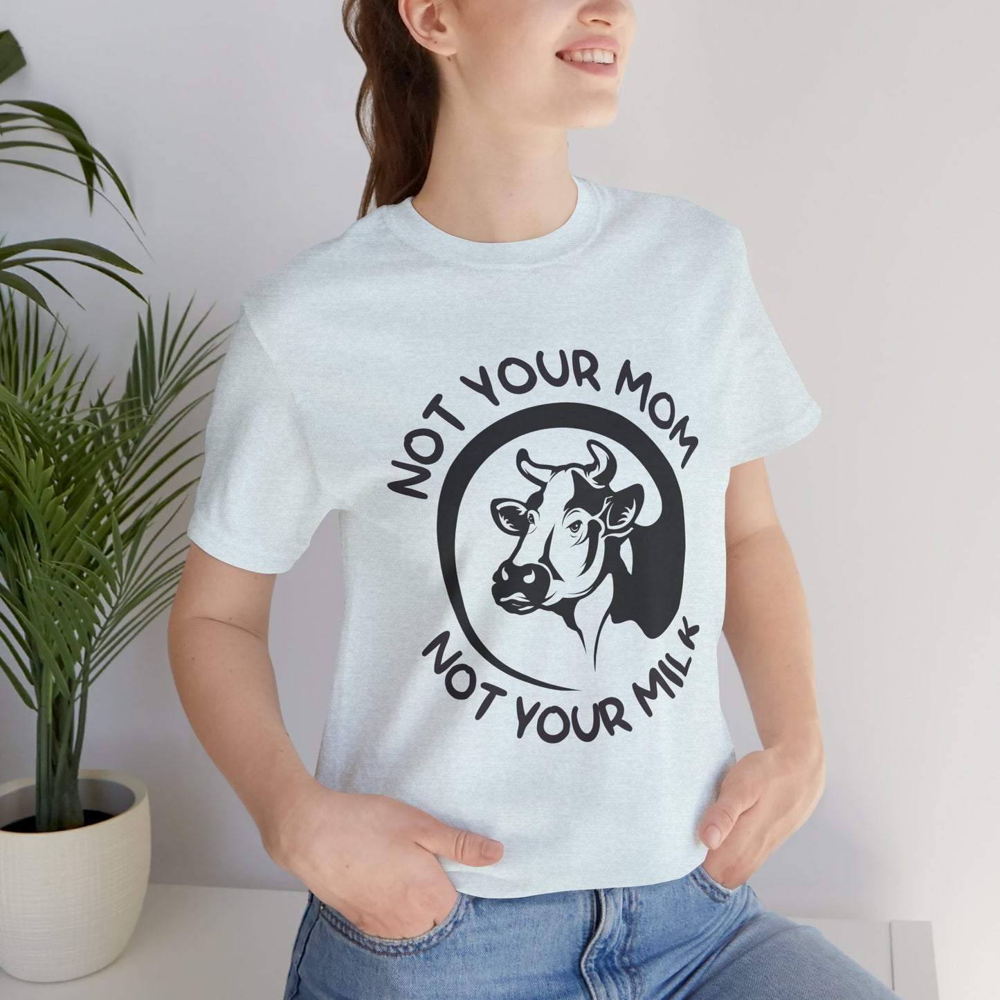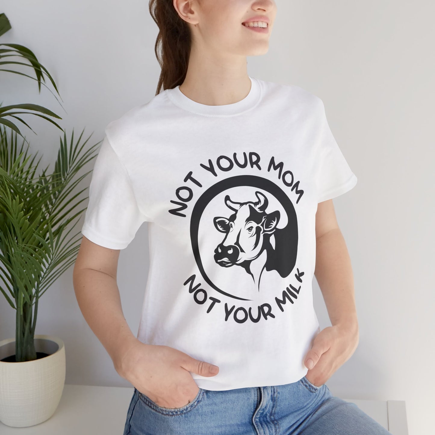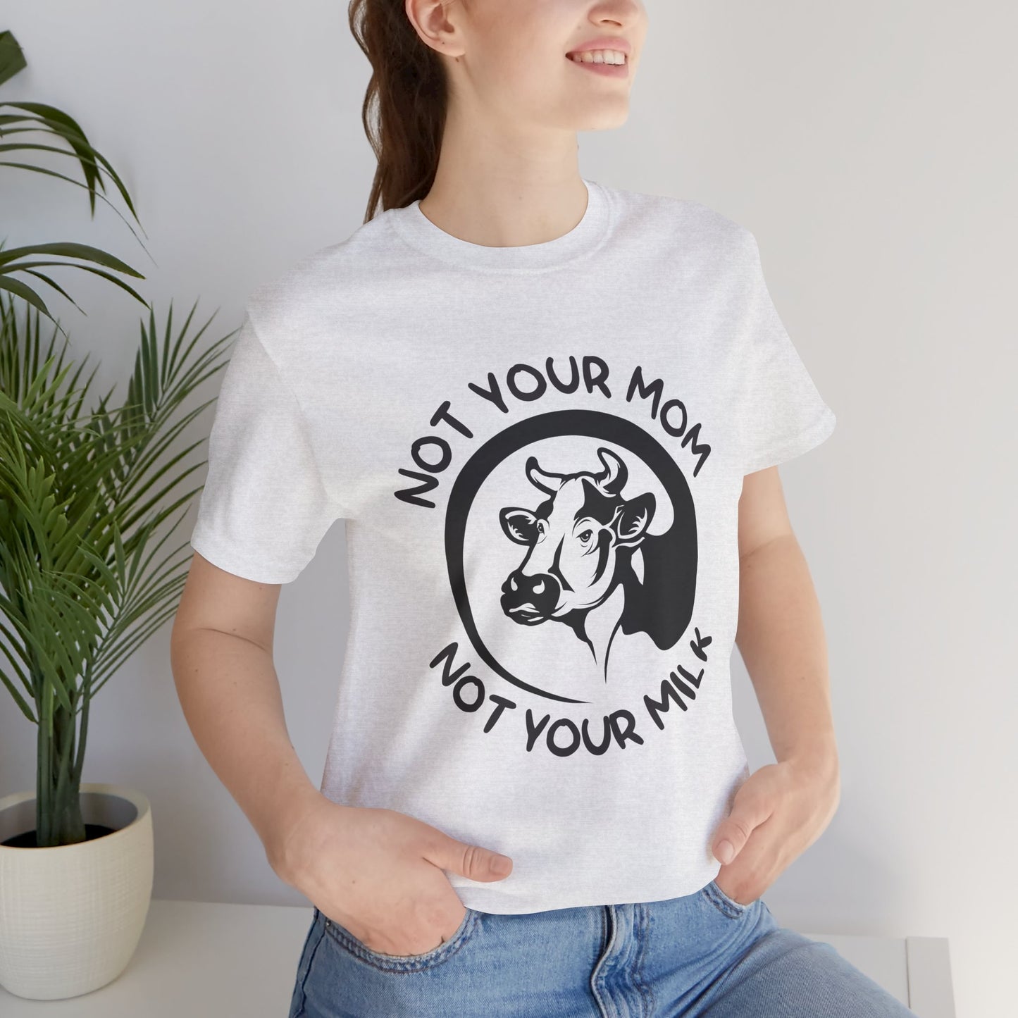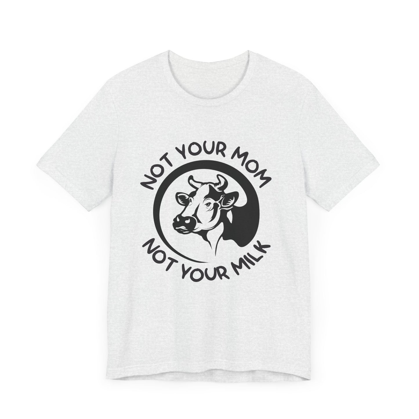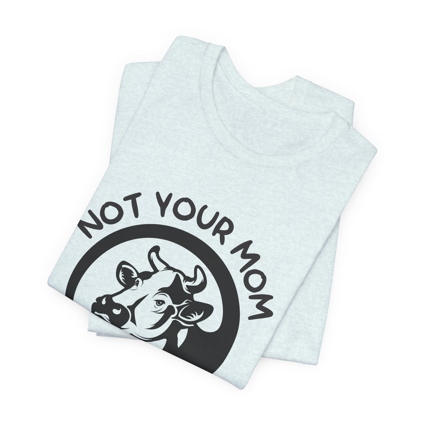 Make a powerful statement with our "Not Your Mom, Not Your Milk" Unisex Jersey Short Sleeve Tee. Featuring an impactful design with a cow image, this tee emphasizes the message of ethical veganism and compassion for all animals.