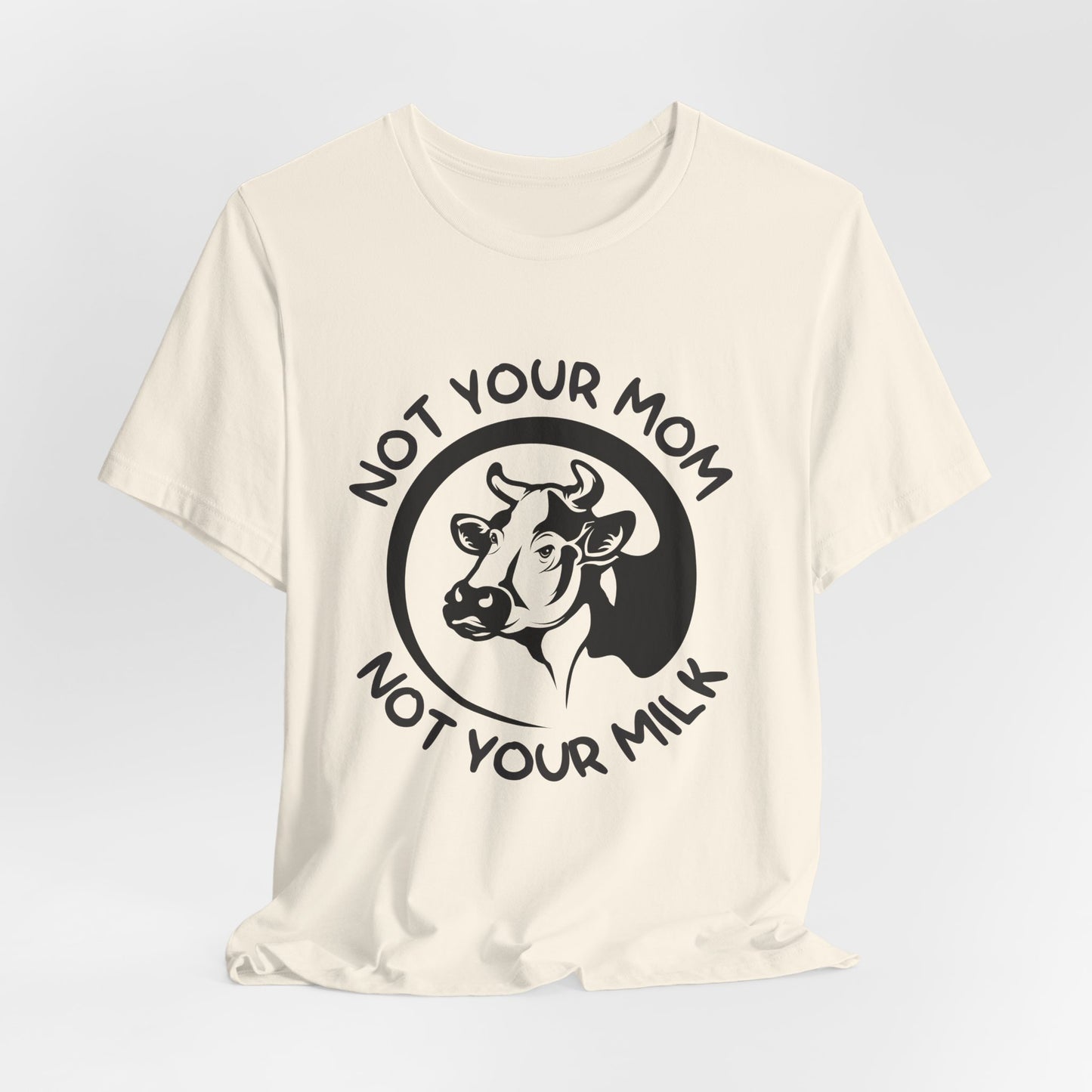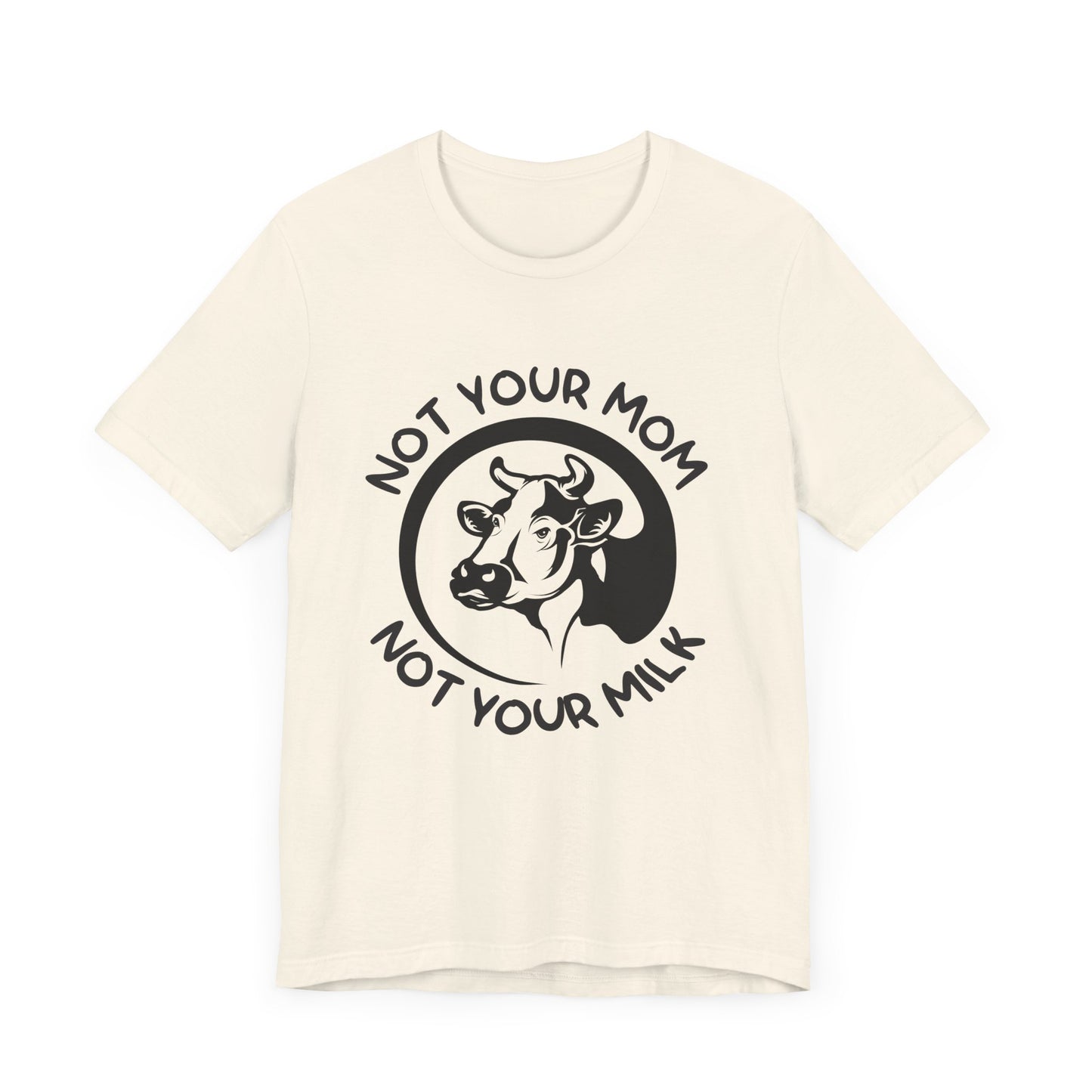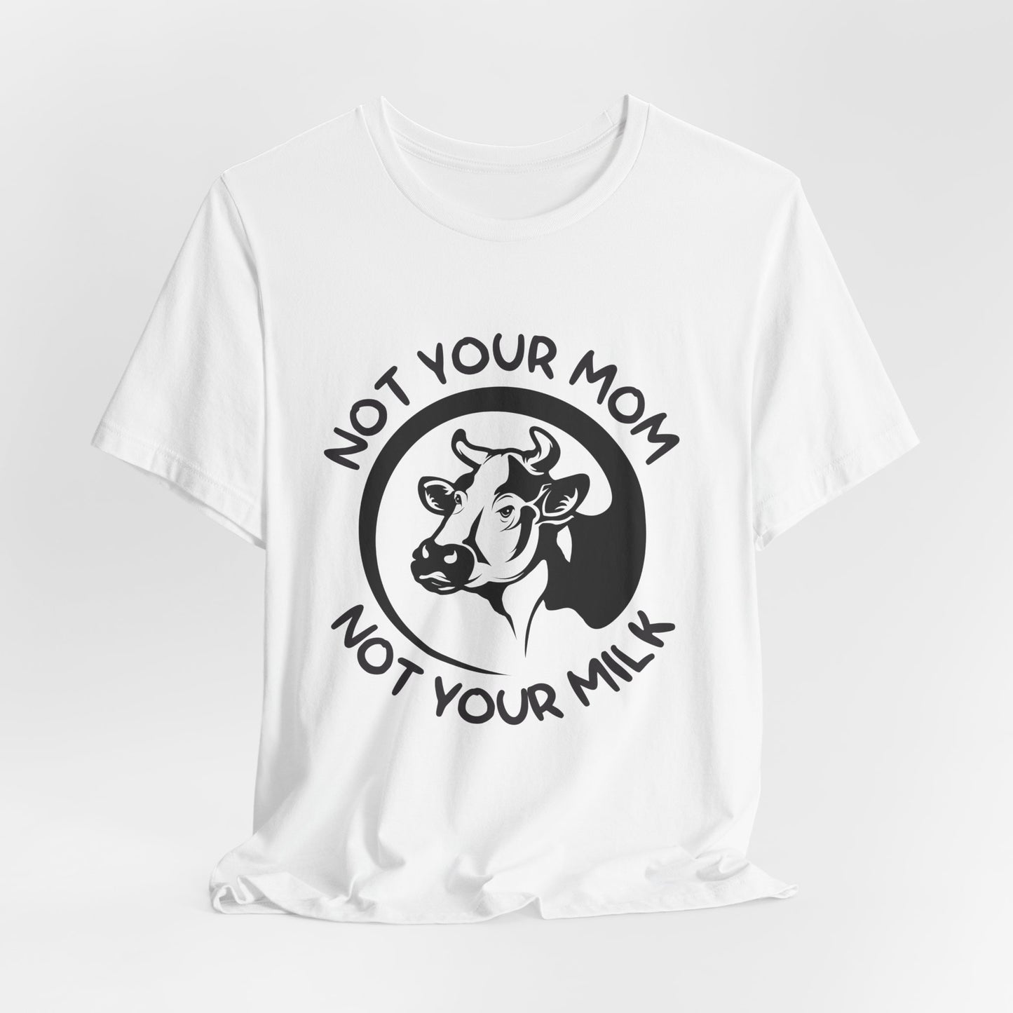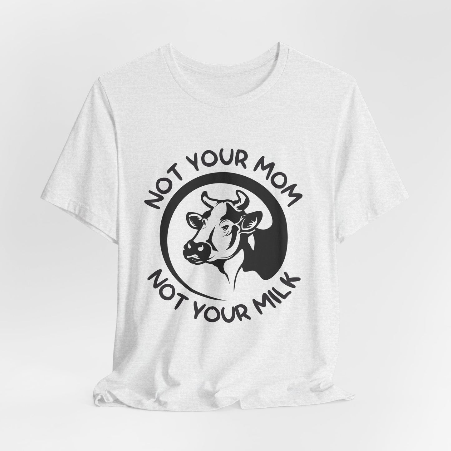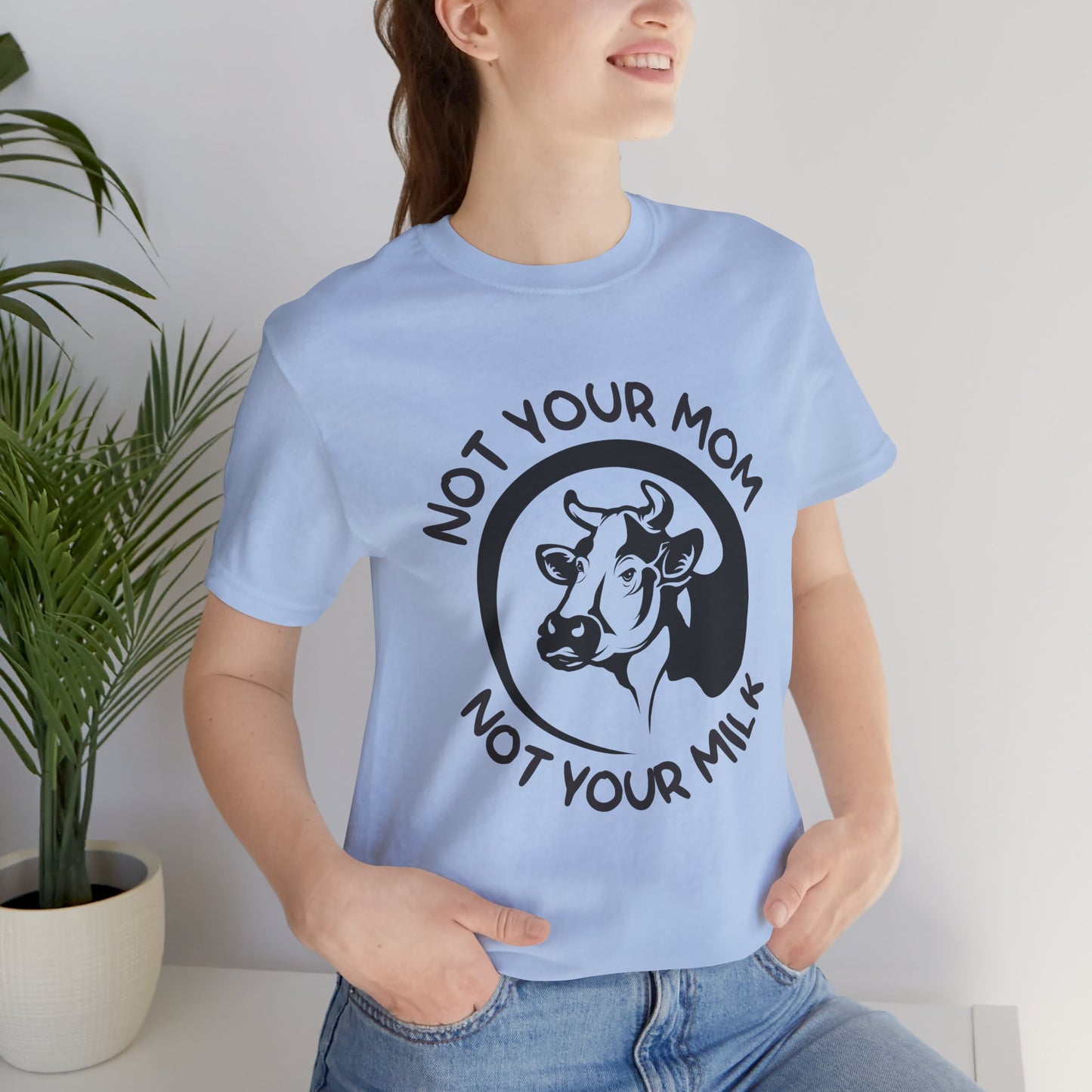 Make a powerful statement with our "Not Your Mom, Not Your Milk" Unisex Jersey Short Sleeve Tee. Featuring an impactful design with a cow image, this tee emphasizes the message of ethical veganism and compassion for all animals.