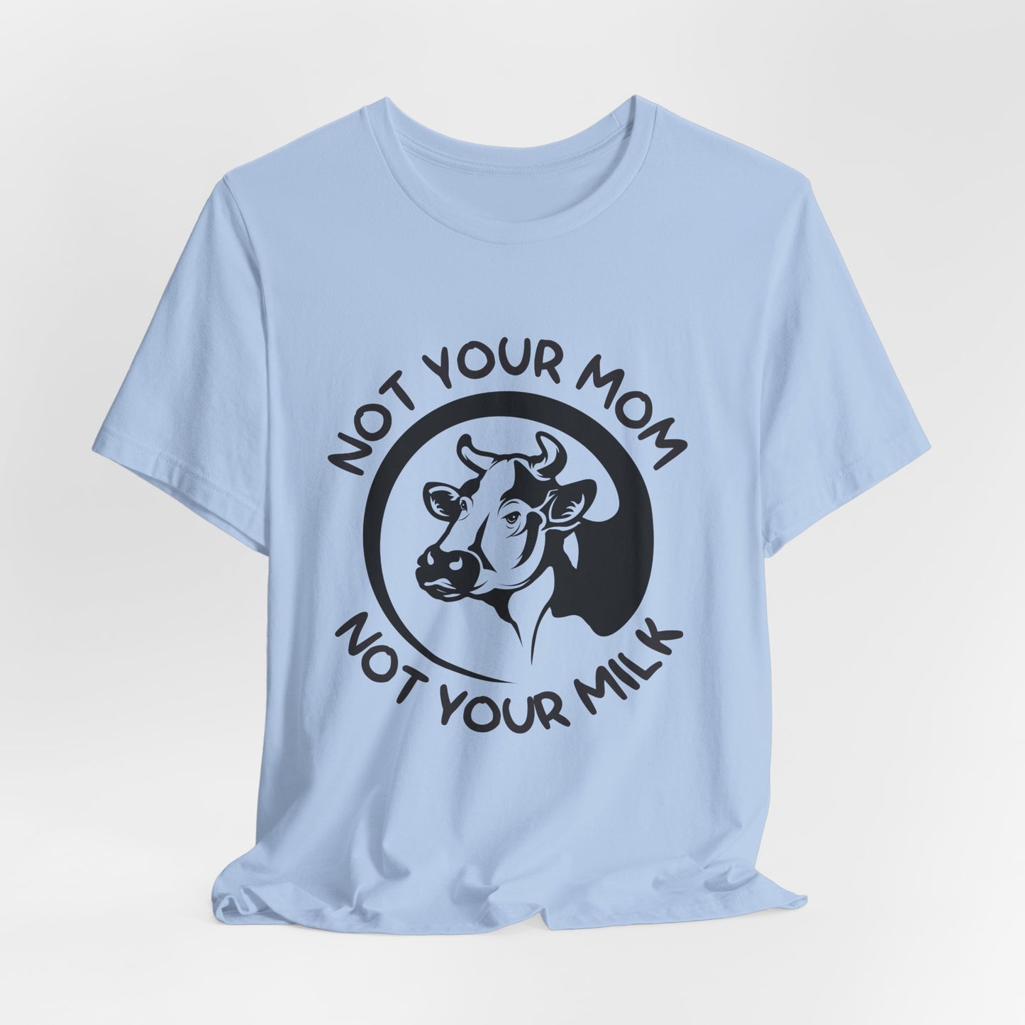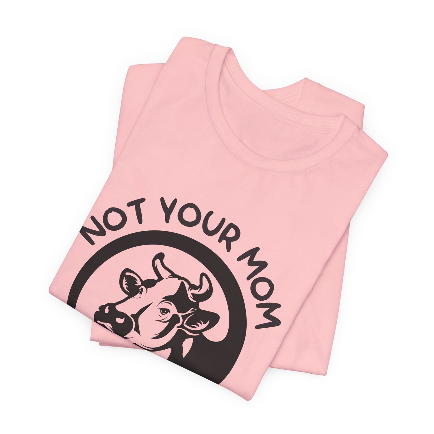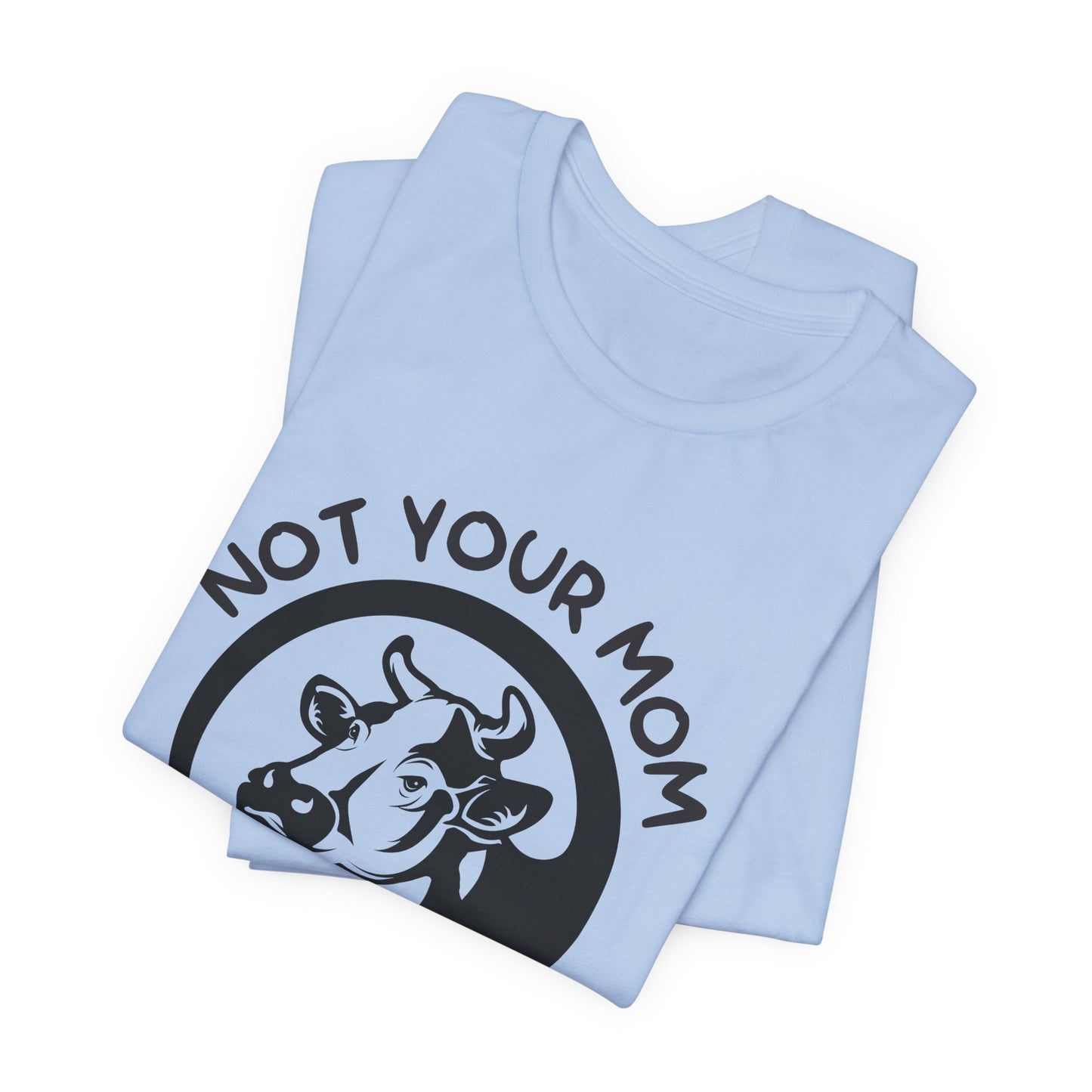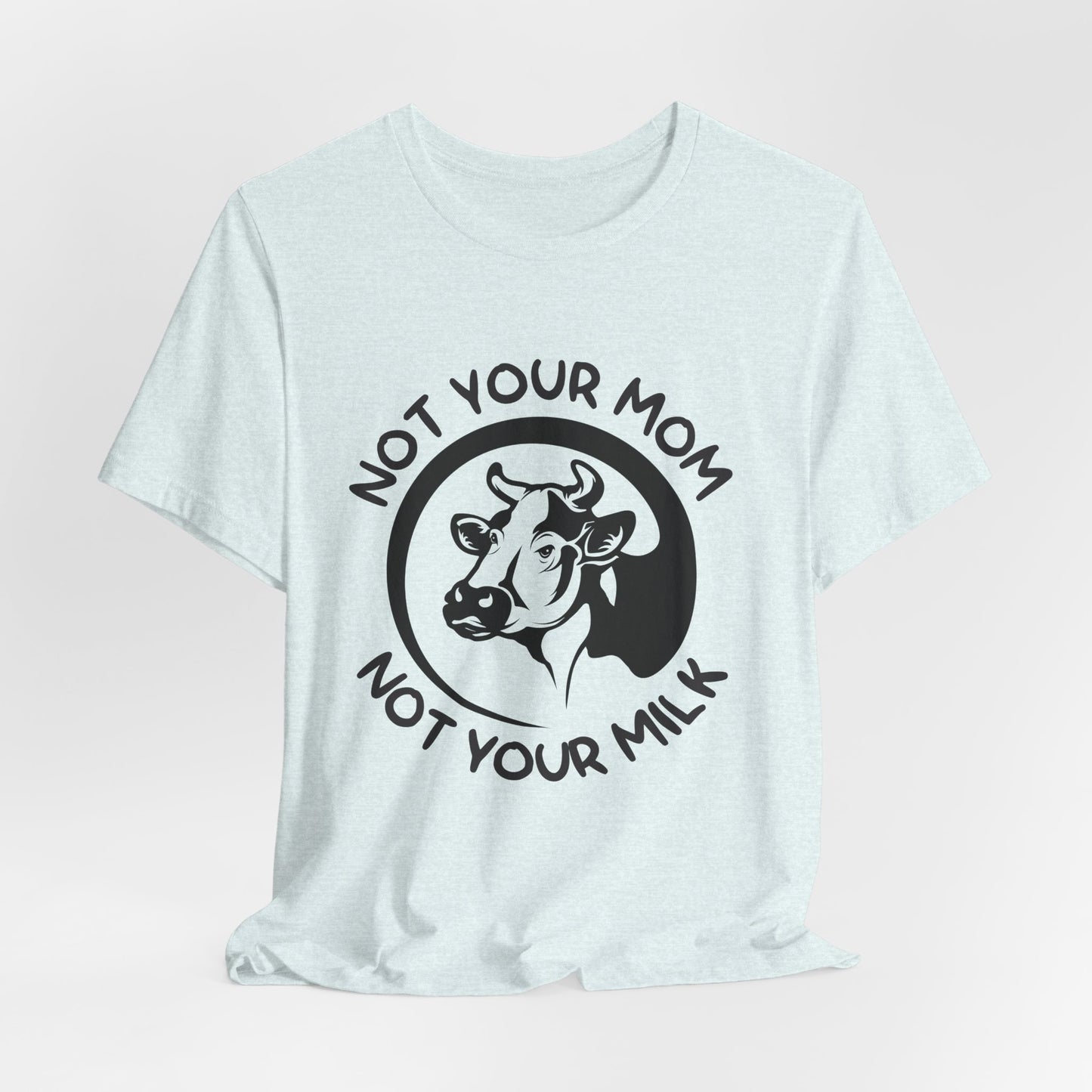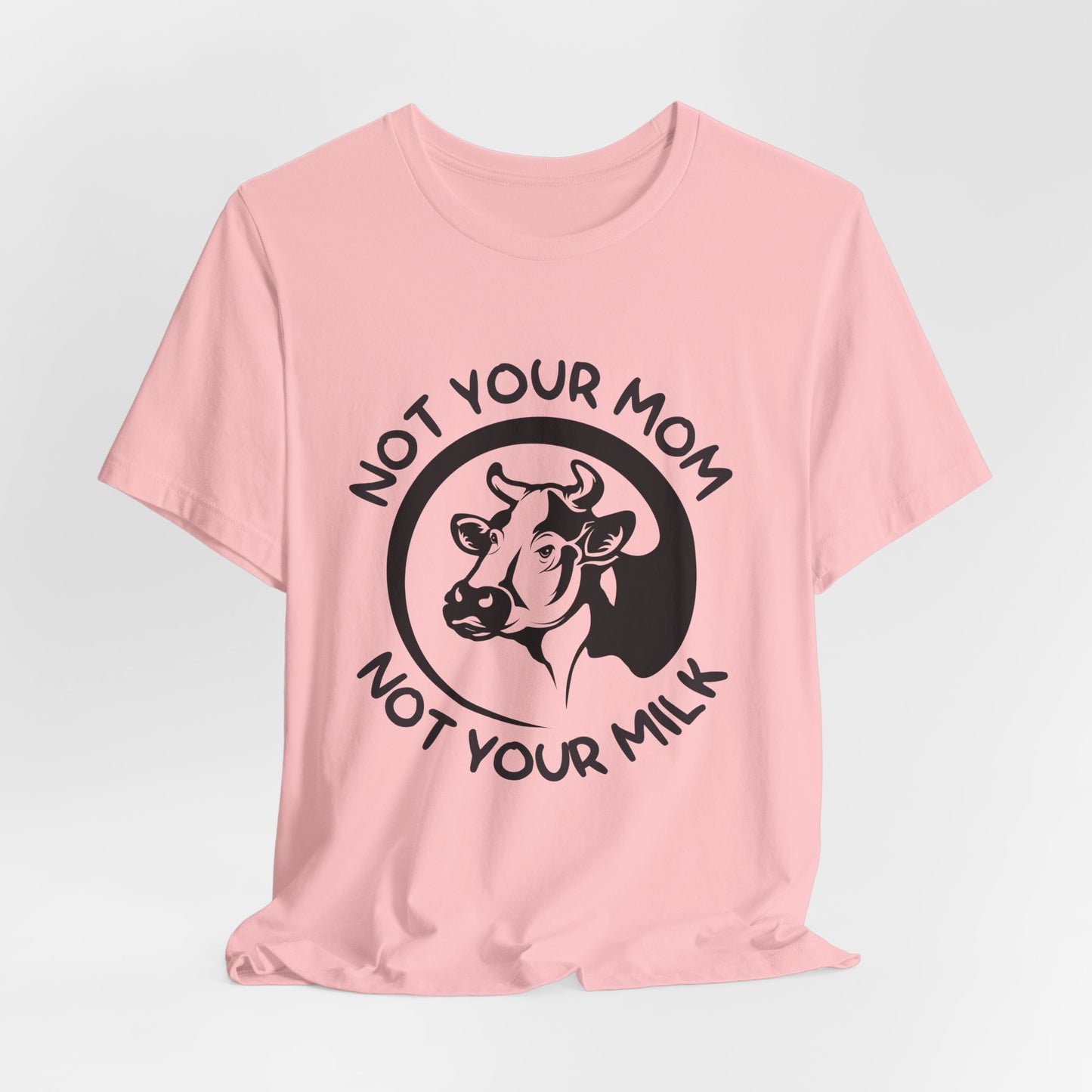 Make a powerful statement with our "Not Your Mom, Not Your Milk" Unisex Jersey Short Sleeve Tee. Featuring an impactful design with a cow image, this tee emphasizes the message of ethical veganism and compassion for all animals.