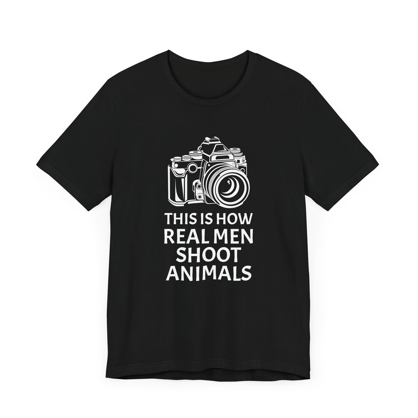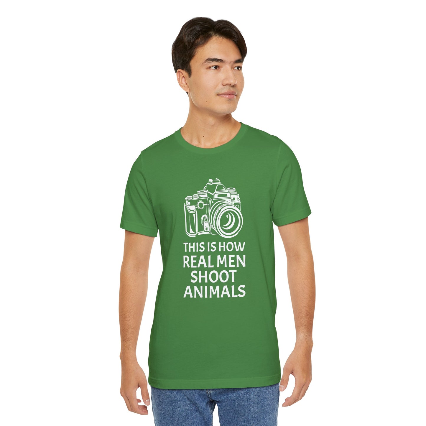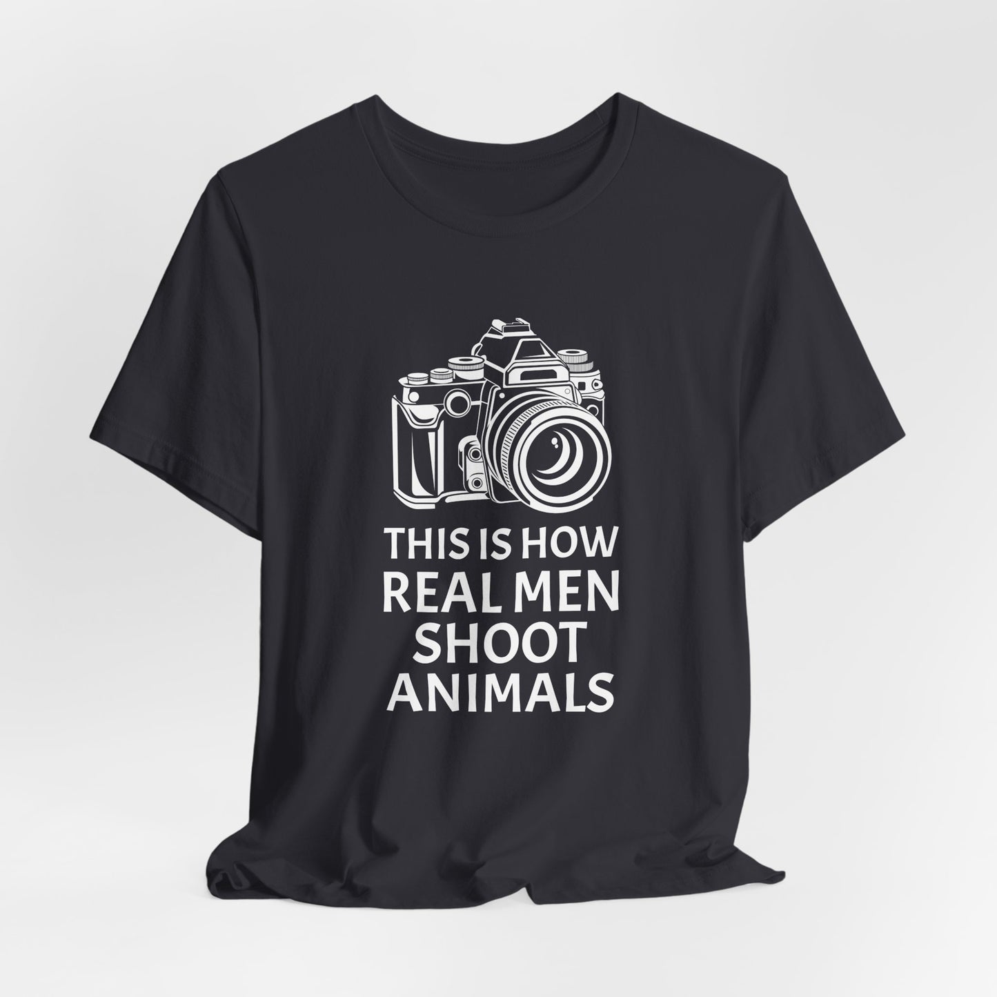 Champion a message of compassion and respect with our "This Is How Real Men Shoot Animals" Unisex Jersey Short Sleeve Tee. Perfect for those who believe in protecting wildlife and standing against animal cruelty, this tee offers a powerful statement wrapped in a stylish design. Made from high-quality, soft cotton, it combines comfort with a cause.