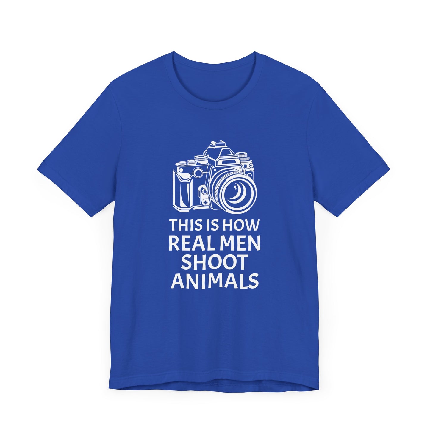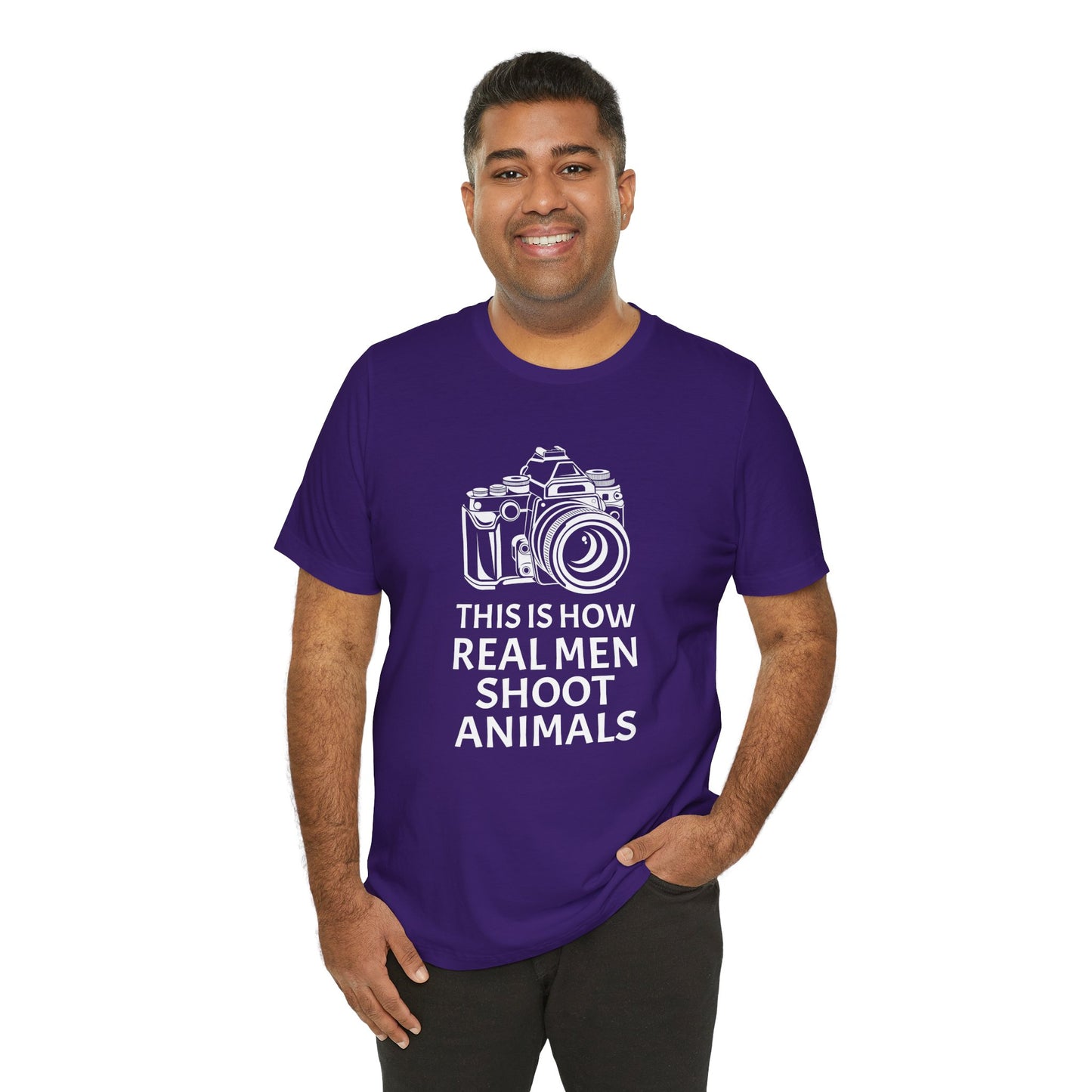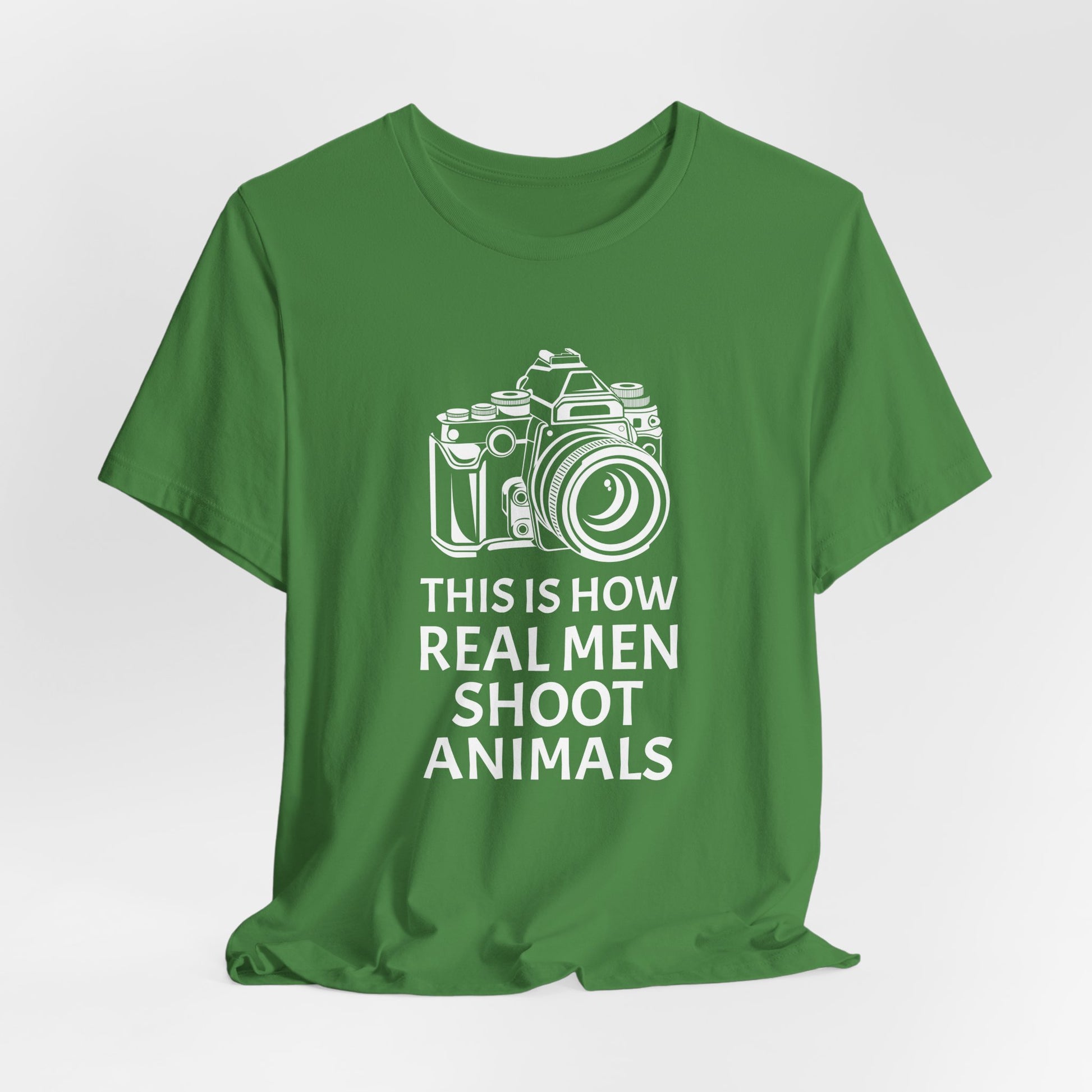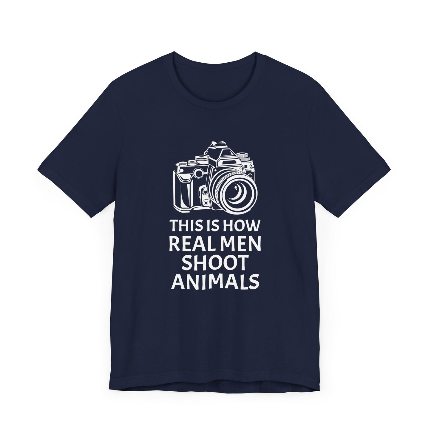 Champion a message of compassion and respect with our "This Is How Real Men Shoot Animals" Unisex Jersey Short Sleeve Tee. Perfect for those who believe in protecting wildlife and standing against animal cruelty, this tee offers a powerful statement wrapped in a stylish design. Made from high-quality, soft cotton, it combines comfort with a cause.