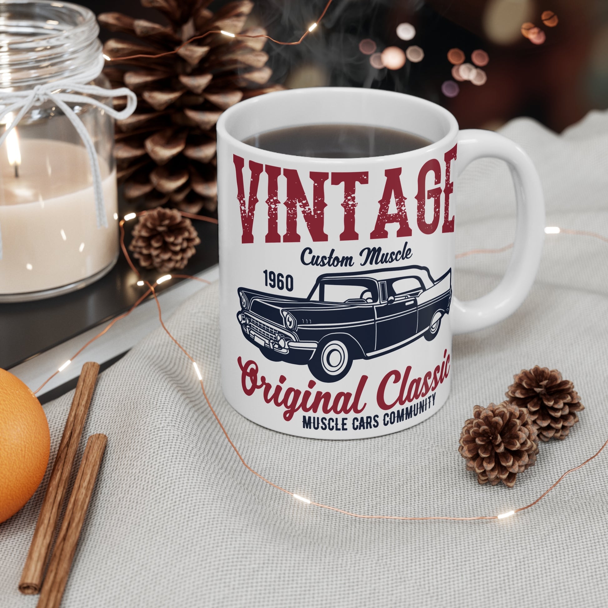 Fuel your mornings with power and style with the "Vintage Custom Muscle, Original Classic" mug. Perfect for fans of timeless muscle cars and vintage automotive culture, this 11oz ceramic mug features a bold design that pays tribute to the golden era of custom-built machines. Whether you're an enthusiast of classic cars or simply appreciate the artistry behind these legendary vehicles, this mug is the ideal companion for your coffee or tea.