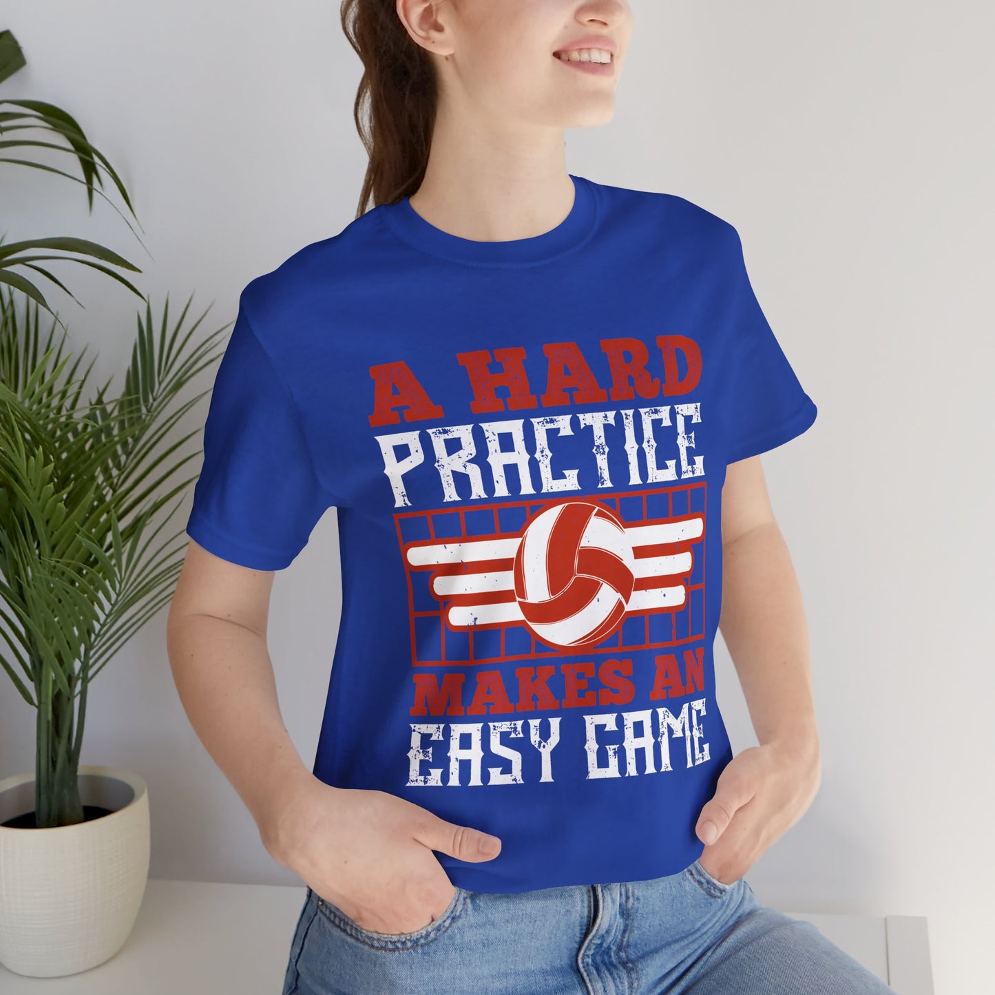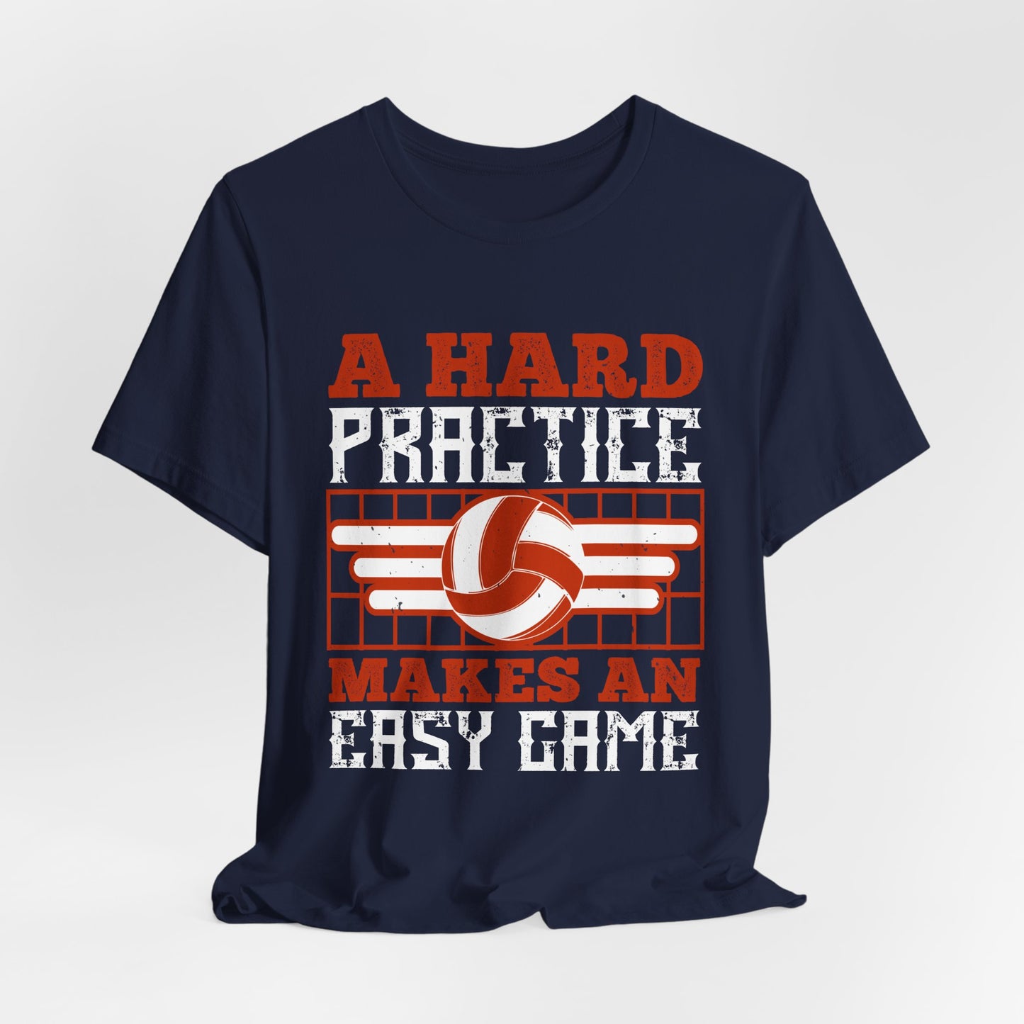 Show your commitment to volleyball with the "Volleyball: A Hard Practice Makes An Easy Game" Unisex Jersey Short Sleeve Tee. Ideal for players and fans alike, this tee emphasizes the importance of hard work and dedication in every practice, ensuring you're ready to dominate on game day.