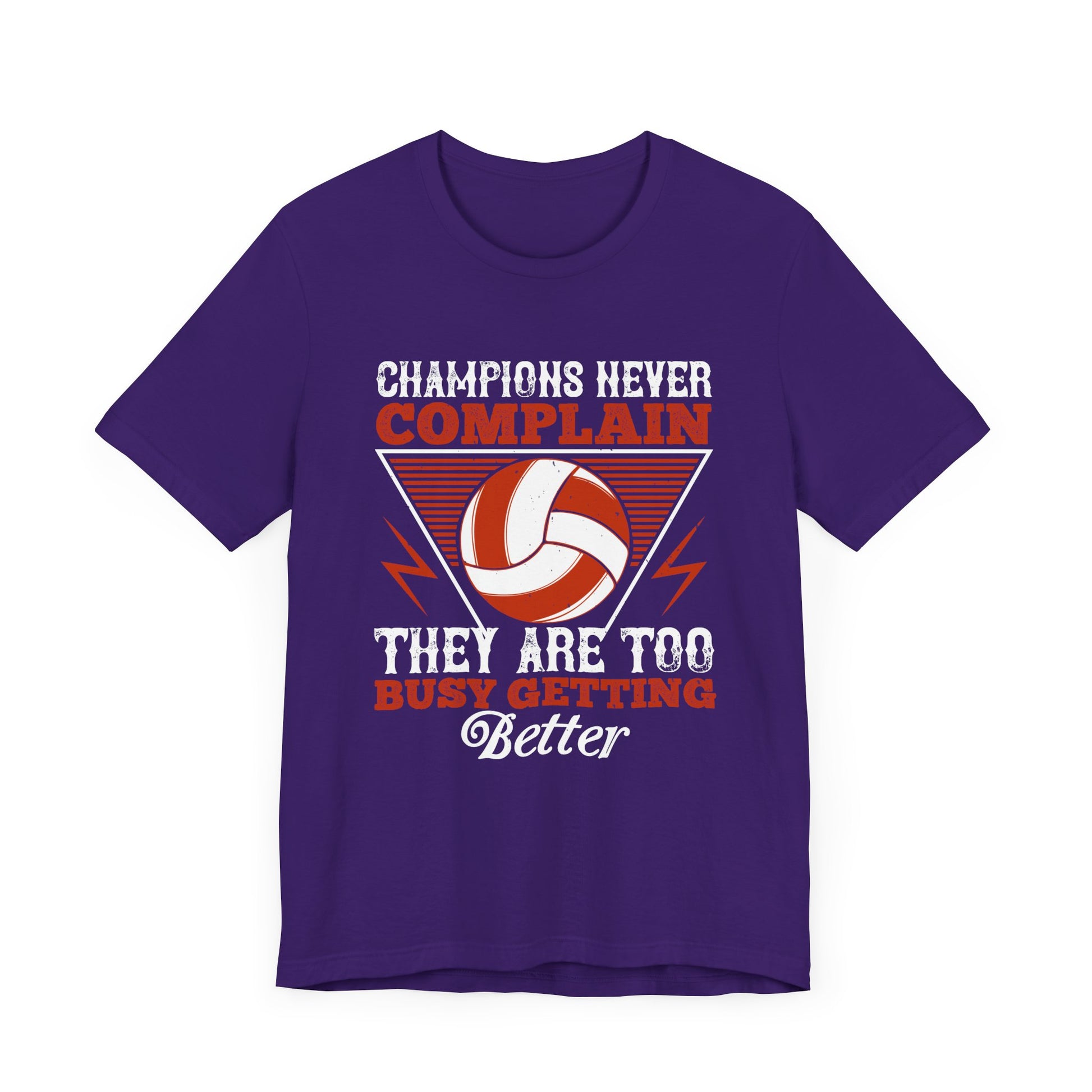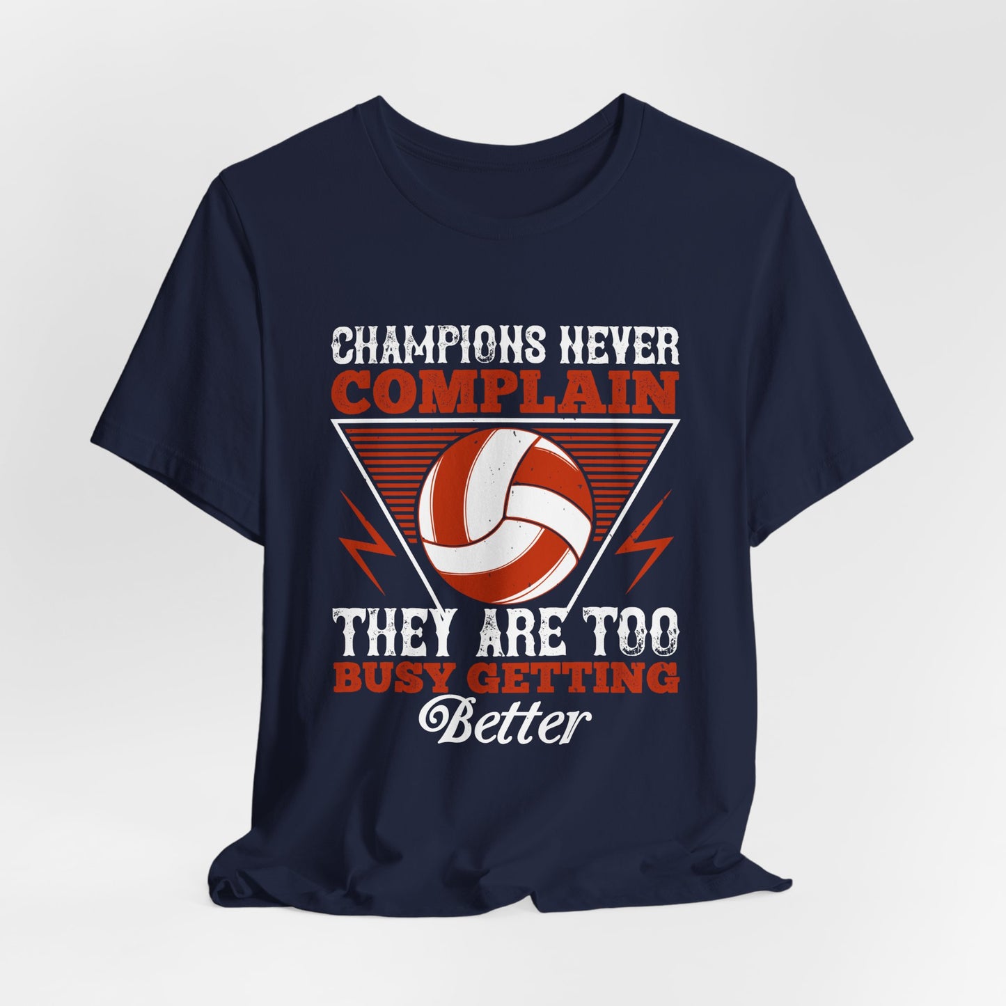 Wear the "Volleyball: Champions Never Complain, They Are Too Busy Getting Better" tee to remind yourself and others that the path to greatness is paved with hard work, not complaints. Get yours today and keep striving to be the best on and off the court!