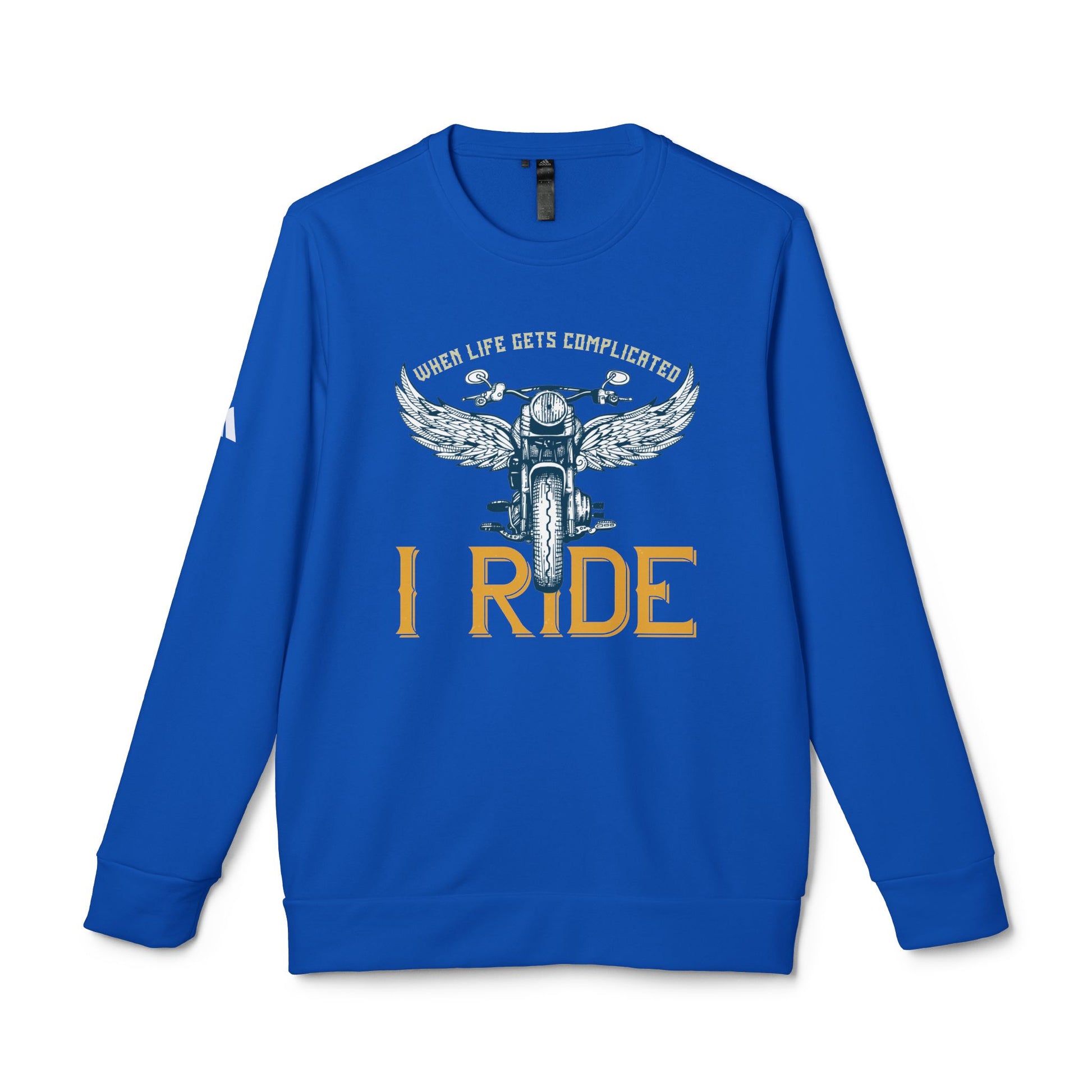 Embrace the freedom of the open road with our "When Life Gets Complicated, I Ride" - adidas Unisex Fleece Crewneck Sweatshirt! This sweatshirt is perfect for those who find solace and clarity in riding, making it an ideal companion for chilly days and adventures ahead.