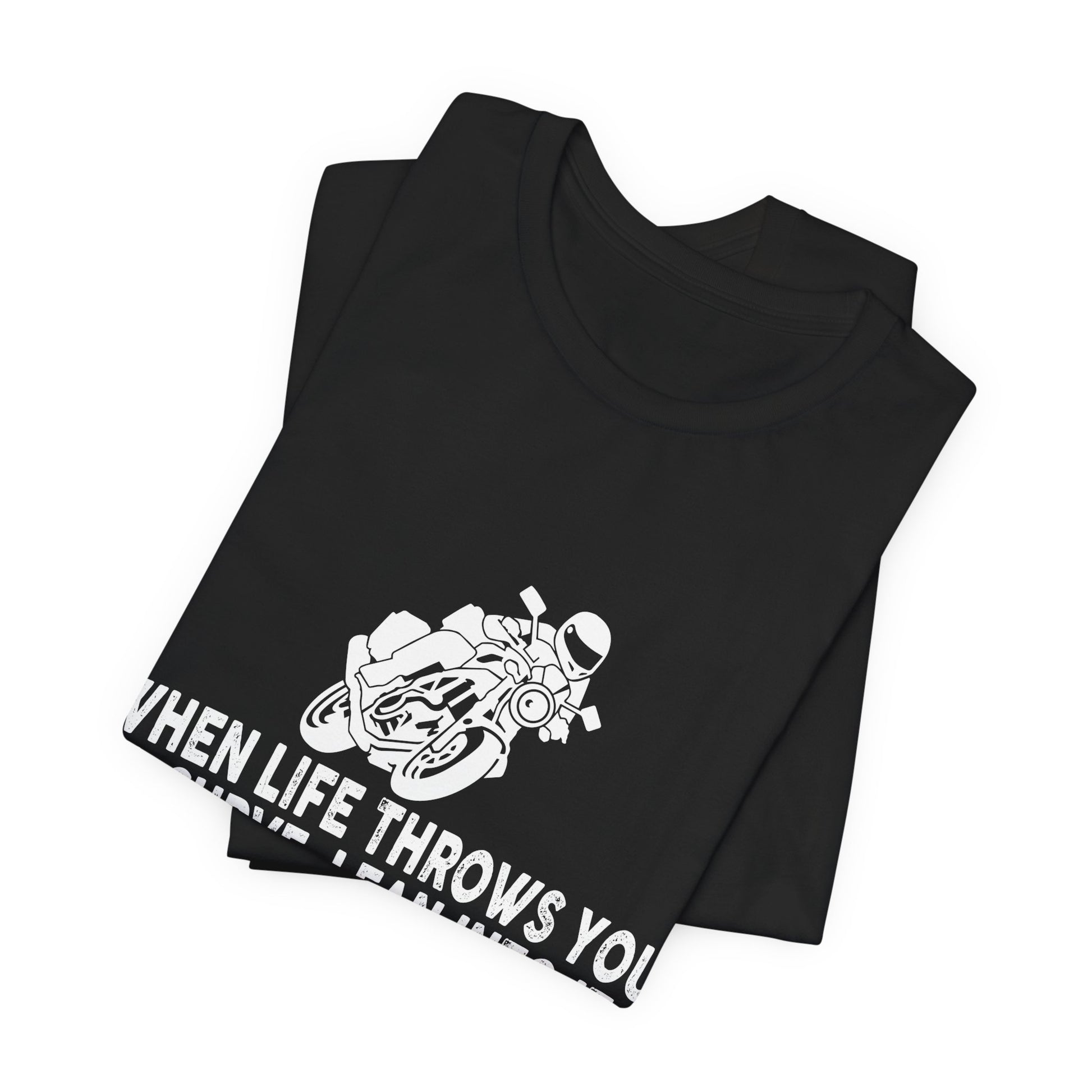 Gear up for life’s adventures with our Motorbikes: When Life Throws You a Curve, Lean Into It - Unisex Jersey Short Sleeve Tee. Perfect for motorbike lovers and life enthusiasts alike, this tee serves as a reminder to embrace challenges and ride through them with style and confidence.