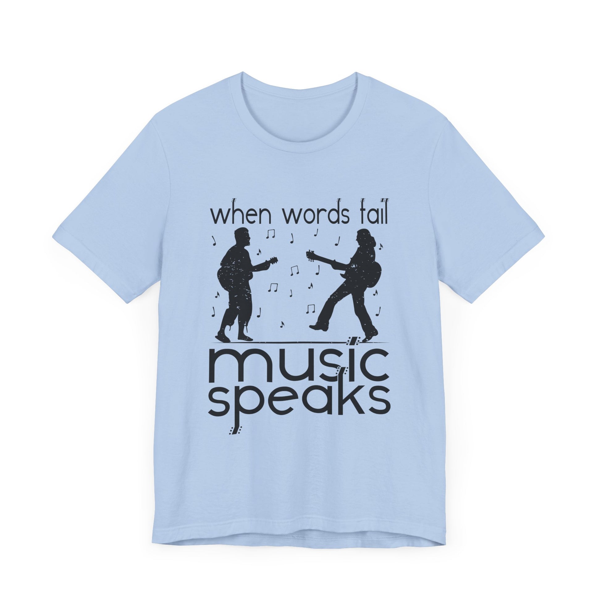 Express your profound connection to music with our "When Words Fail Music Speaks" Unisex Jersey Short Sleeve Tee! Perfect for anyone who finds solace and expression through music, this tee combines comfort and style with an inspiring message.