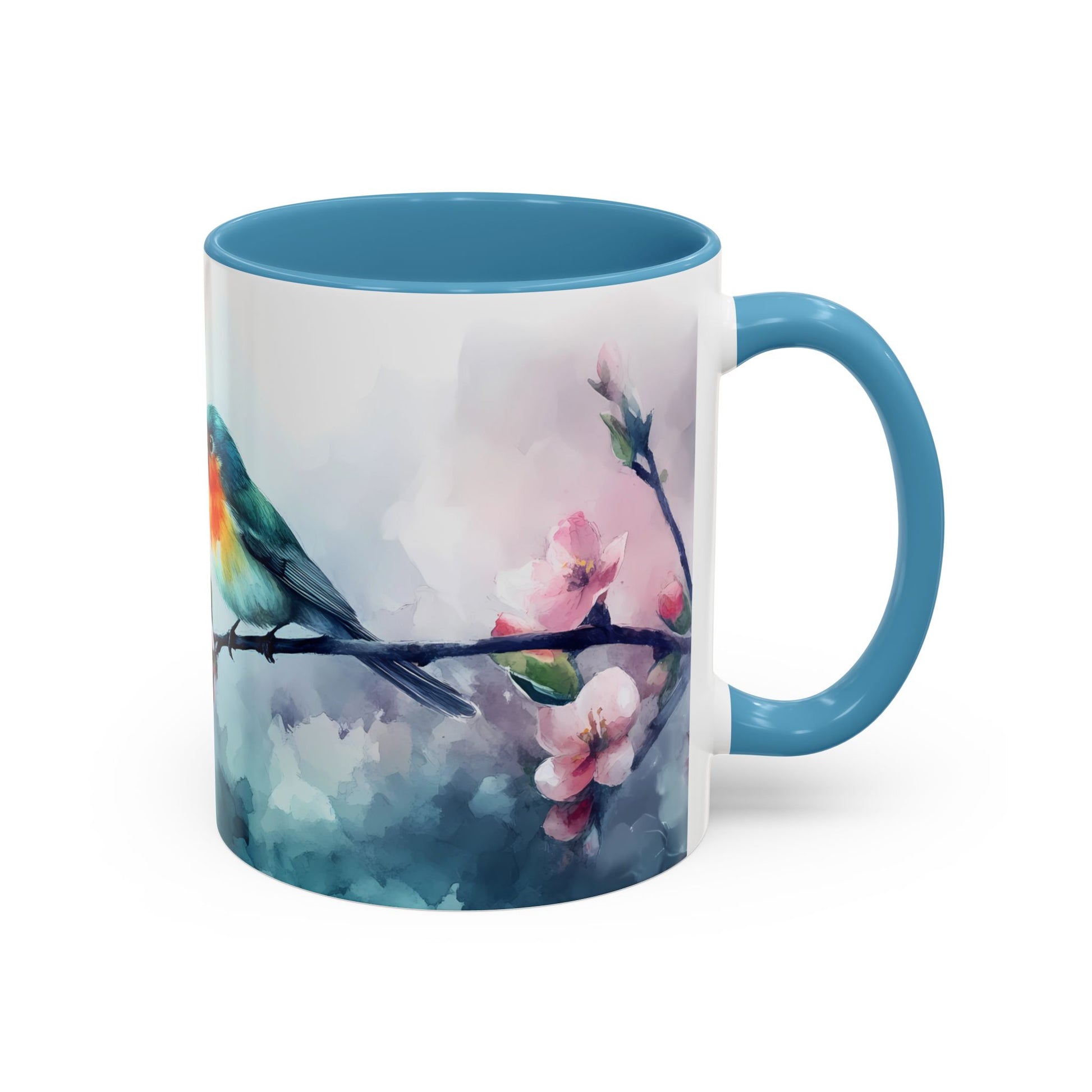 Whimsical Bird & Blossom Accent Coffee Mug - Perfect for Nature Lovers - 11886