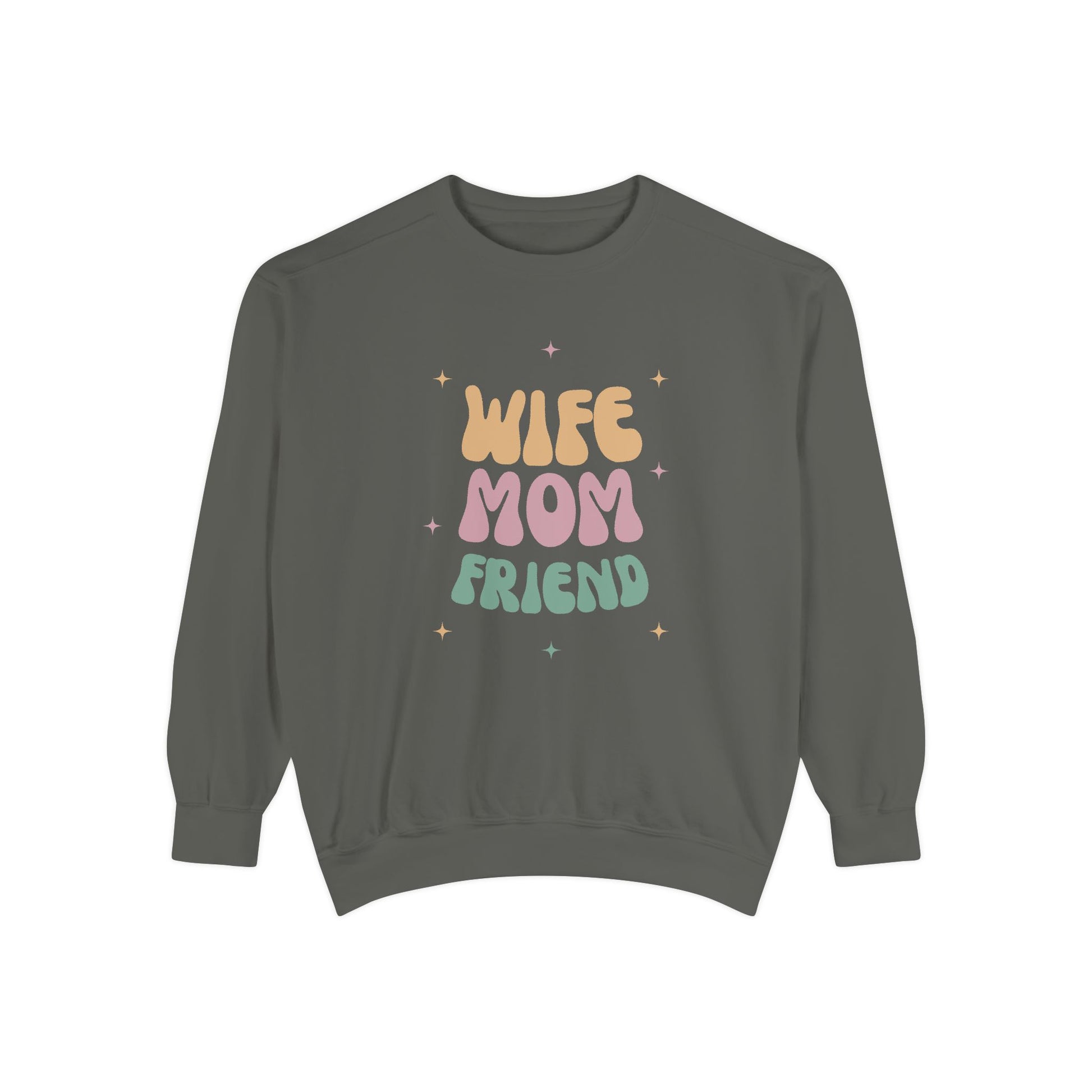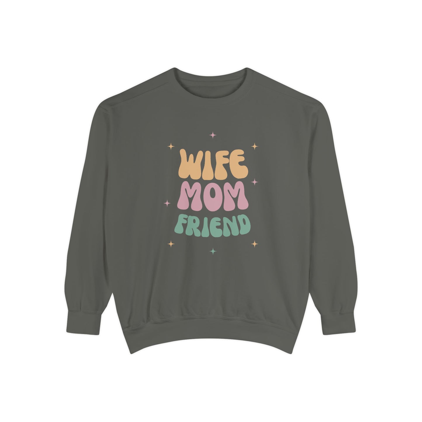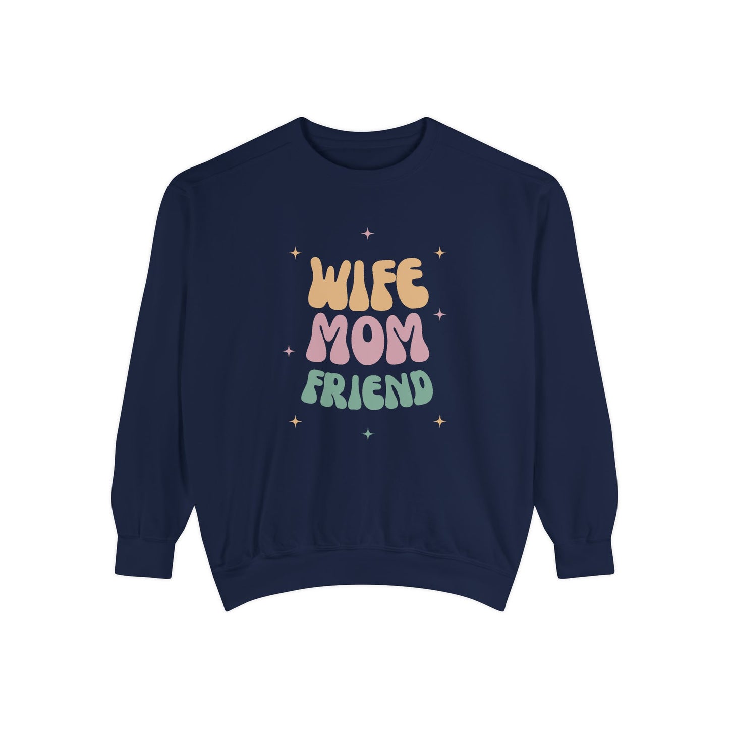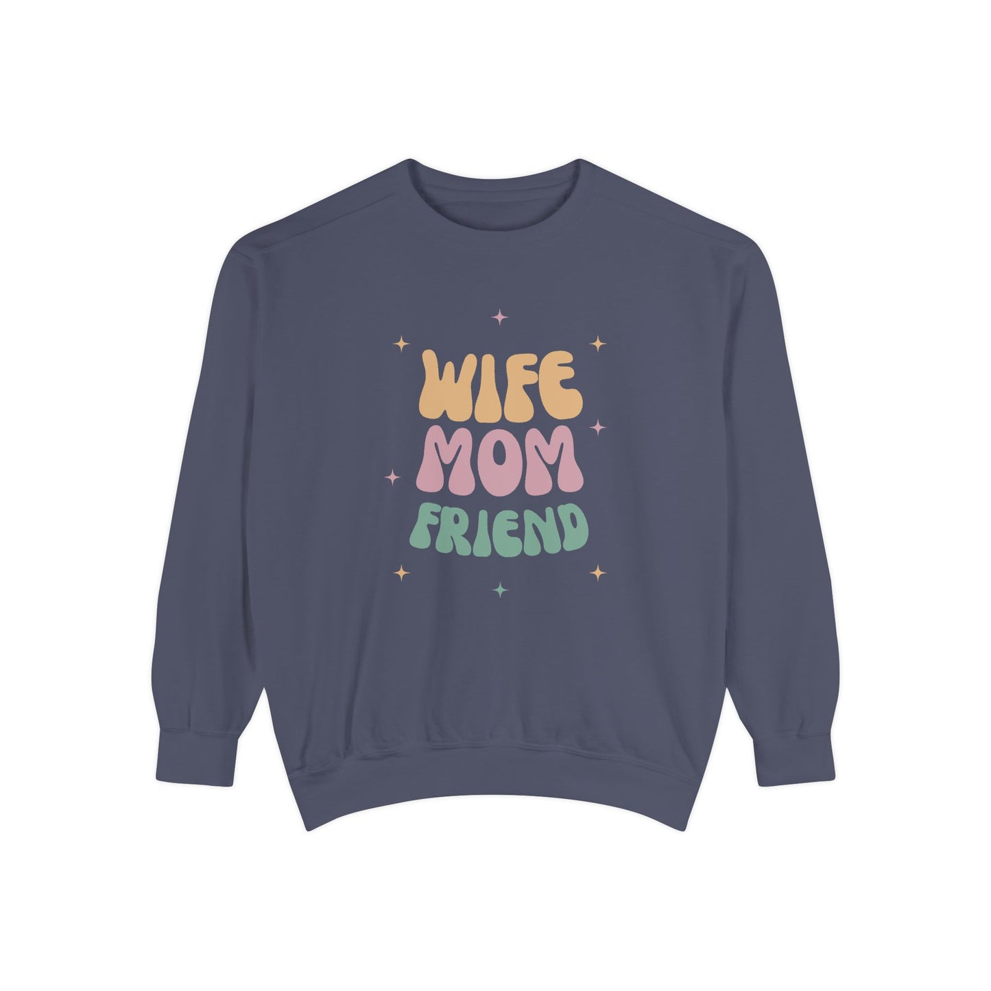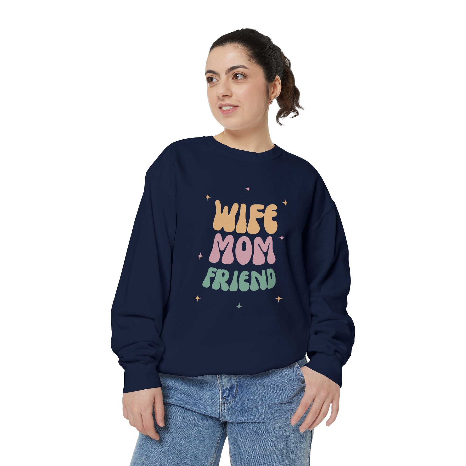 Wife, Mom, Friend - Unisex Garment-Dyed Sweatshirt - 11732