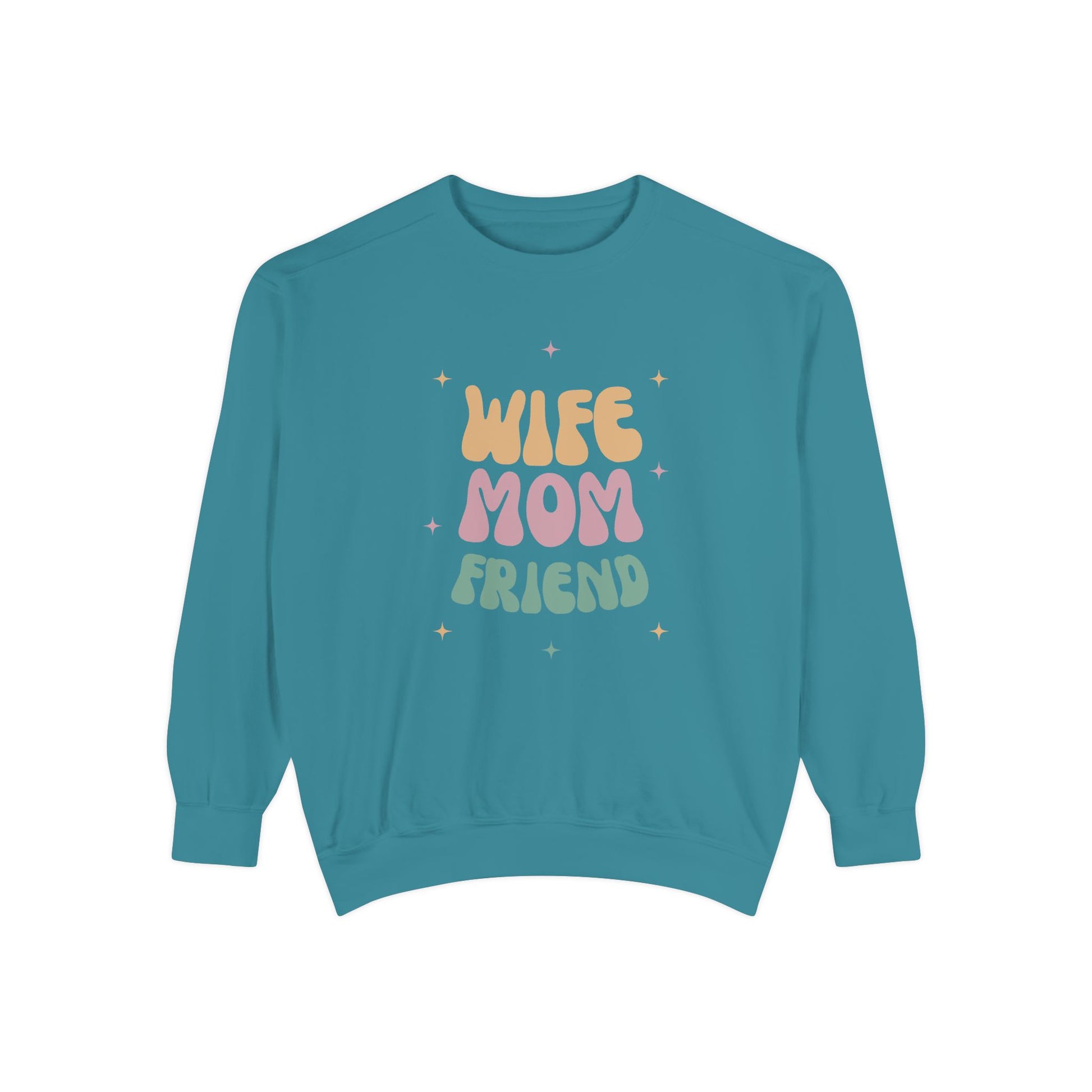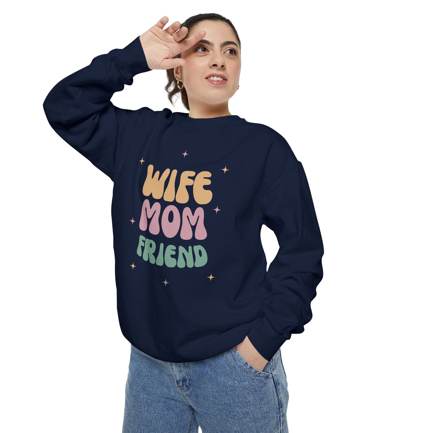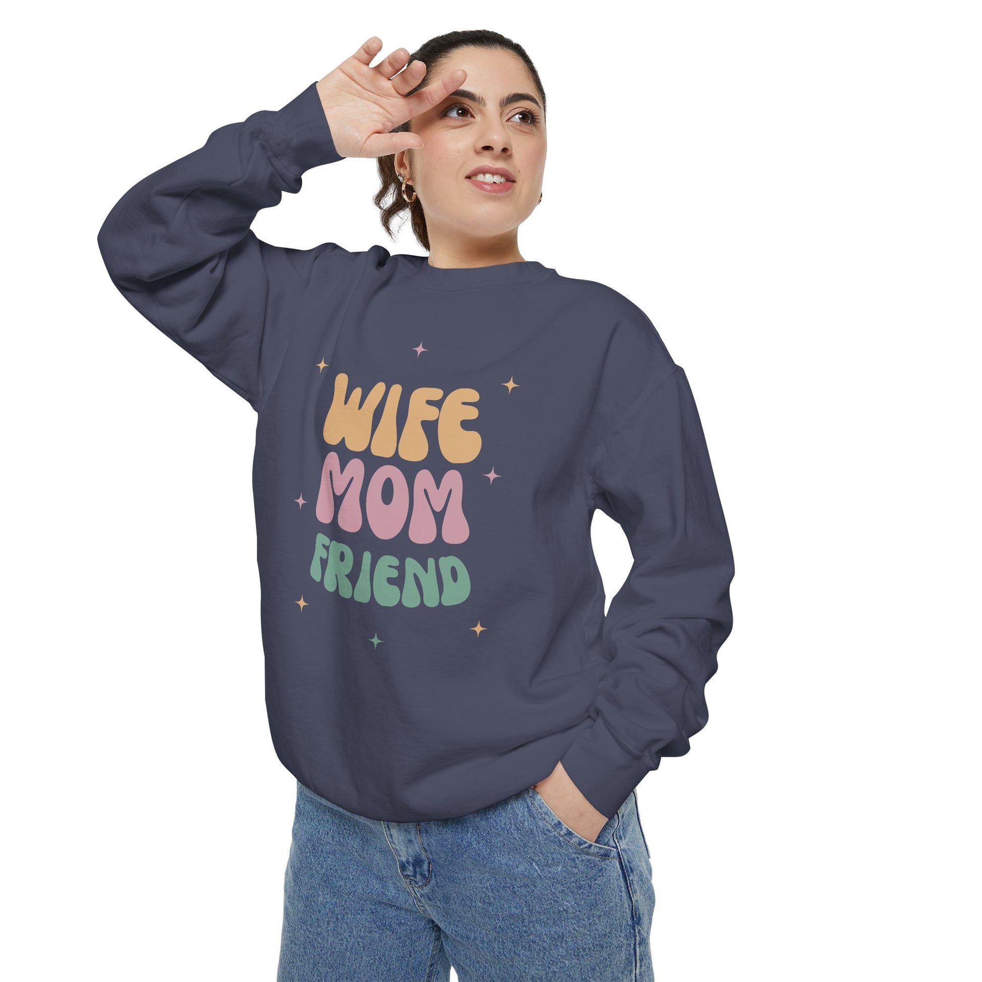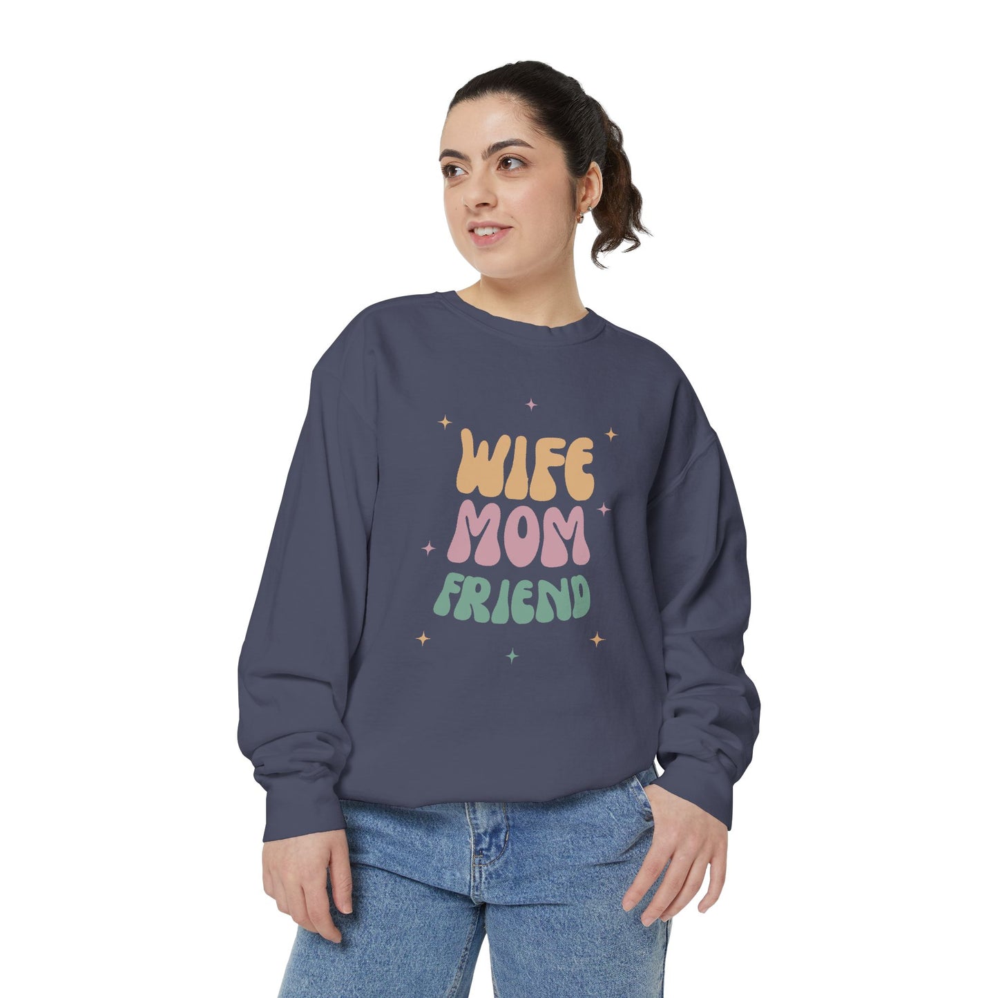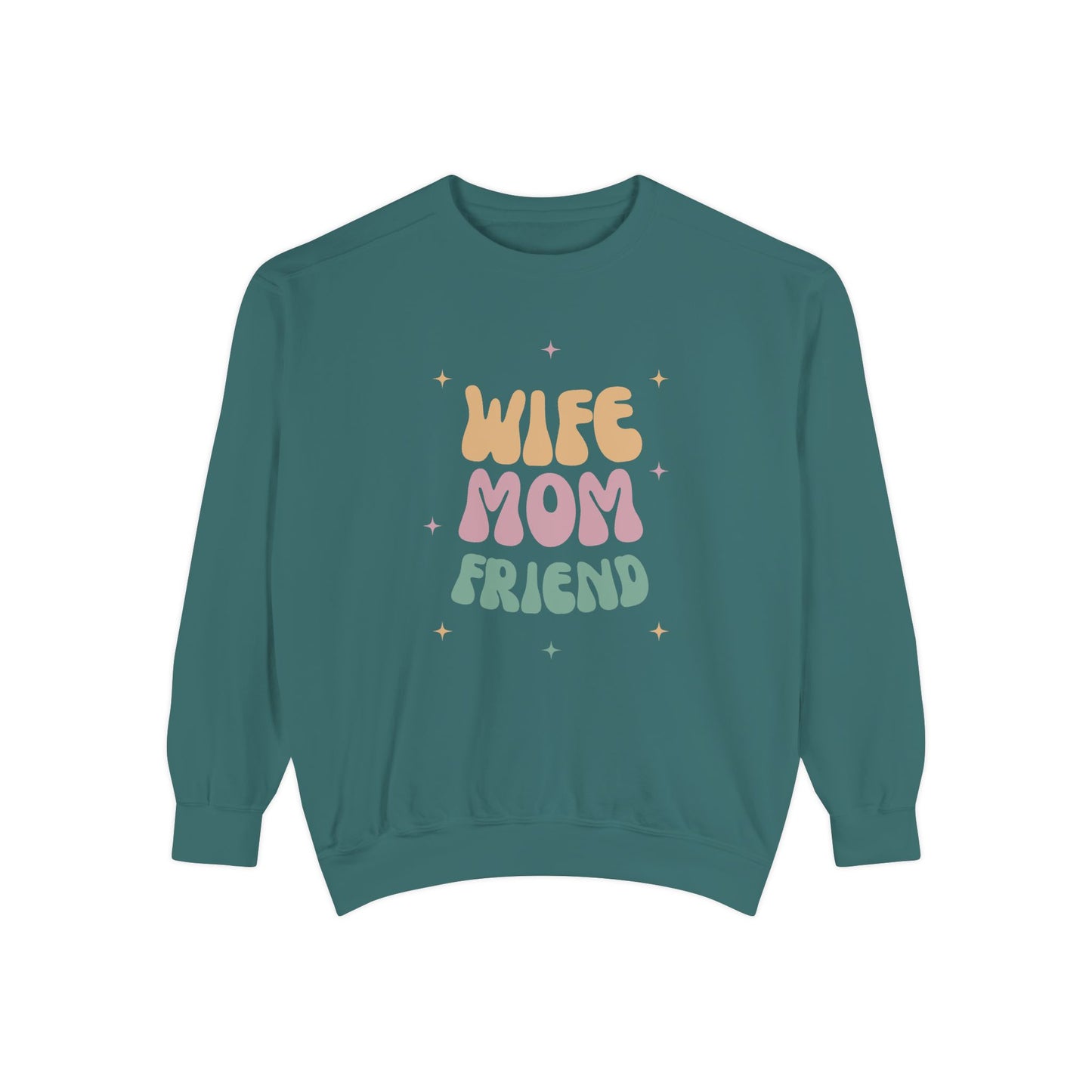 Wife, Mom, Friend - Unisex Garment-Dyed Sweatshirt - 11732