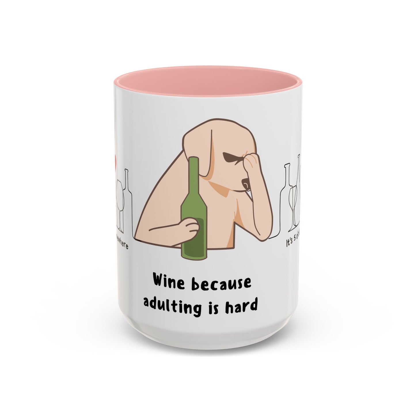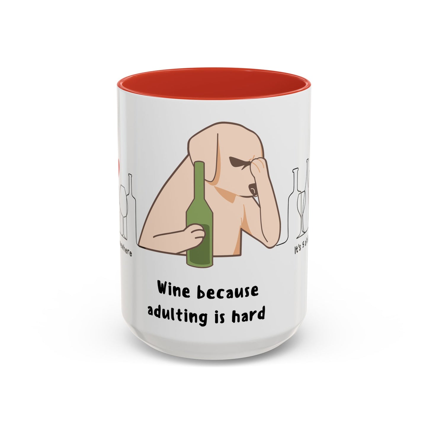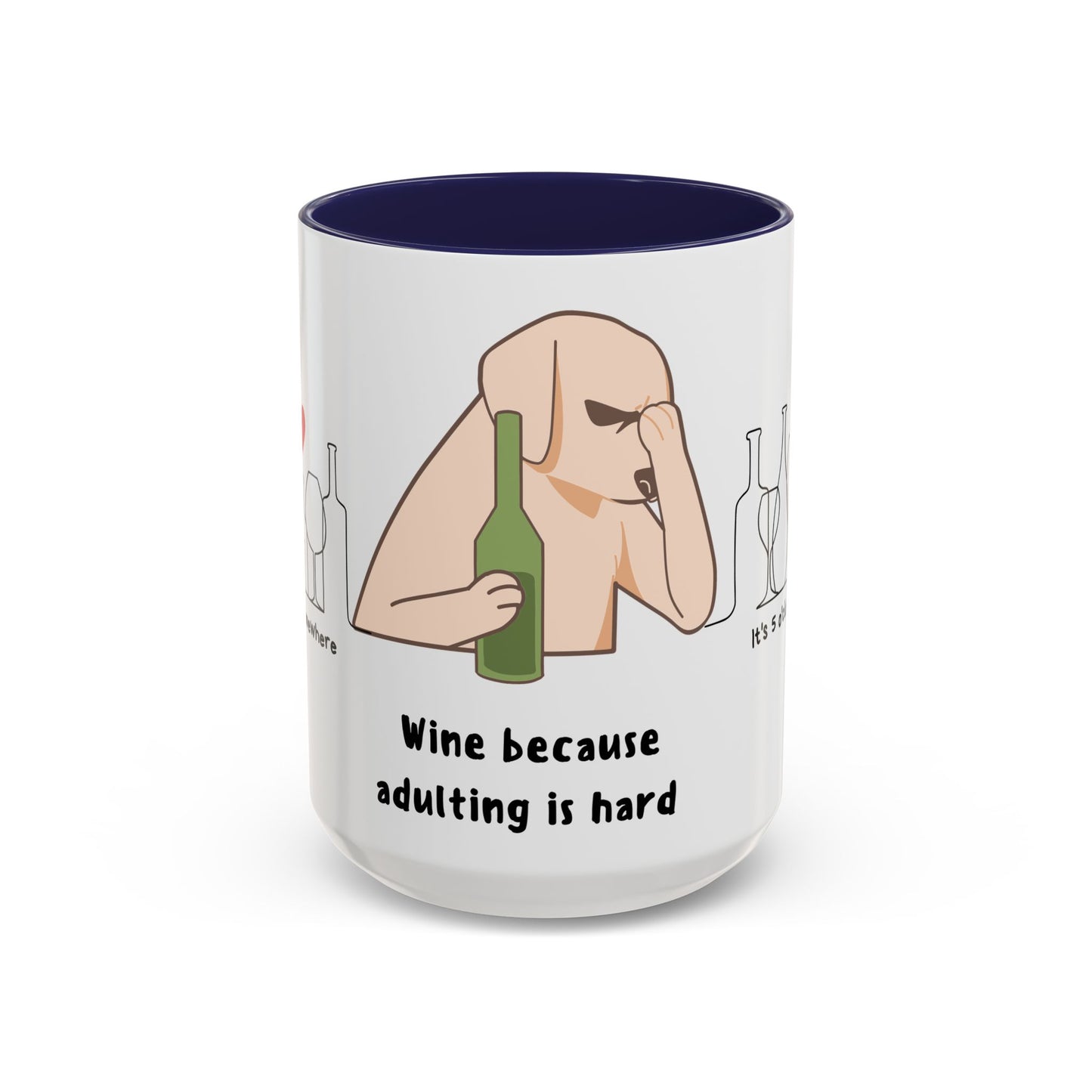 Wine Because Adulting is Hard - Accent Coffee Mug (11, 15oz)