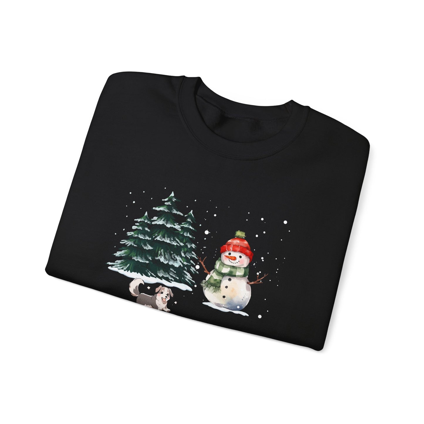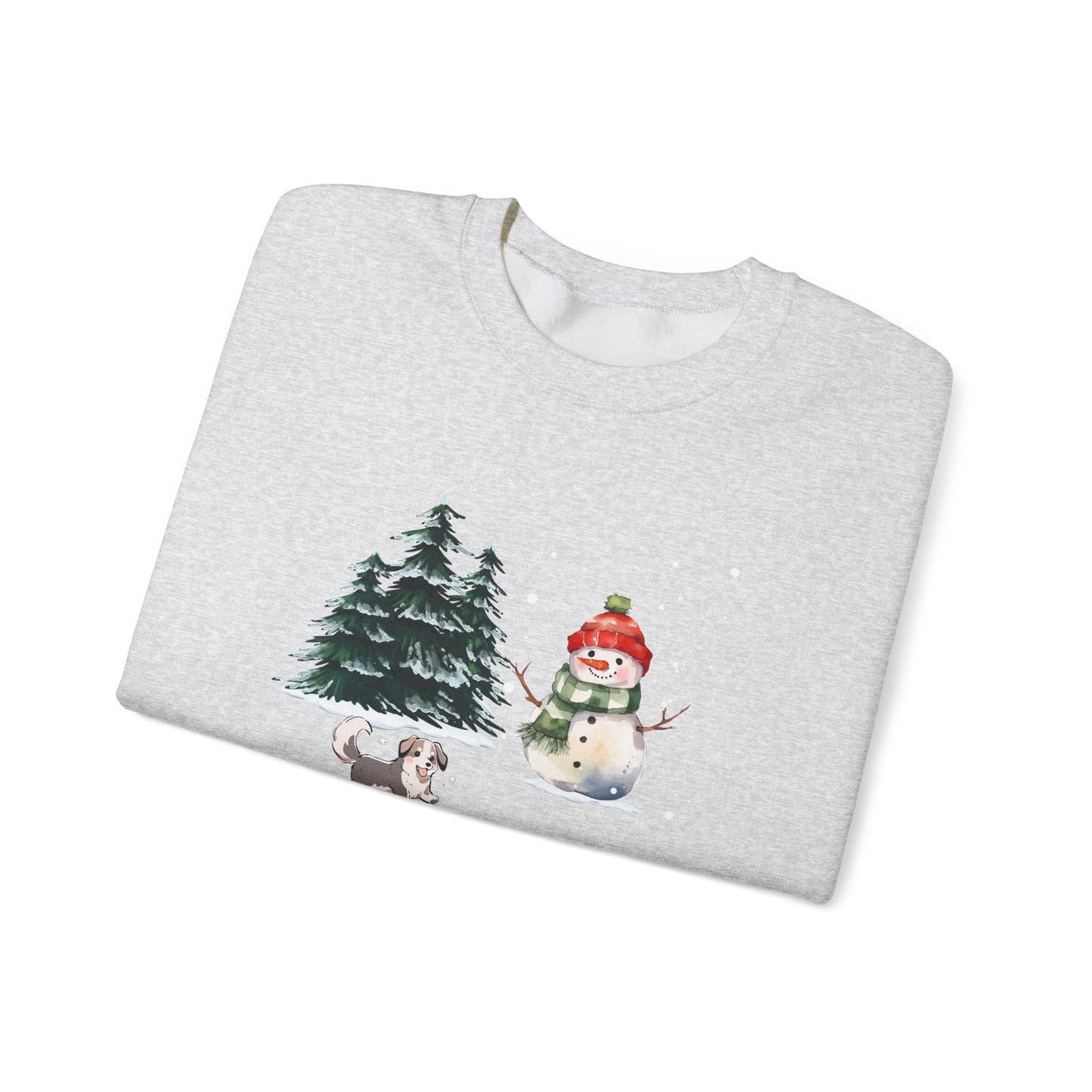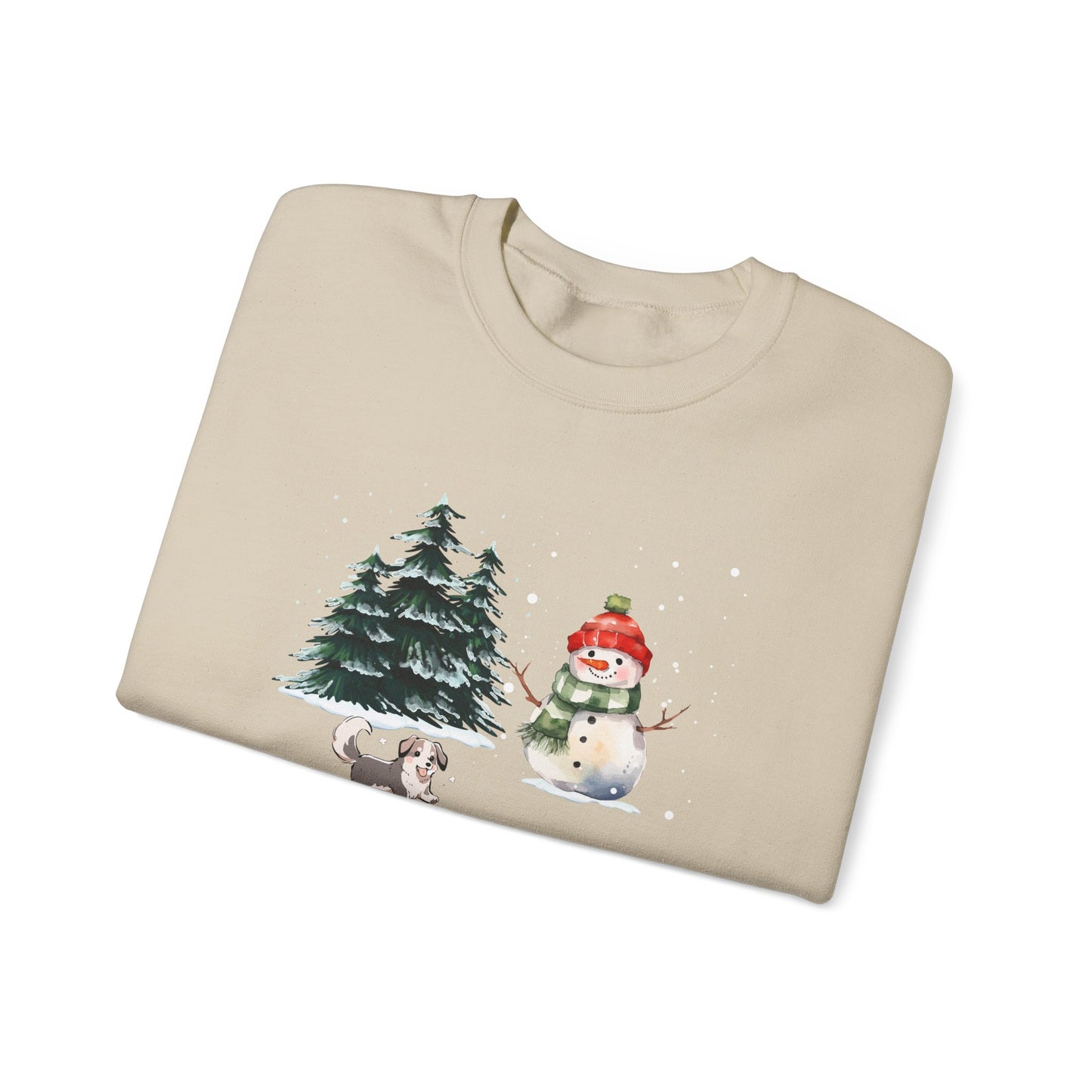Winter Trees, Snowman, Puppy - Unisex Heavy Blend™ Crewneck Sweatshirt - 10260