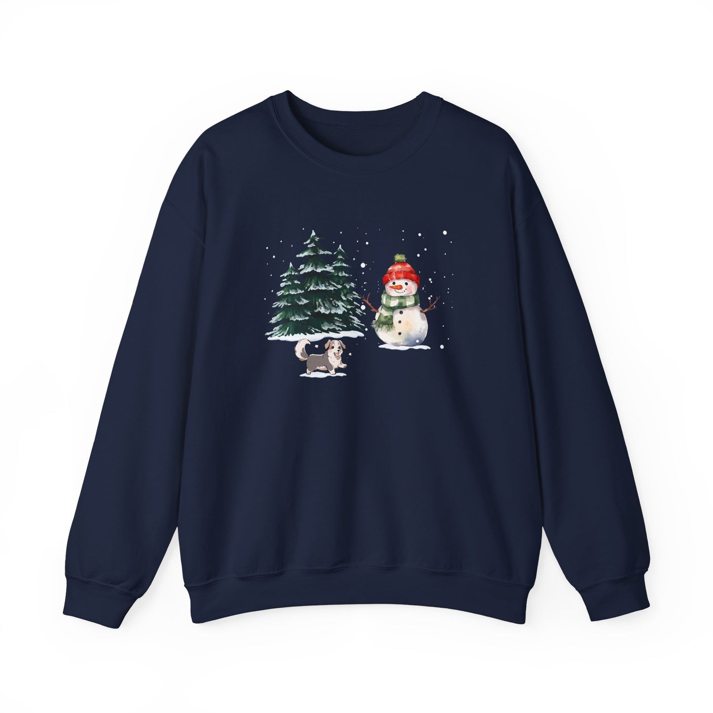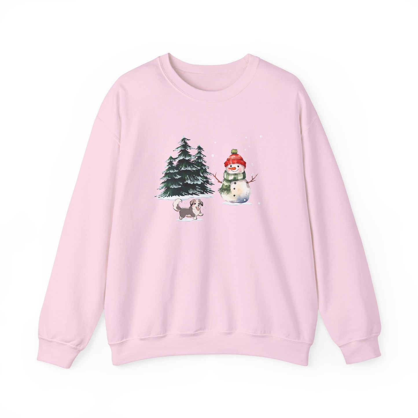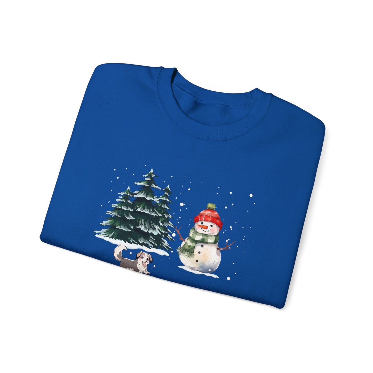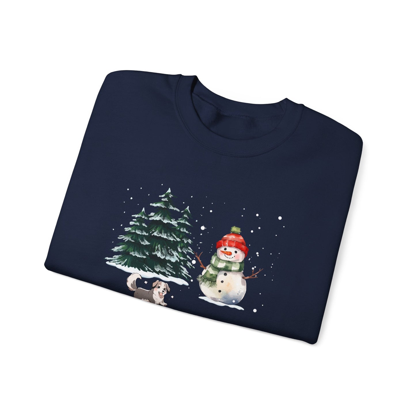 Winter Trees, Snowman, Puppy - Unisex Heavy Blend™ Crewneck Sweatshirt - 10260