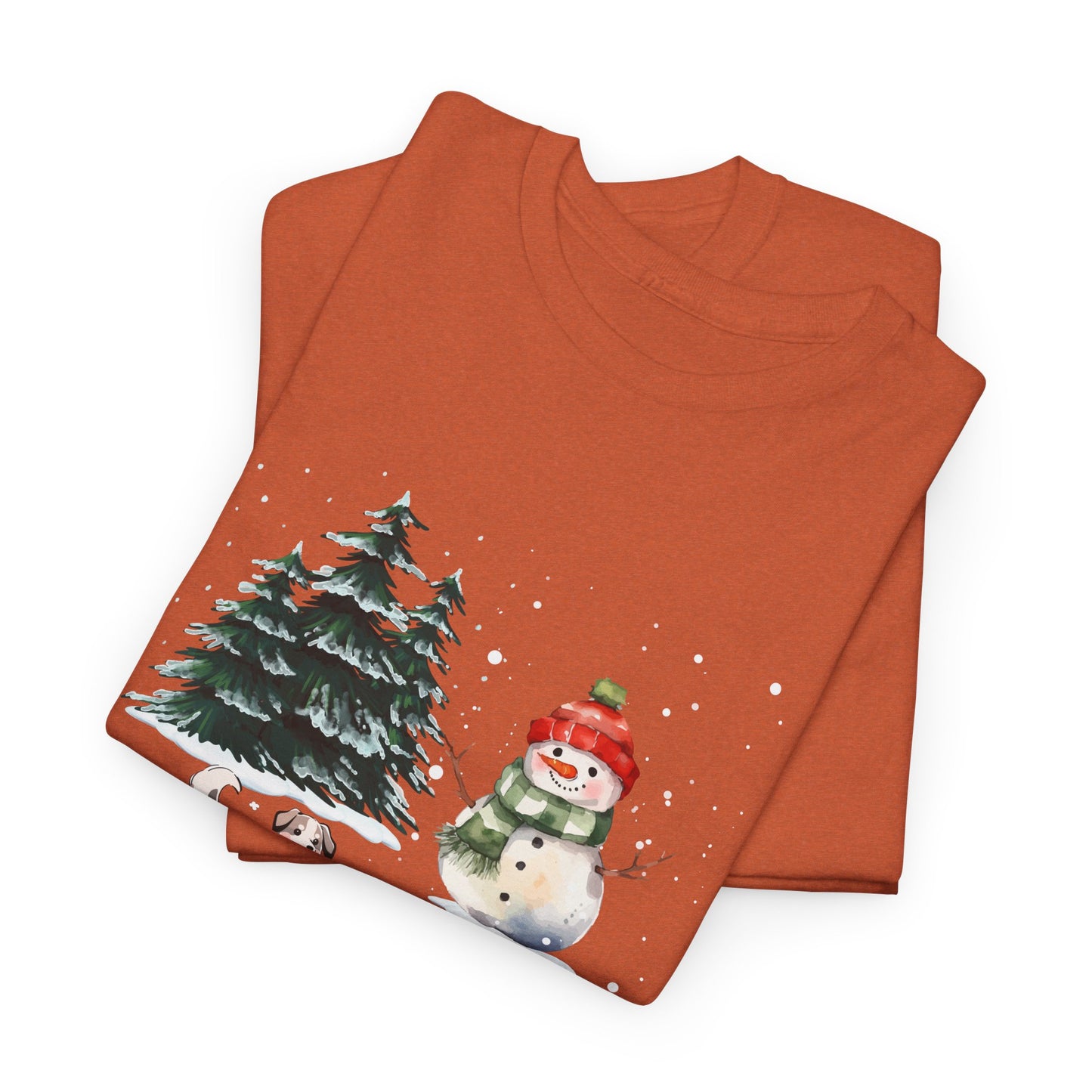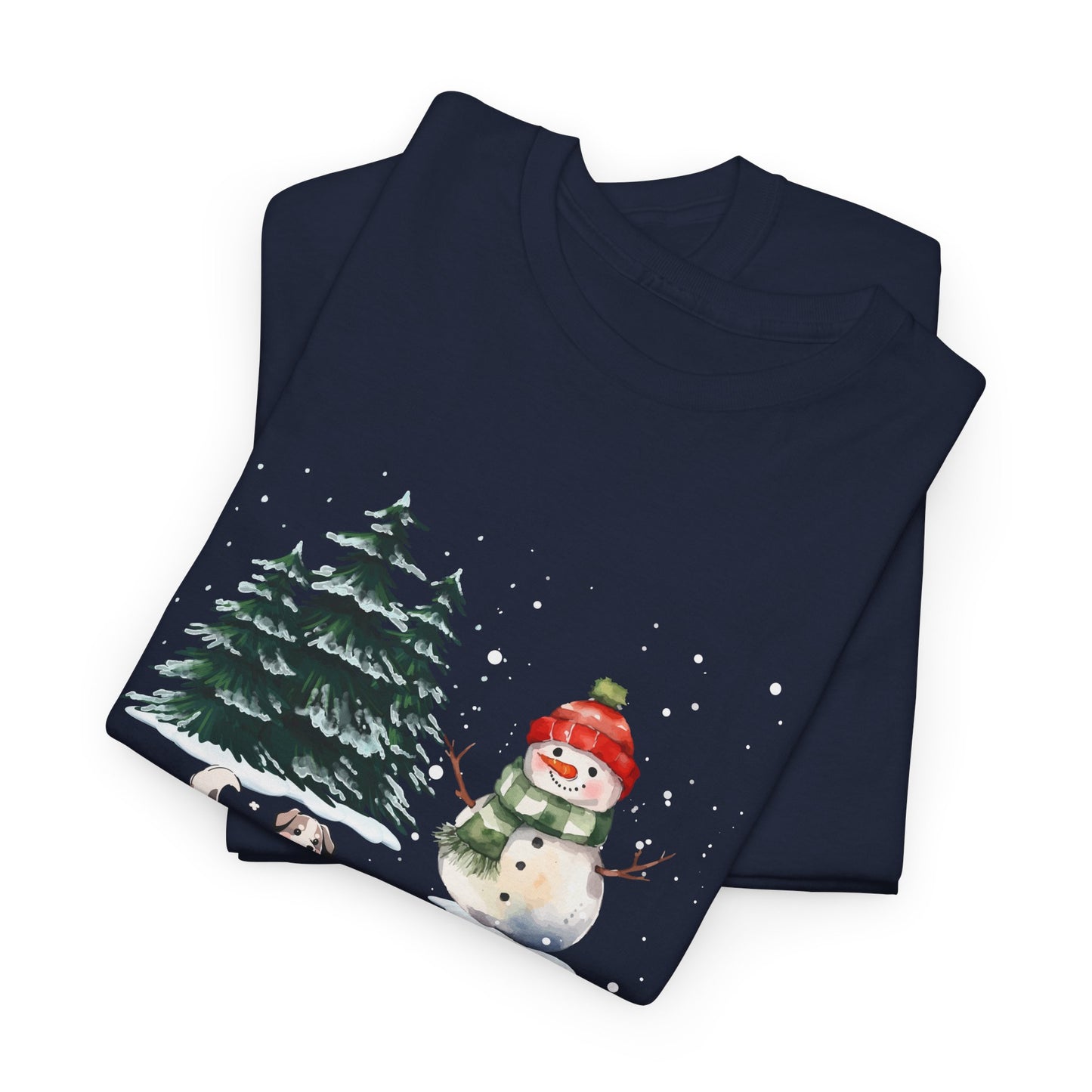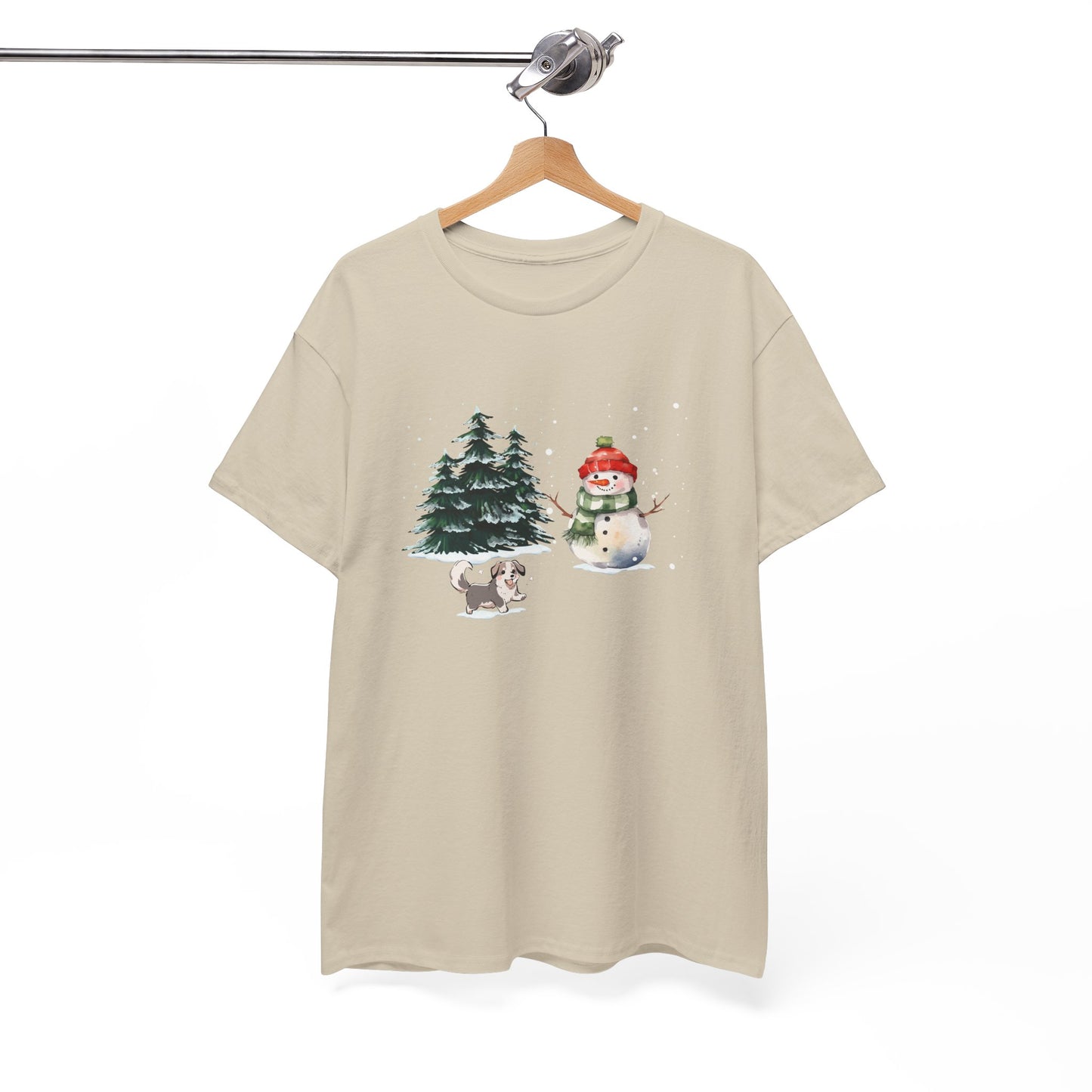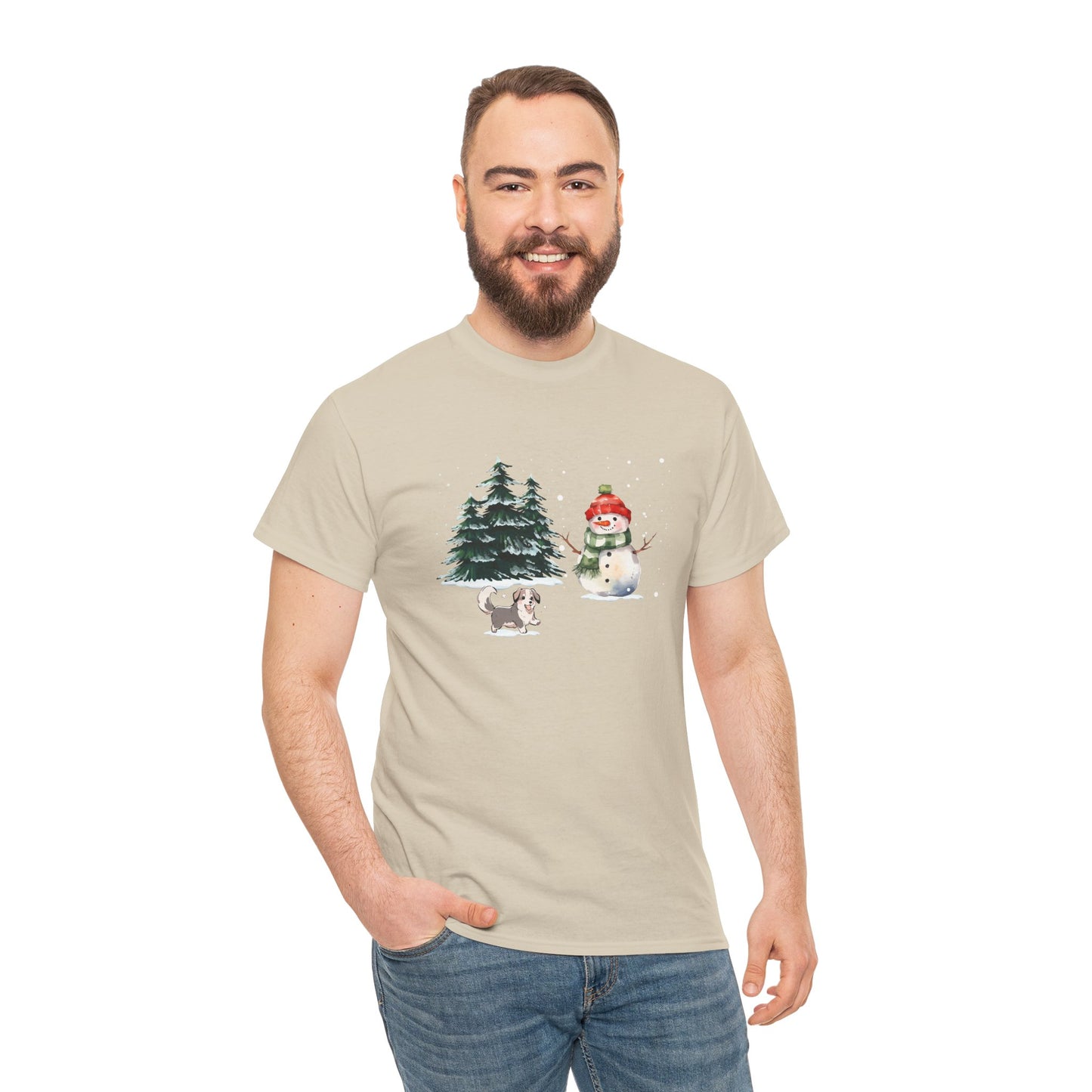 Winter Trees, Snowman & Puppy - Unisex Heavy Cotton Tee - 10278