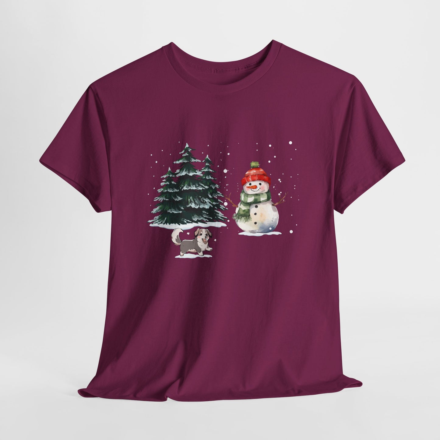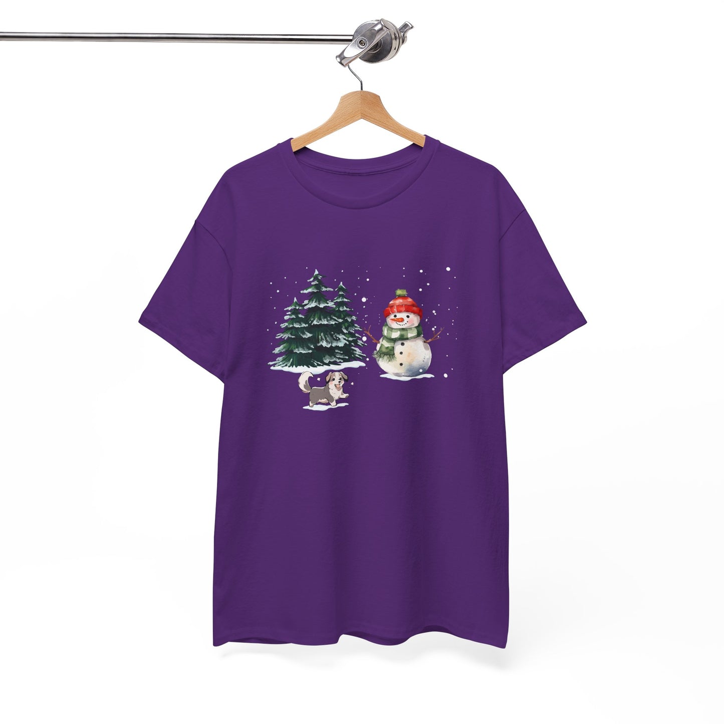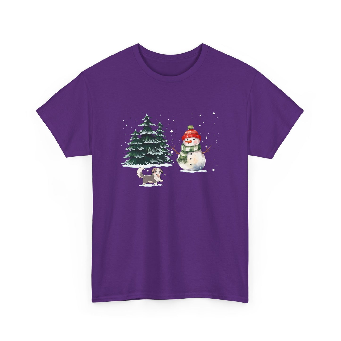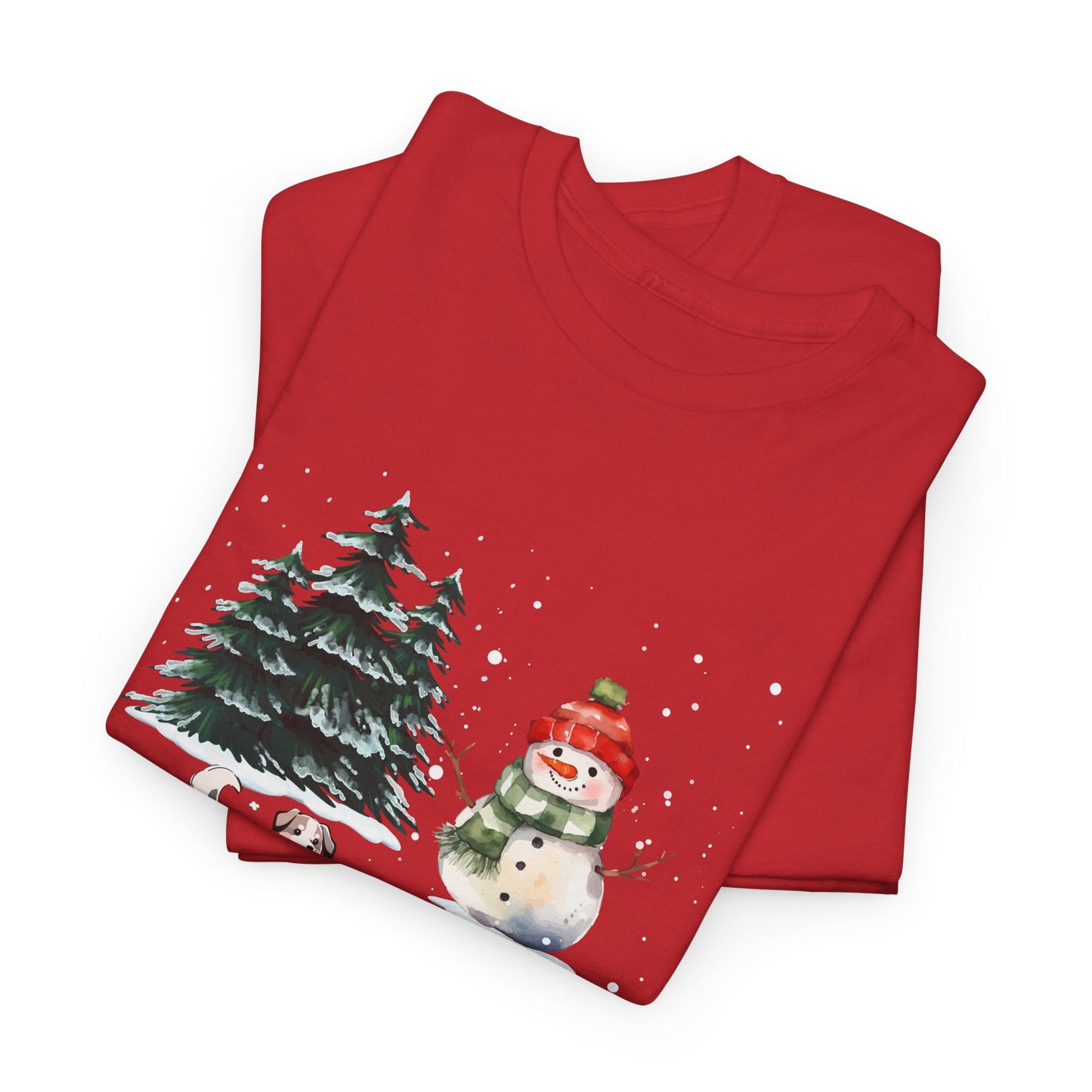 Winter Trees, Snowman & Puppy - Unisex Heavy Cotton Tee - 10278