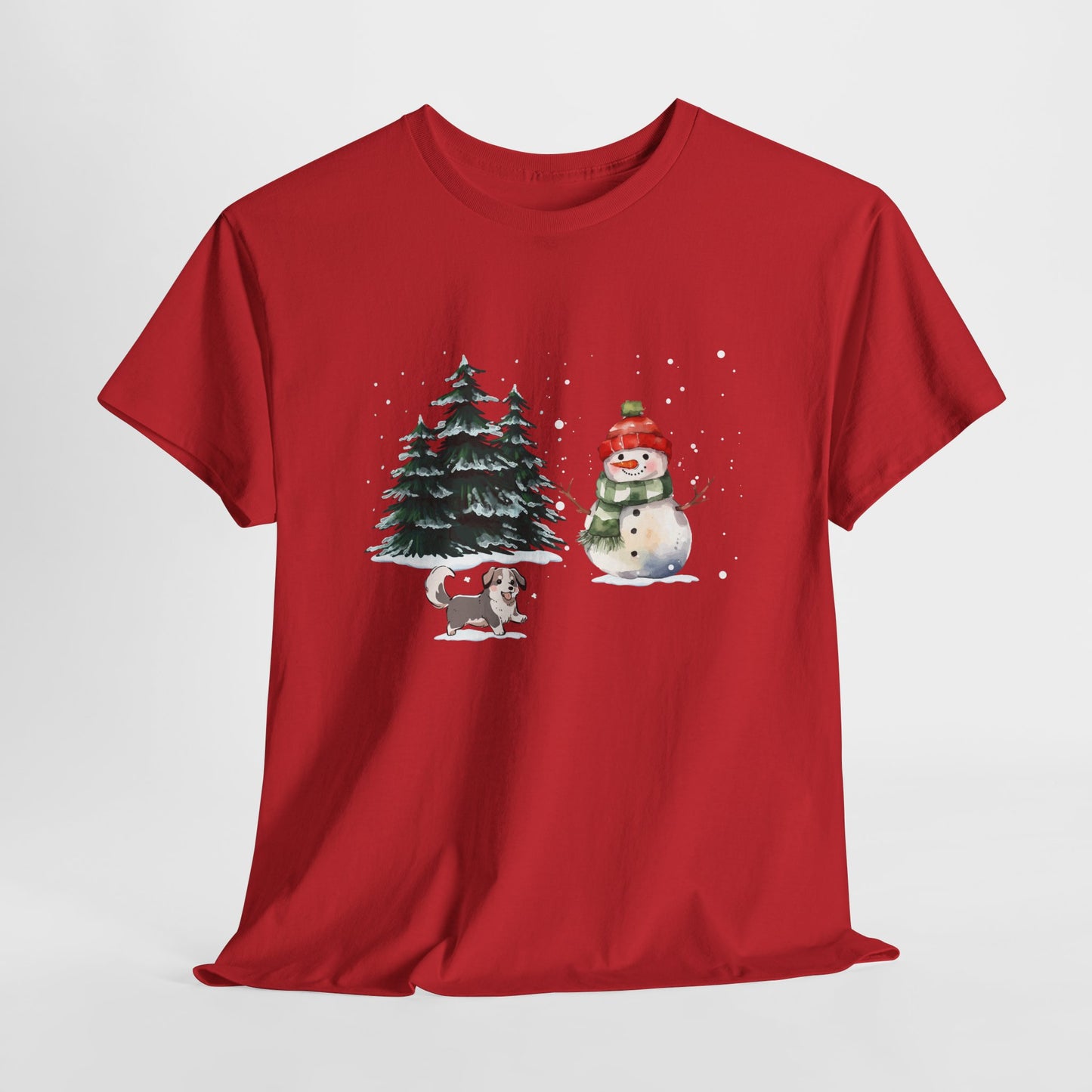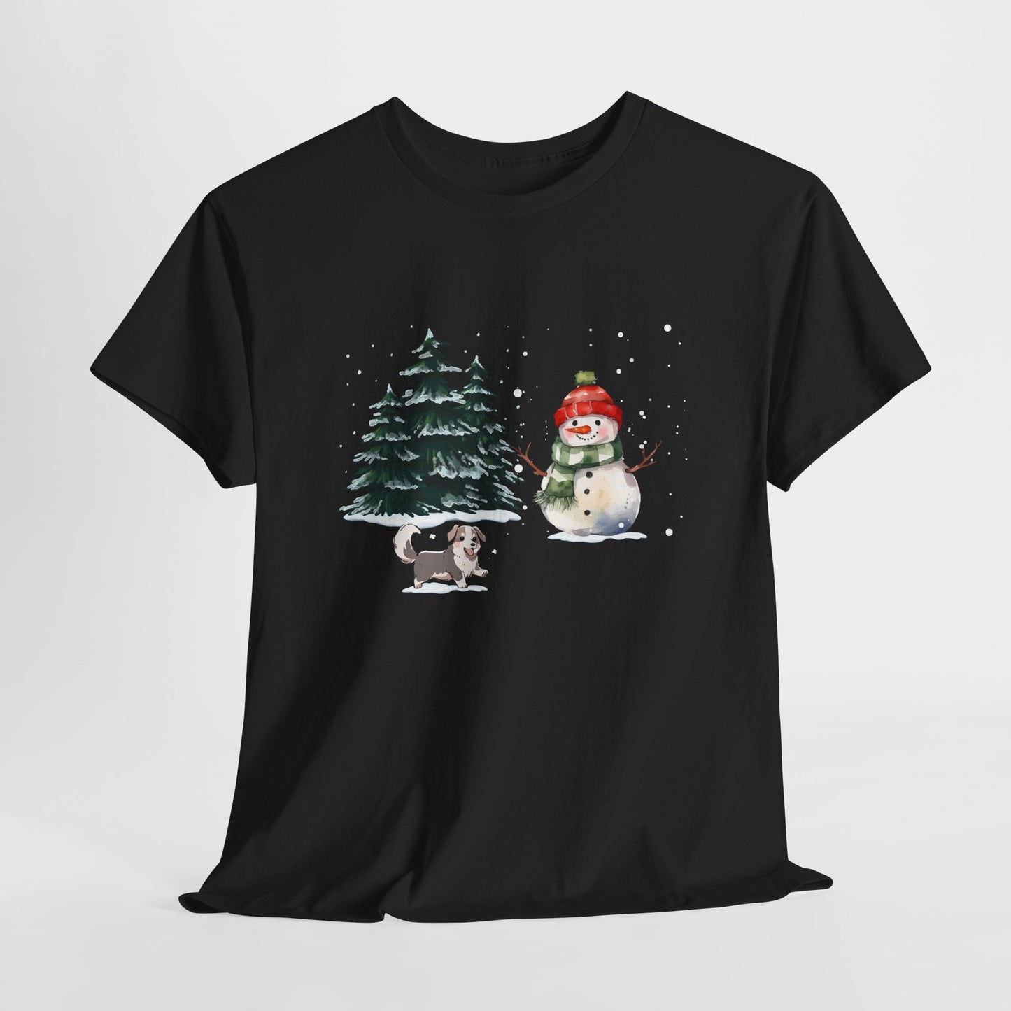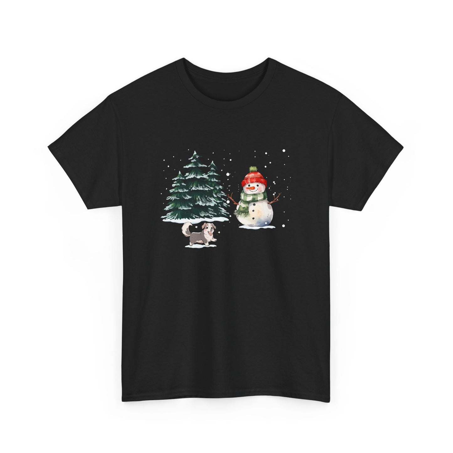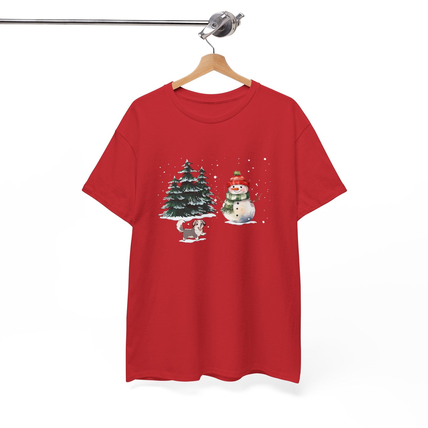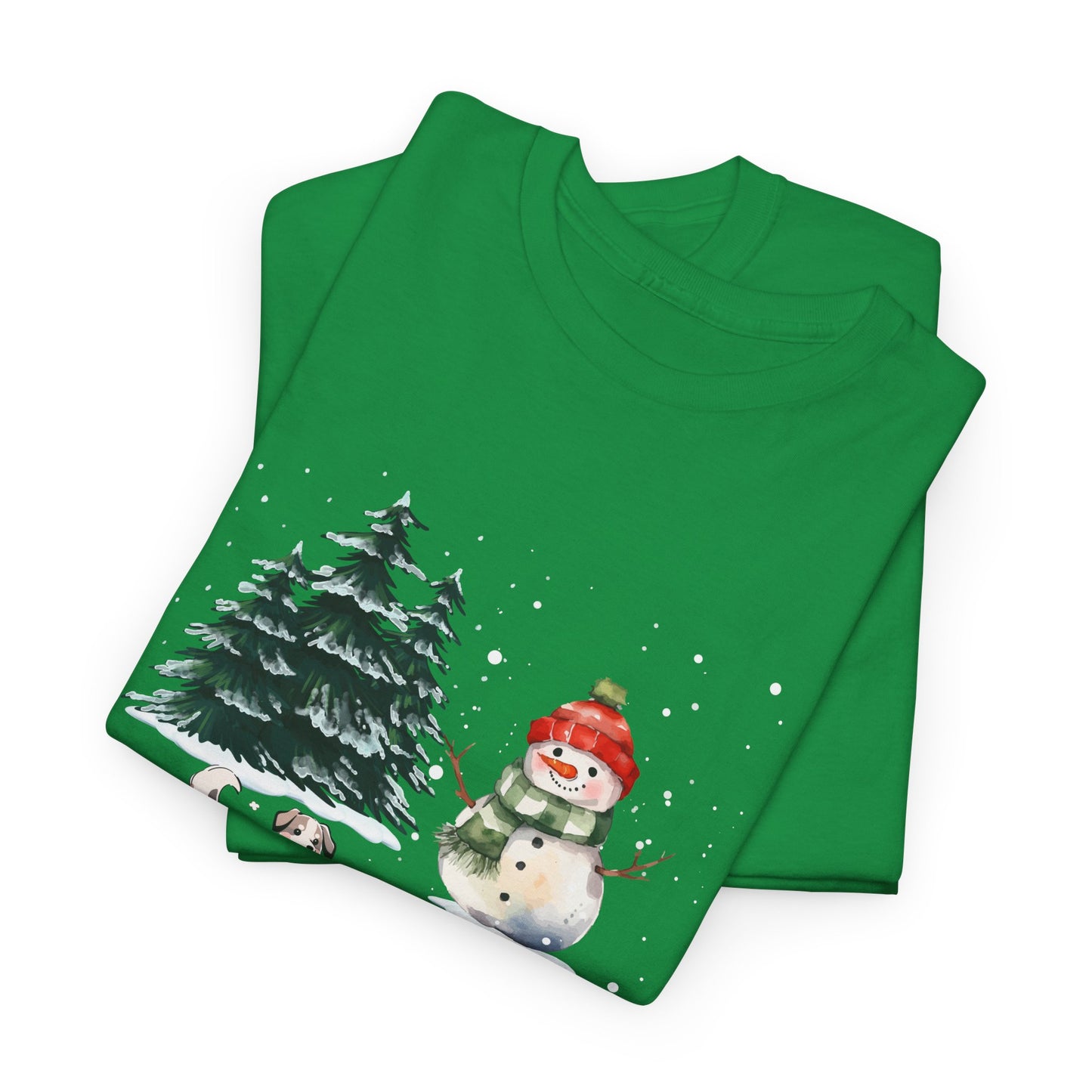 Winter Trees, Snowman & Puppy - Unisex Heavy Cotton Tee - 10278