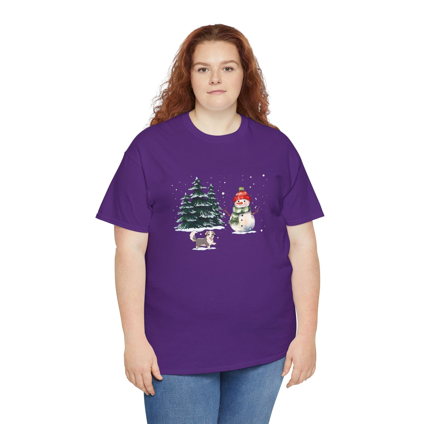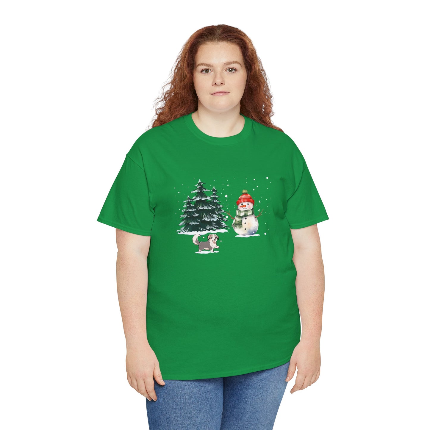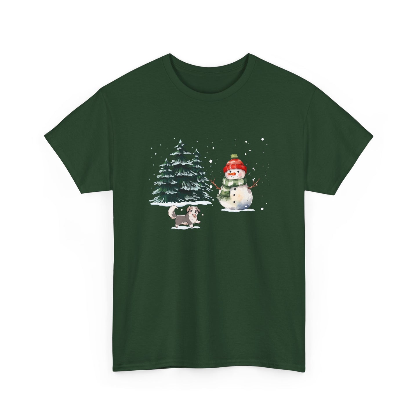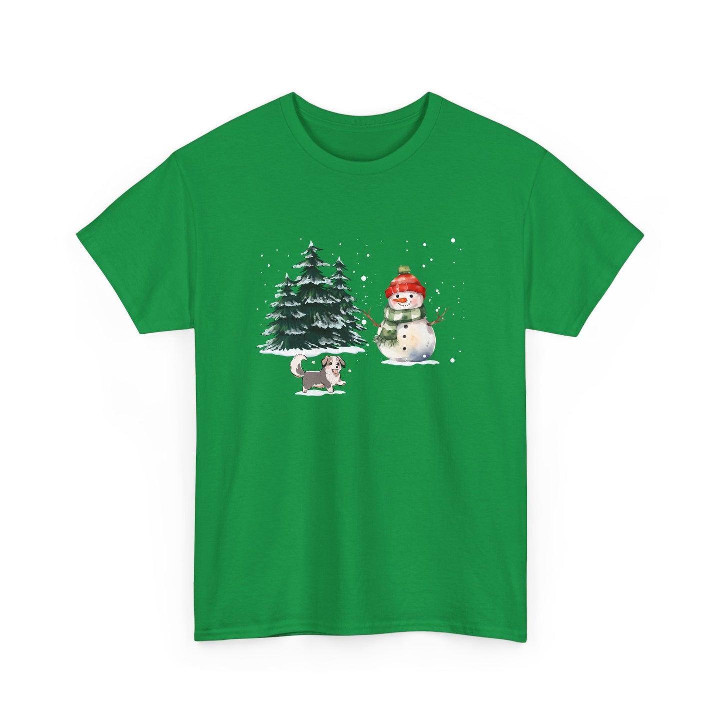 Winter Trees, Snowman & Puppy - Unisex Heavy Cotton Tee - 10278