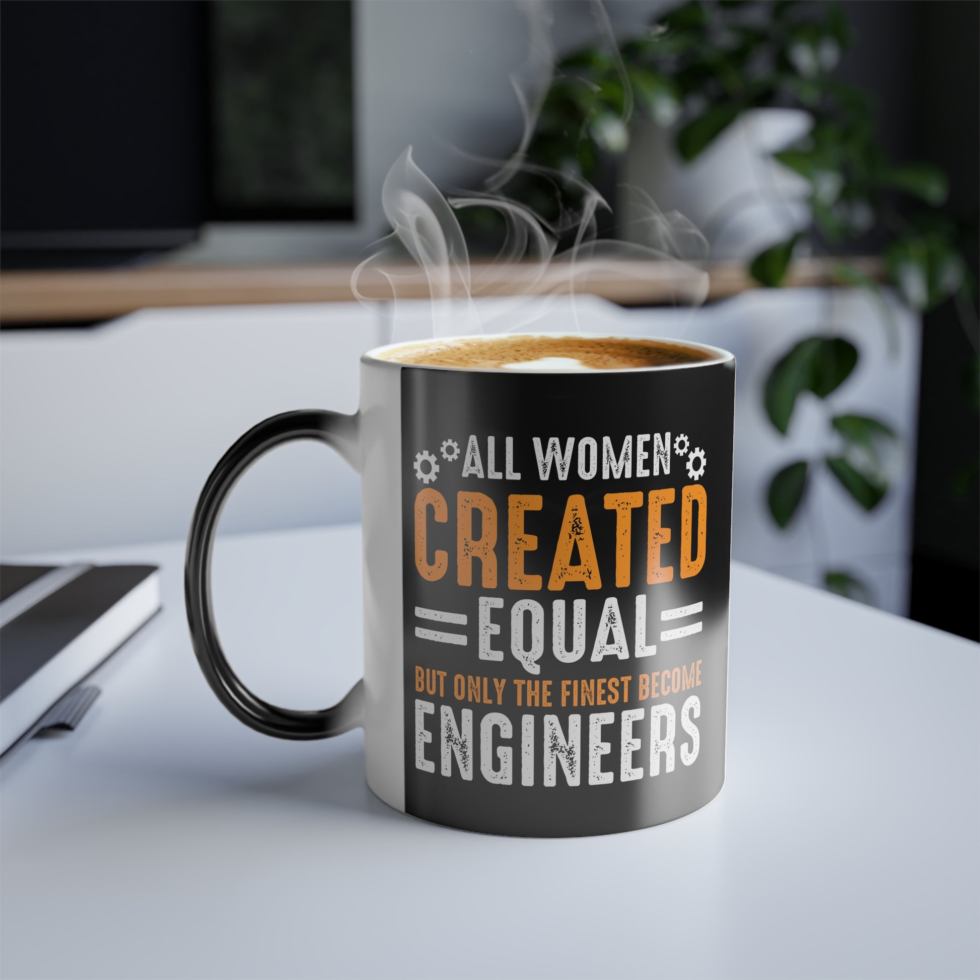 Show your pride and support for women in engineering with the Women Are Created Equal, Only The Finest Become Engineers Color Morphing Mug. Order yours today and let your morning coffee come with a dose of inspiration!
