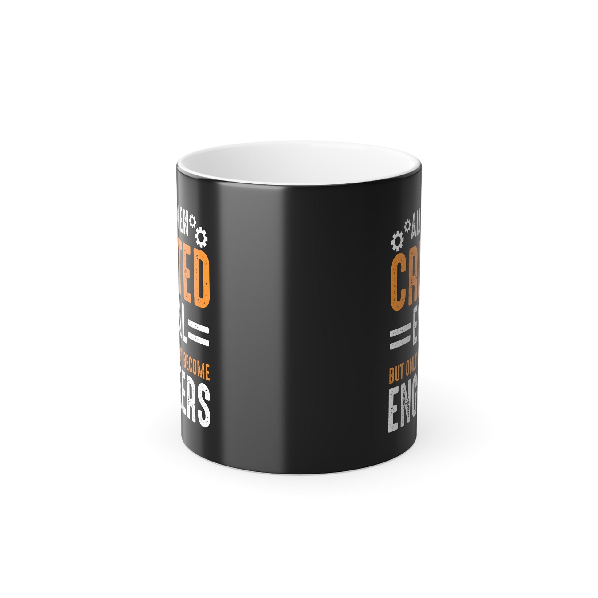 Celebrate the strength and brilliance of women in engineering with our Women Are Created Equal, Only The Finest Become Engineers Color Morphing Mug! This 11oz mug transforms from solid black to reveal a stunning design when filled with a hot beverage, making it a perfect addition to the daily routine of any aspiring or professional female engineer.