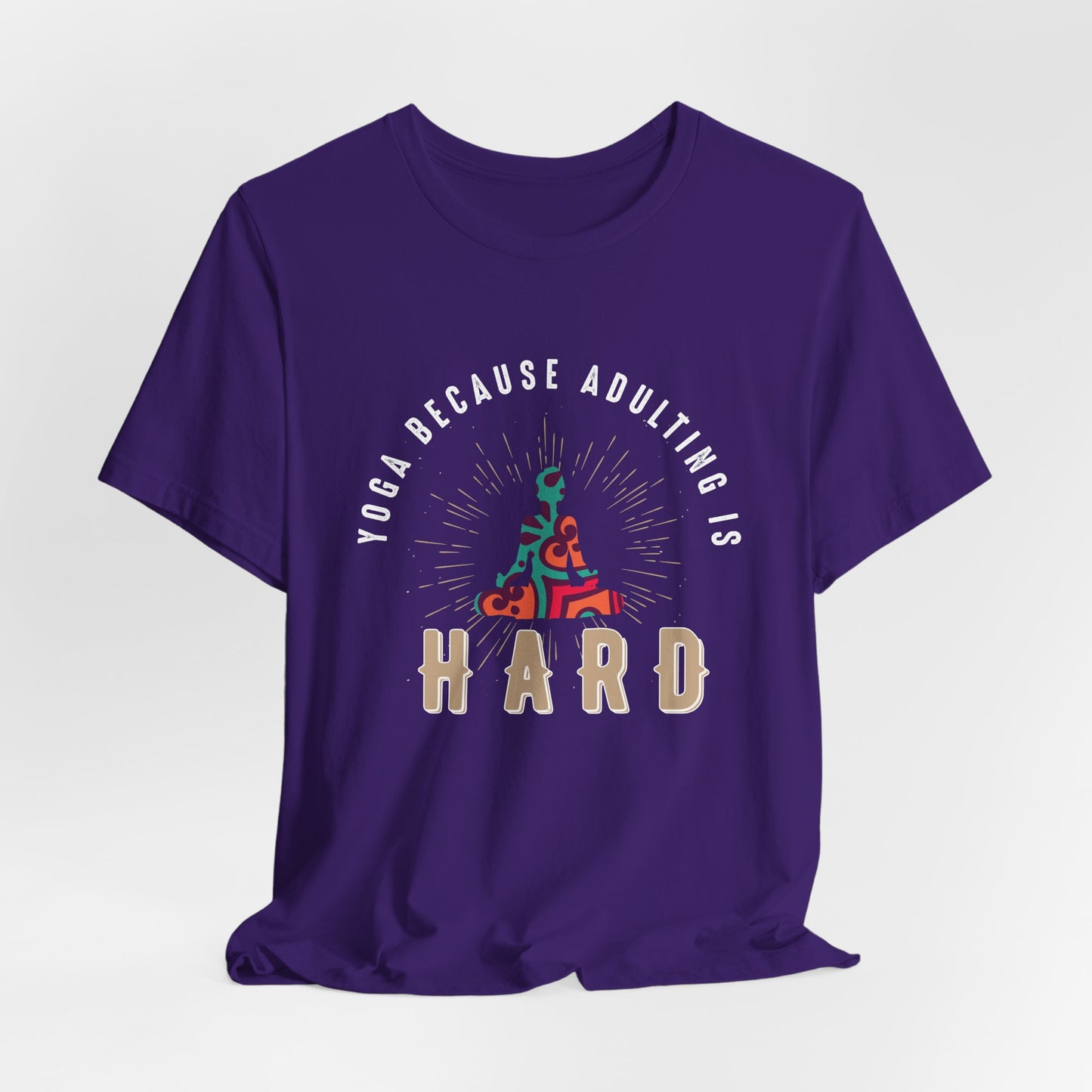 Celebrate the power of yoga as your go-to solution for the everyday struggles of adulting with the Yoga Because Adulting Is Hard tee. It’s a reminder to breathe deeply, stay calm, and keep moving forward.