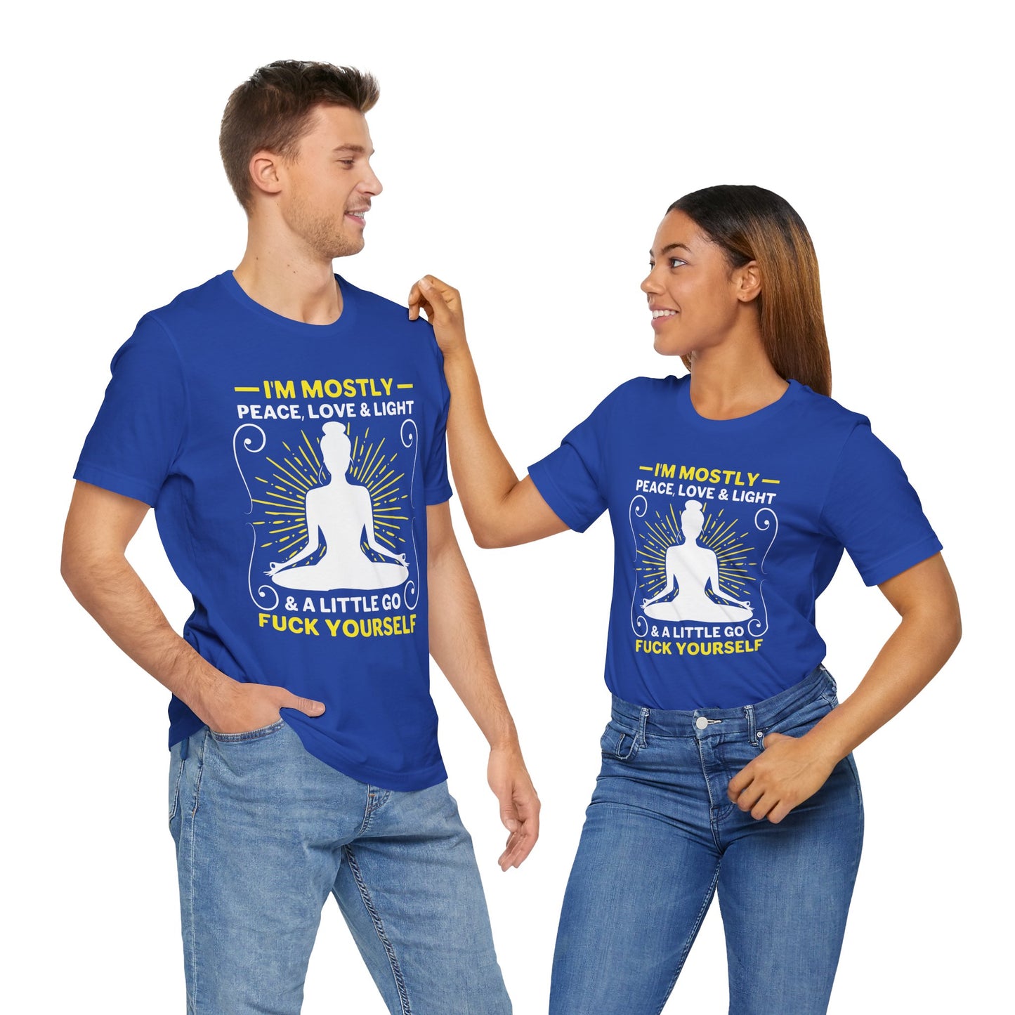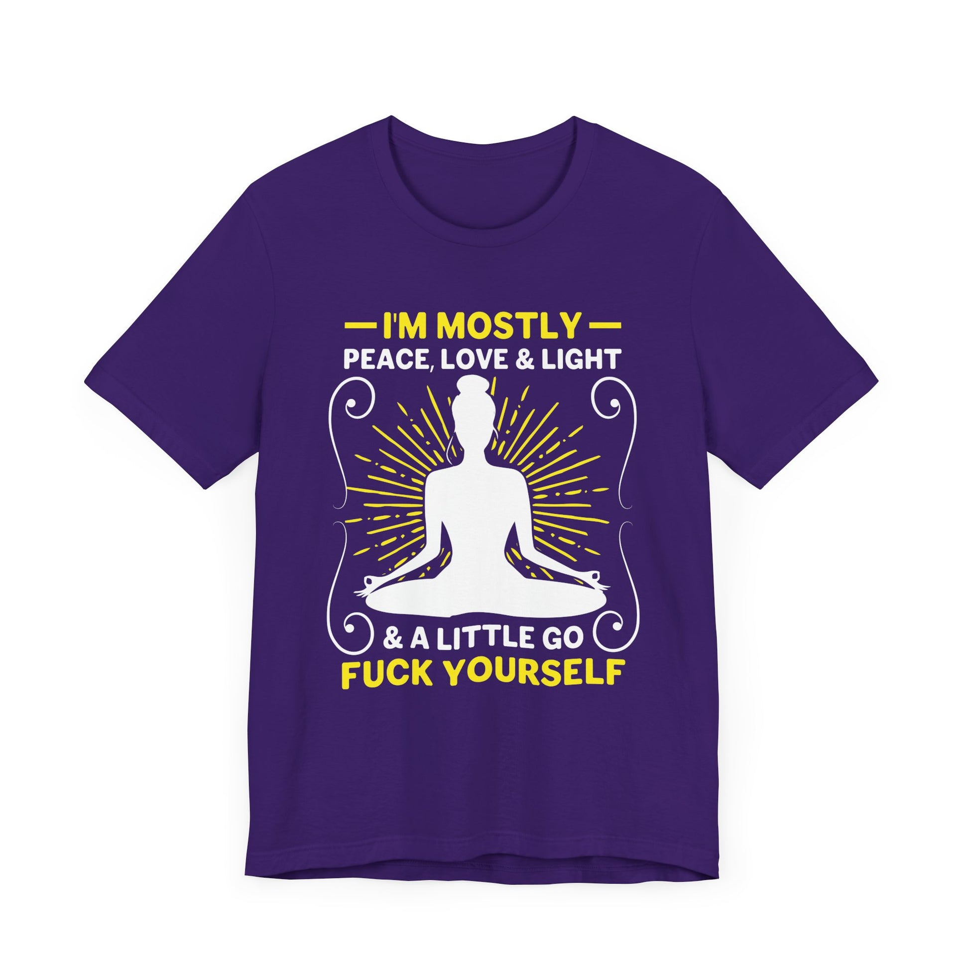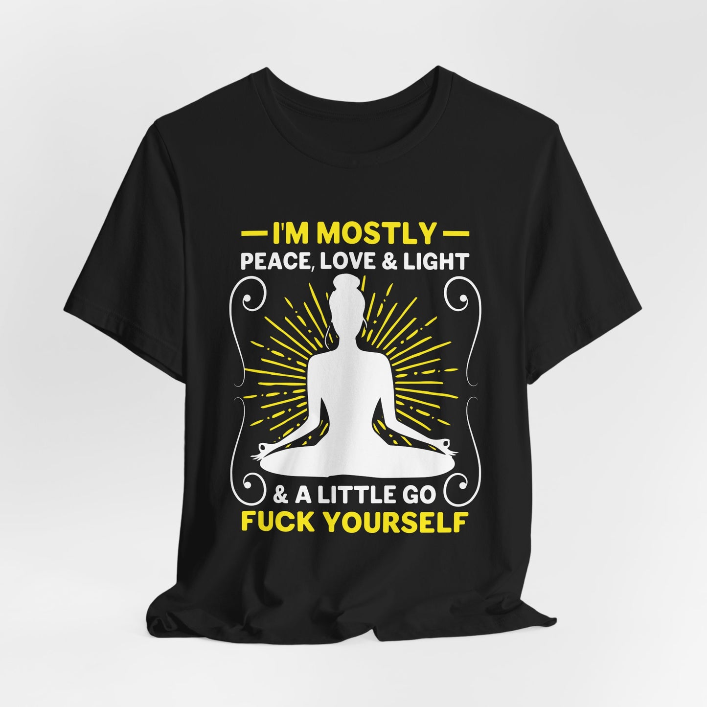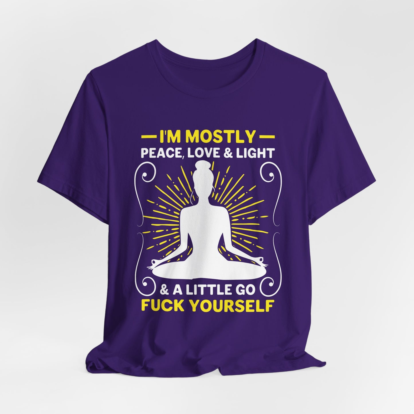Celebrate your serene side with the “Yoga: I'm Mostly Peace, Love, & Light” Unisex Jersey Short Sleeve Tee. This tee is perfect for those who embody the calm, loving, and enlightened spirit of yoga.