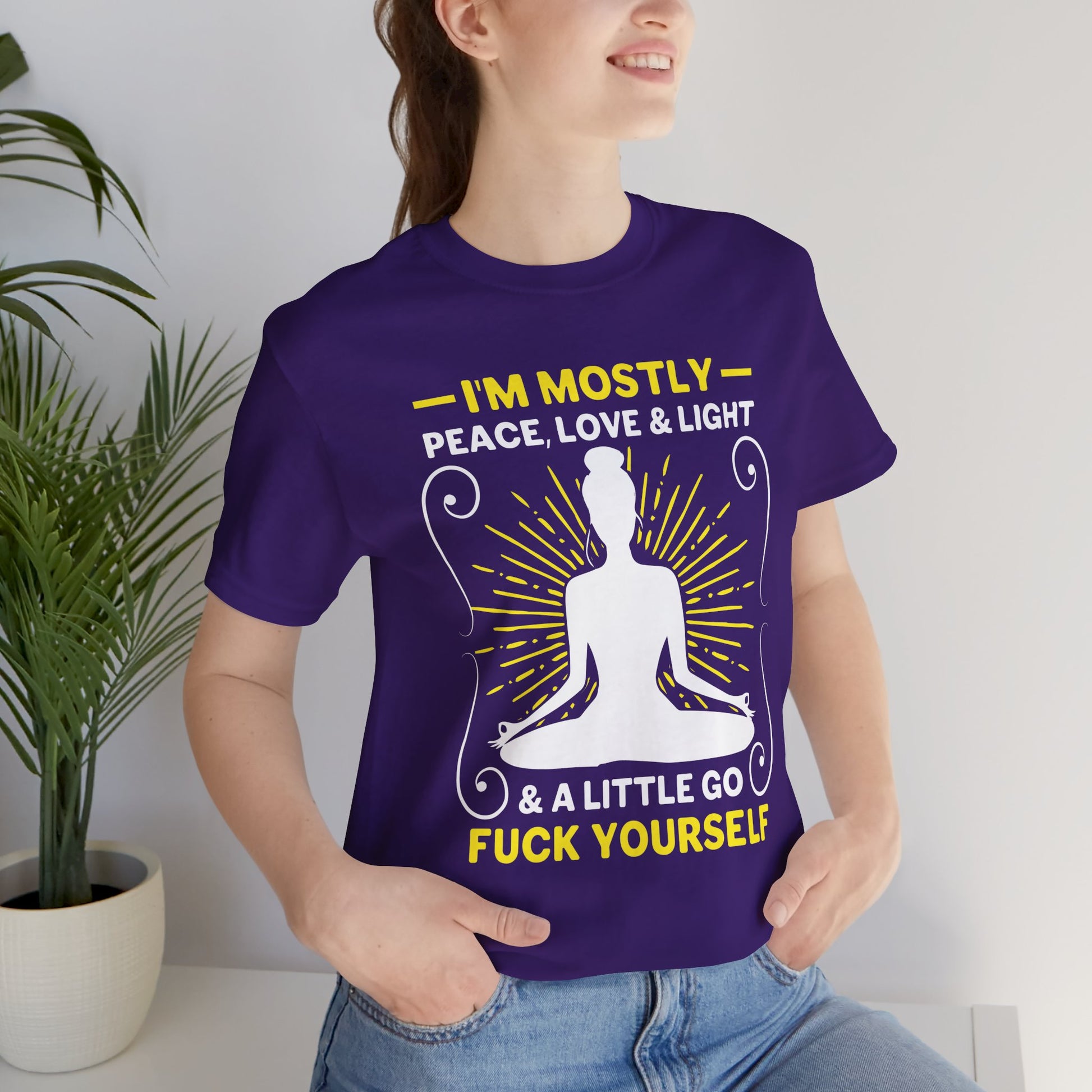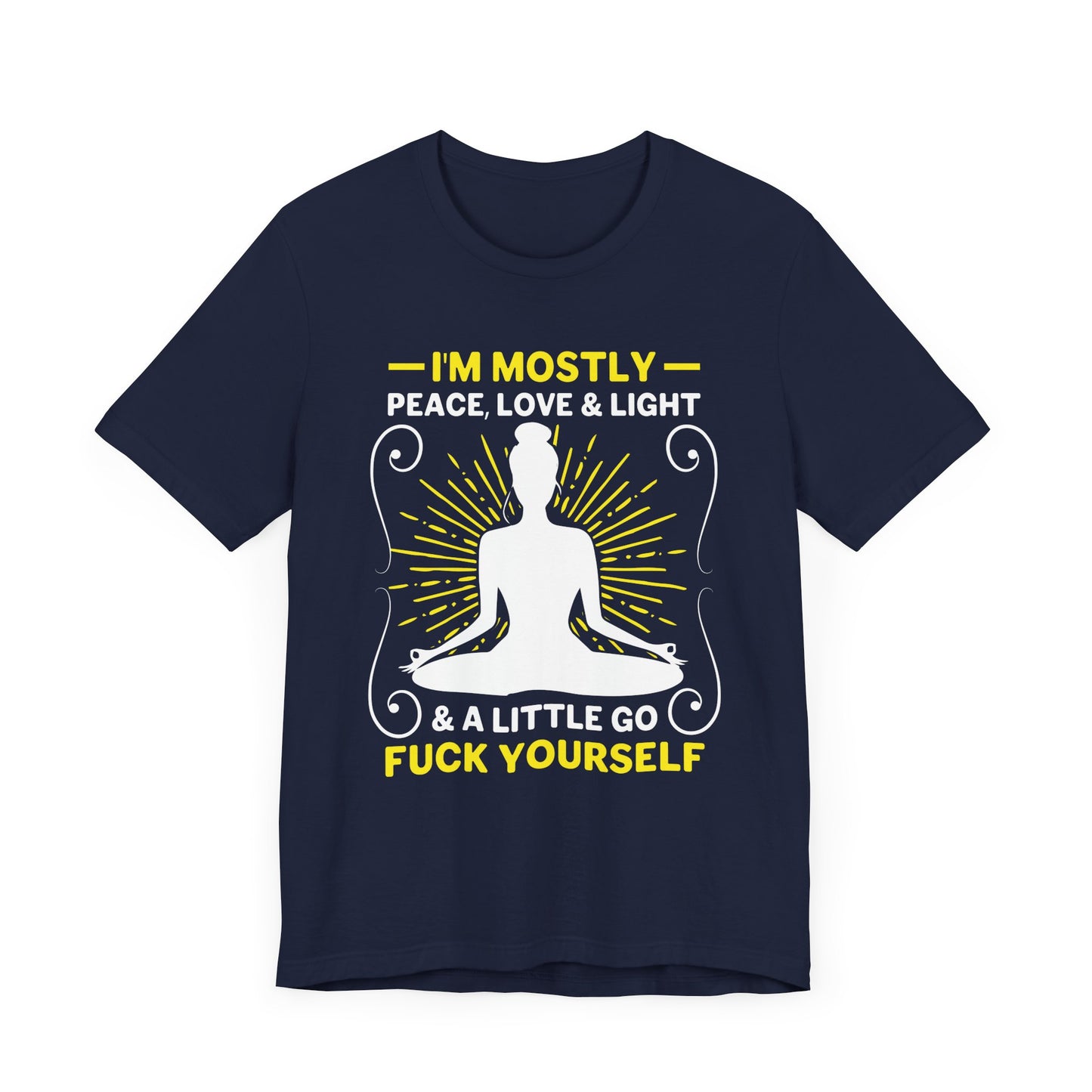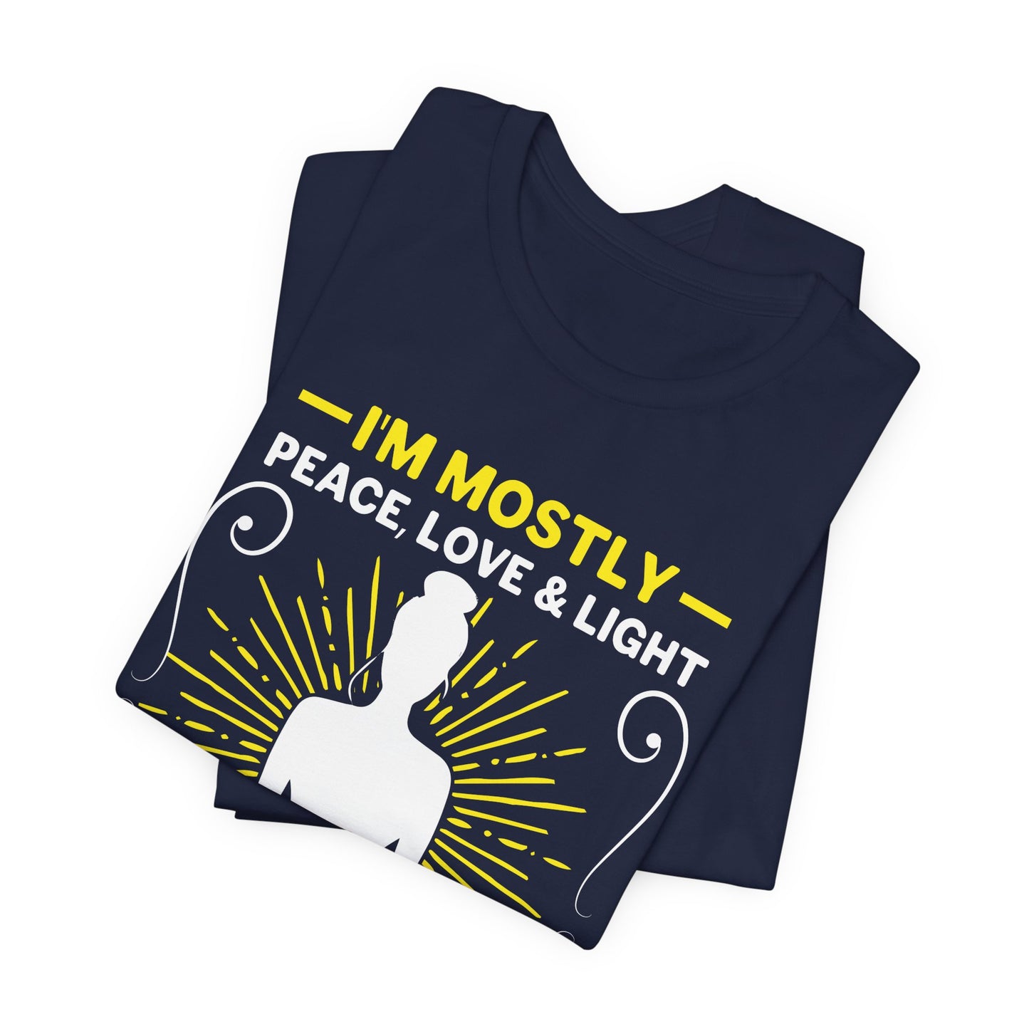Express your peaceful, loving, and light-filled nature with the “Yoga: I'm Mostly Peace, Love, & Light” Unisex Jersey Short Sleeve Tee. Order yours today and let your inner light shine through.