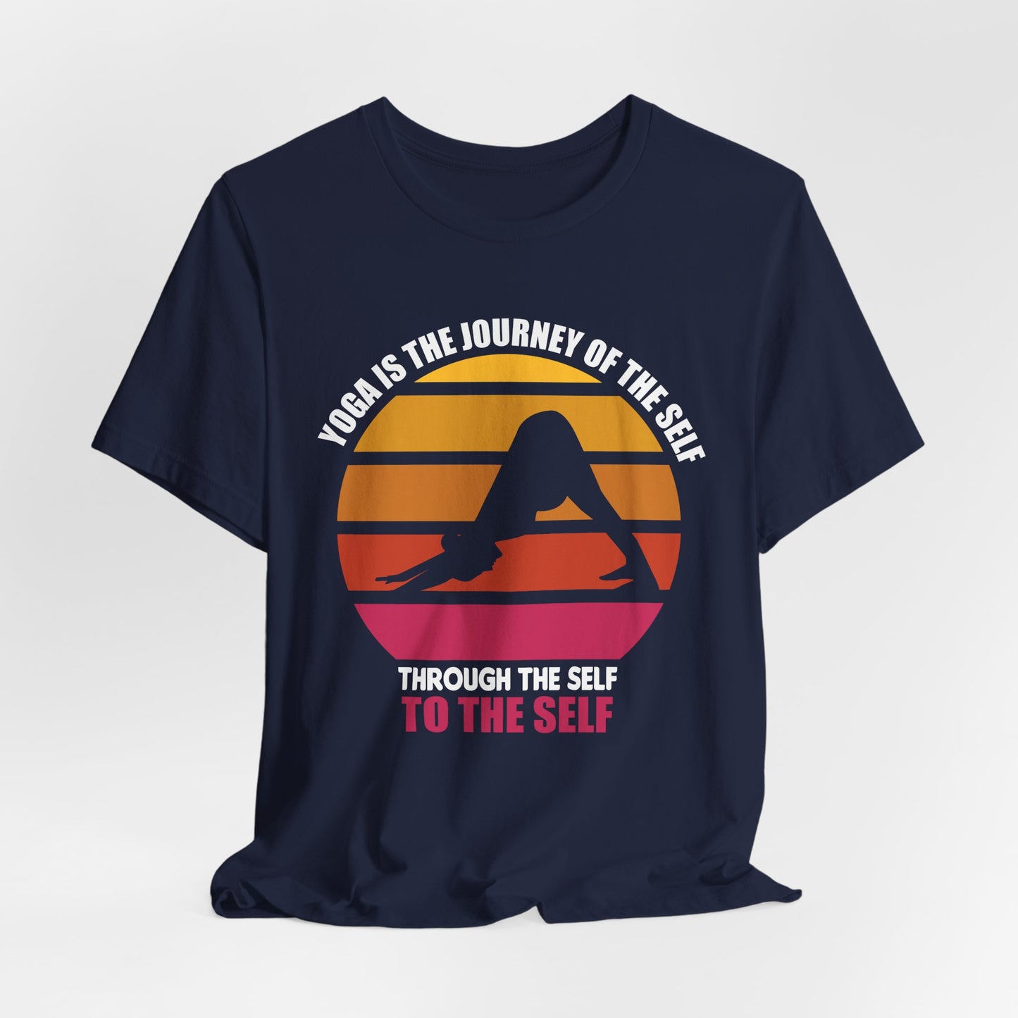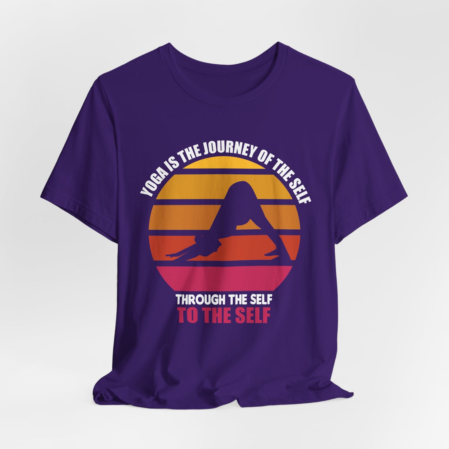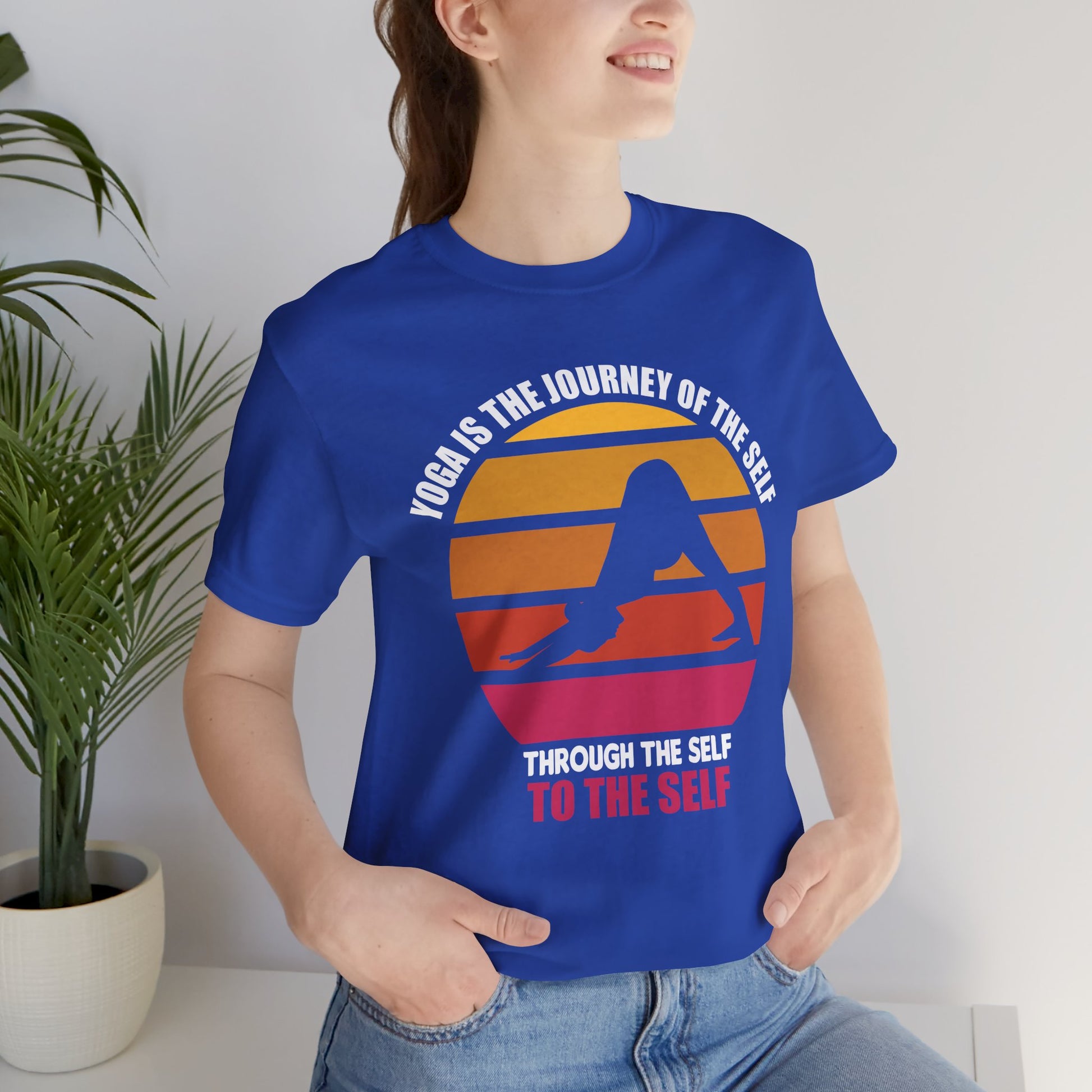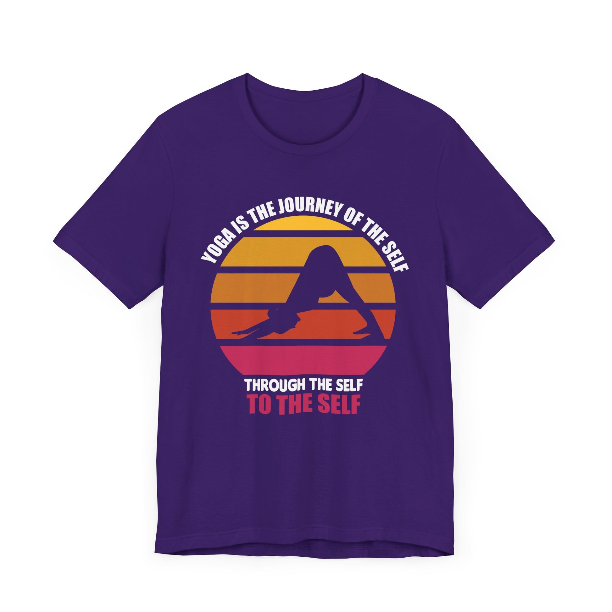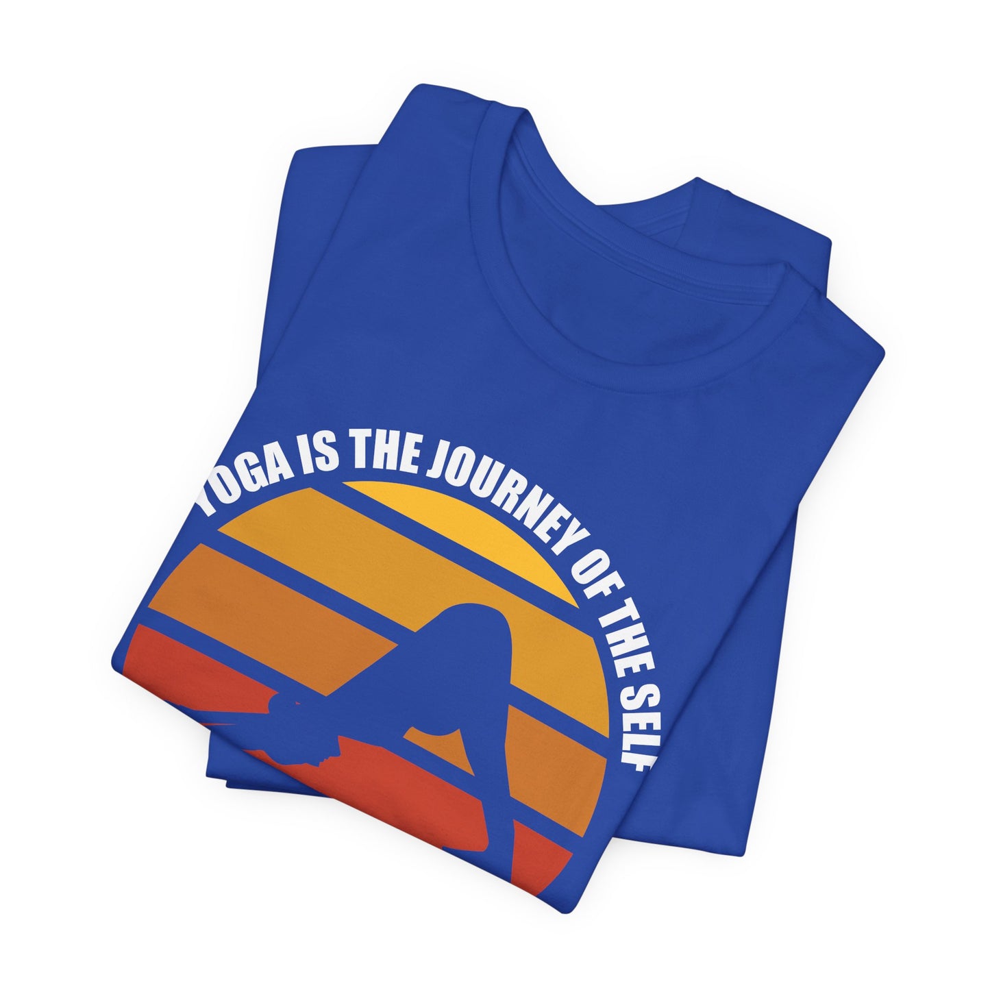 Embrace the profound journey of yoga with our "Yoga Is The Journey Of The Self Through The Self To The Self" Unisex Jersey Short Sleeve Tee. This tee captures the essence of self-discovery and inner transformation, making it a thoughtful and inspiring addition to your yoga wardrobe.