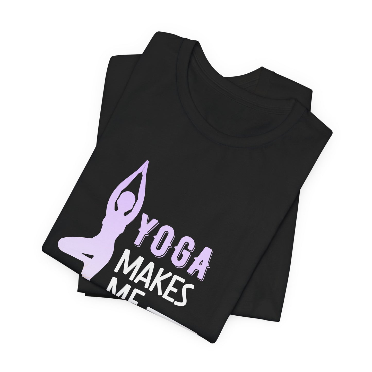 Celebrate the joy and tranquility that yoga brings with the Yoga Makes Me Happy Unisex Jersey Short Sleeve Tee. Crafted for those who find their bliss on the mat, this tee combines comfort and inspiration to brighten up your day.