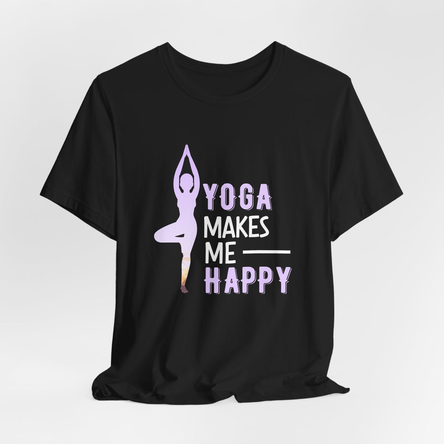 Embrace the happiness yoga brings with the Yoga Makes Me Happy tee, and spread the joy wherever you go. It’s the perfect way to share your passion for yoga and your positive outlook on life.