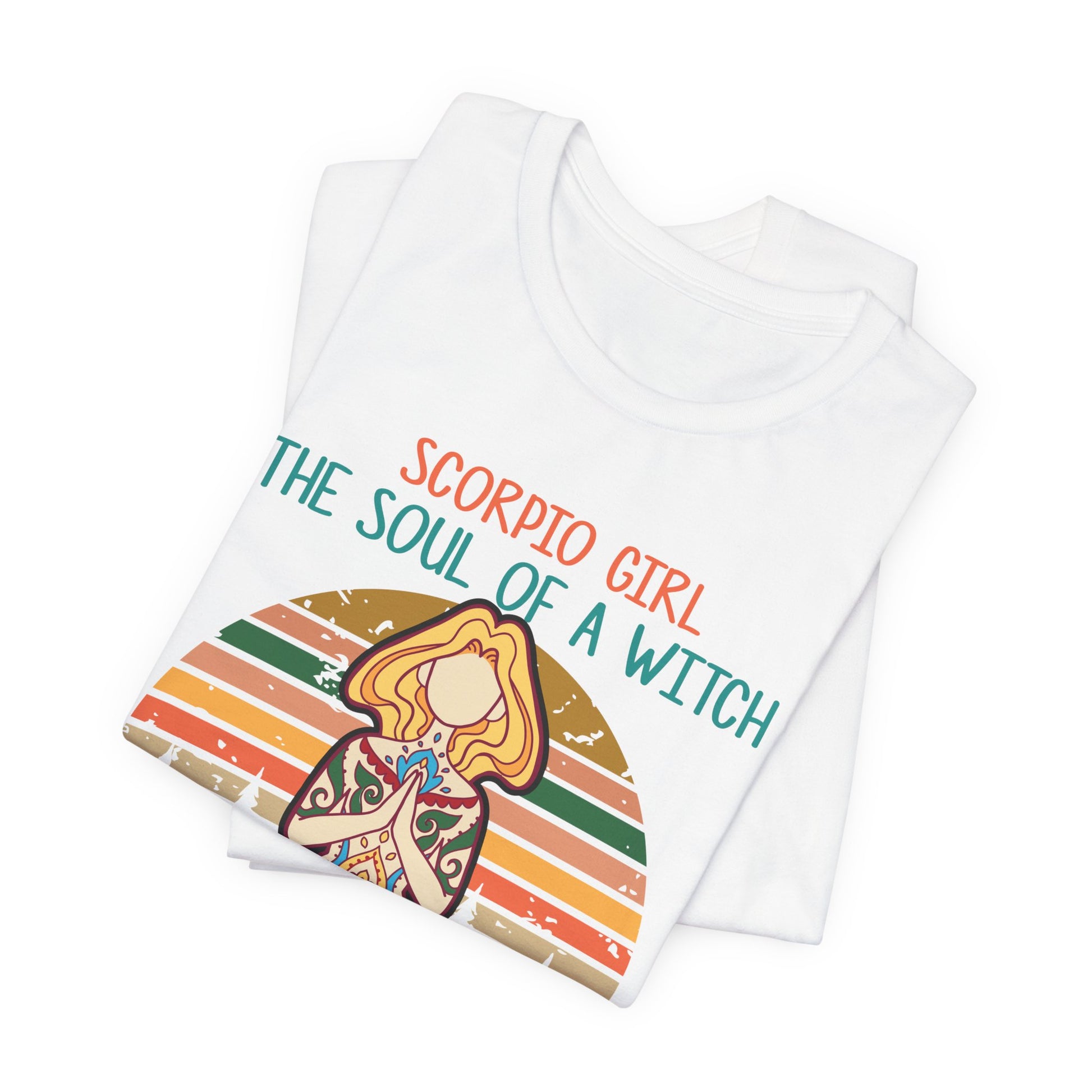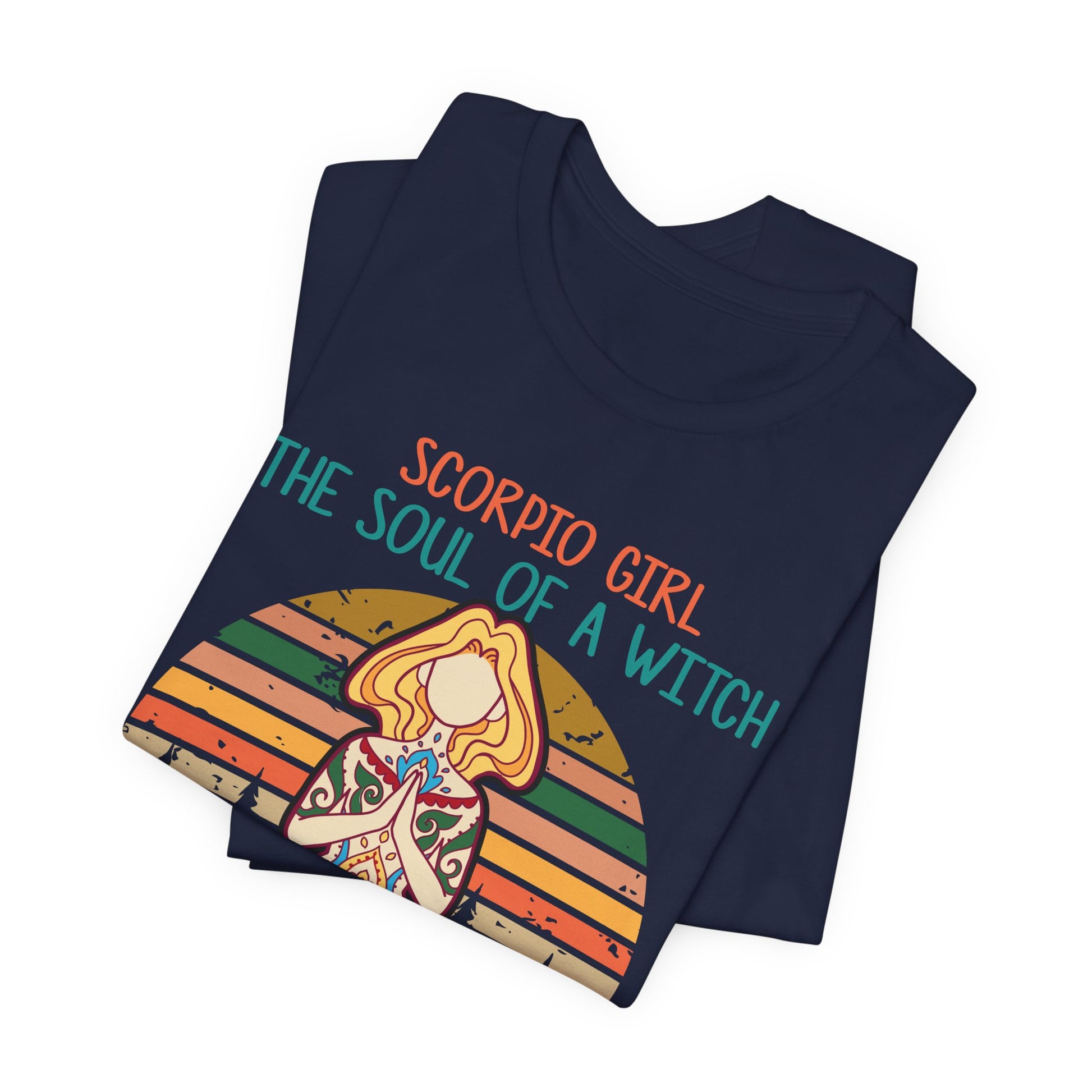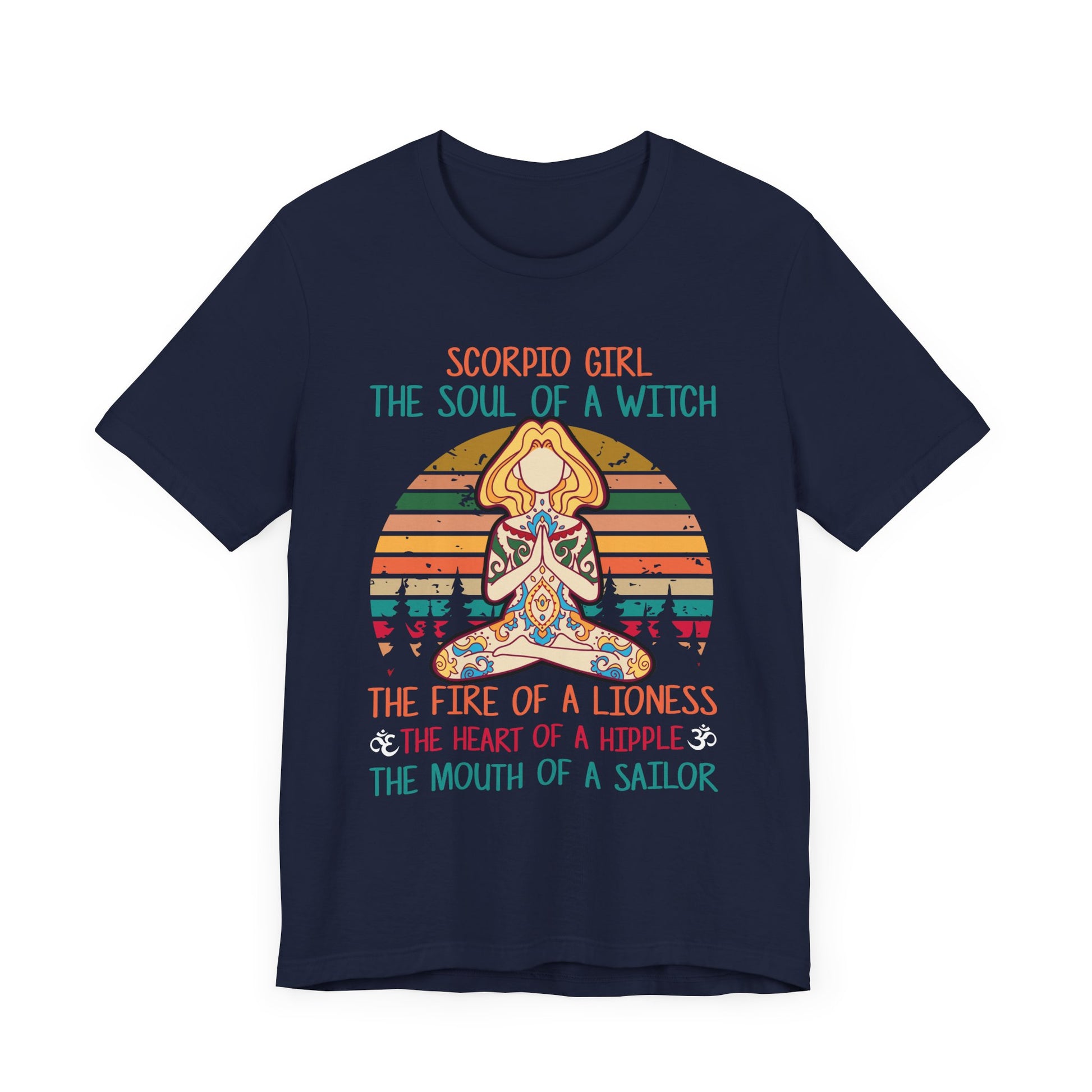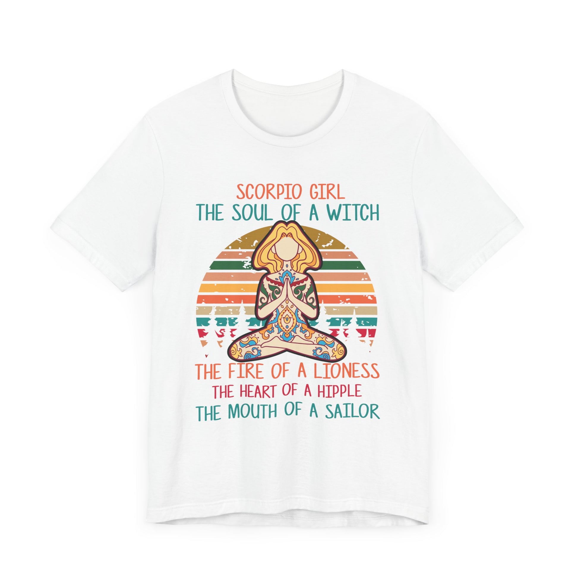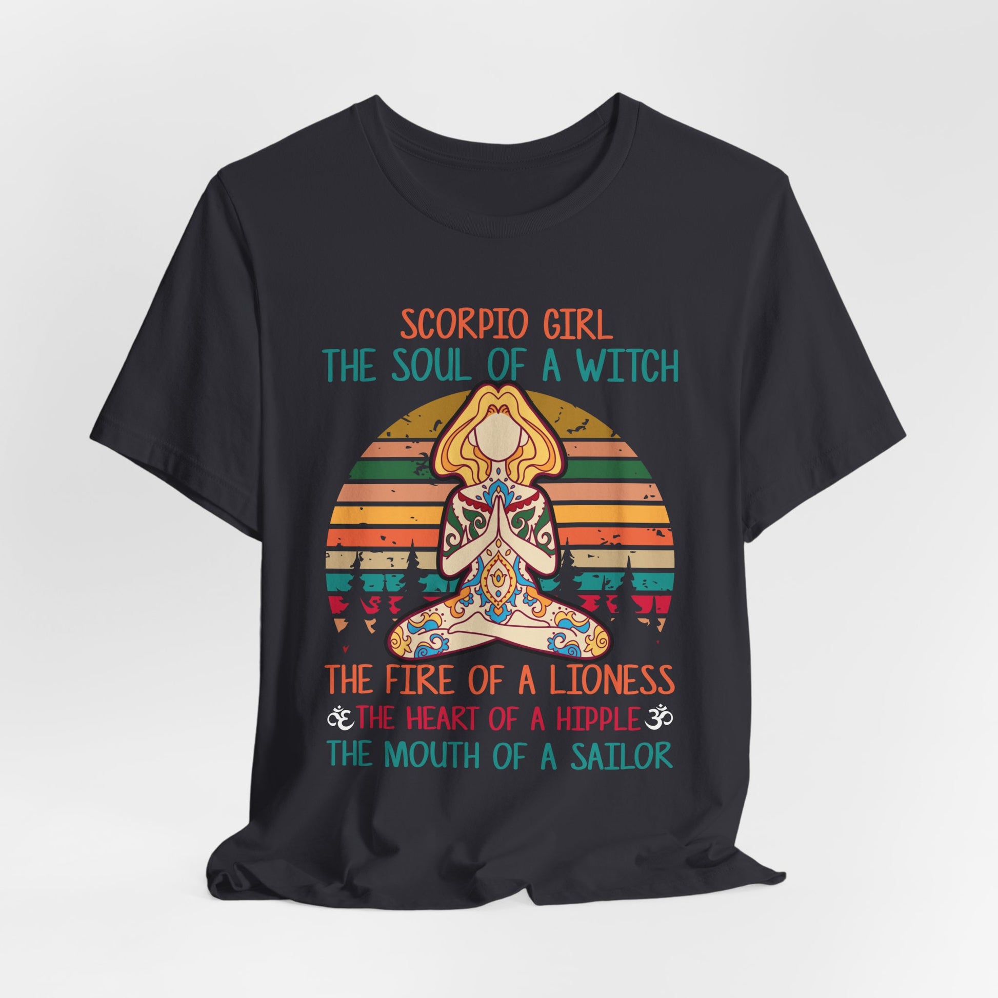 Yoga: Scorpio Girl, The Soul Of A Witch, The Fire Of A Lioness, The Heart Of A Hipple, The Mouth Of a Sailor - Unisex Jersey Short Sleeve Tee - 12529