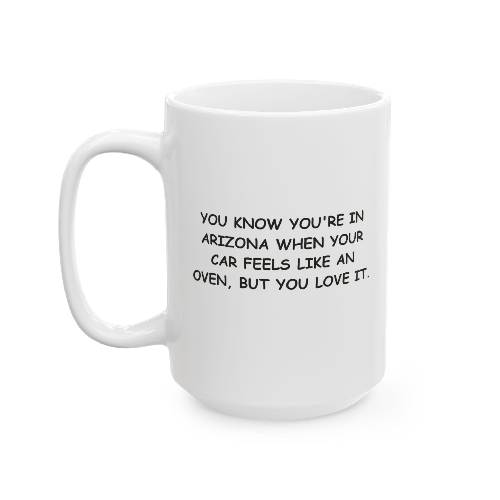 "You know you're in Arizona when your car feels like an oven, but you love it." Ceramic Mug - 13128