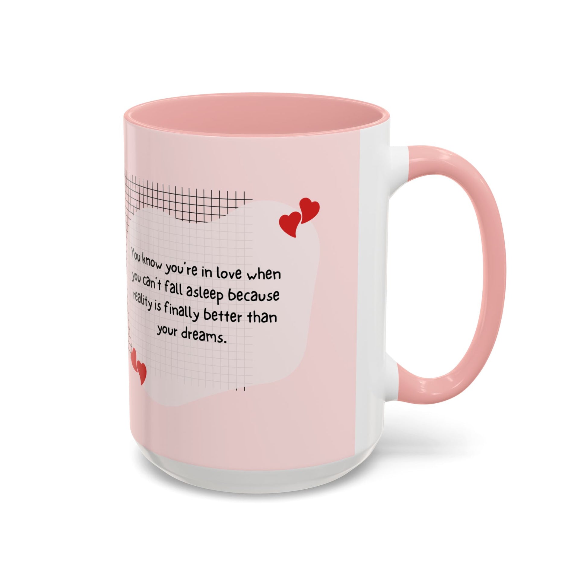 Celebrate the beauty of love with every sip. Order the You Know You're in Love When You Can't Fall Asleep accent coffee mug today and let love fill your cup!