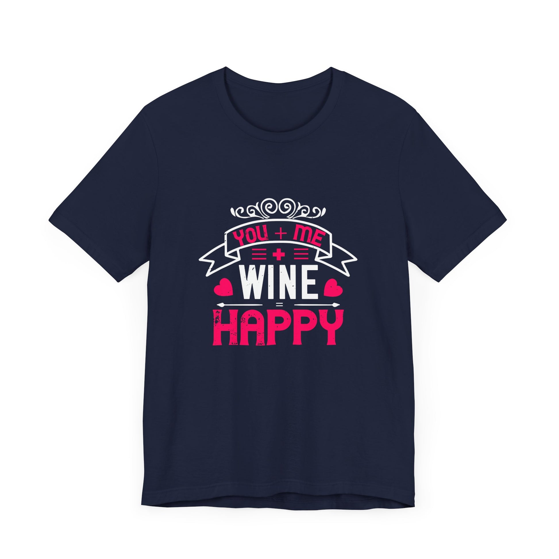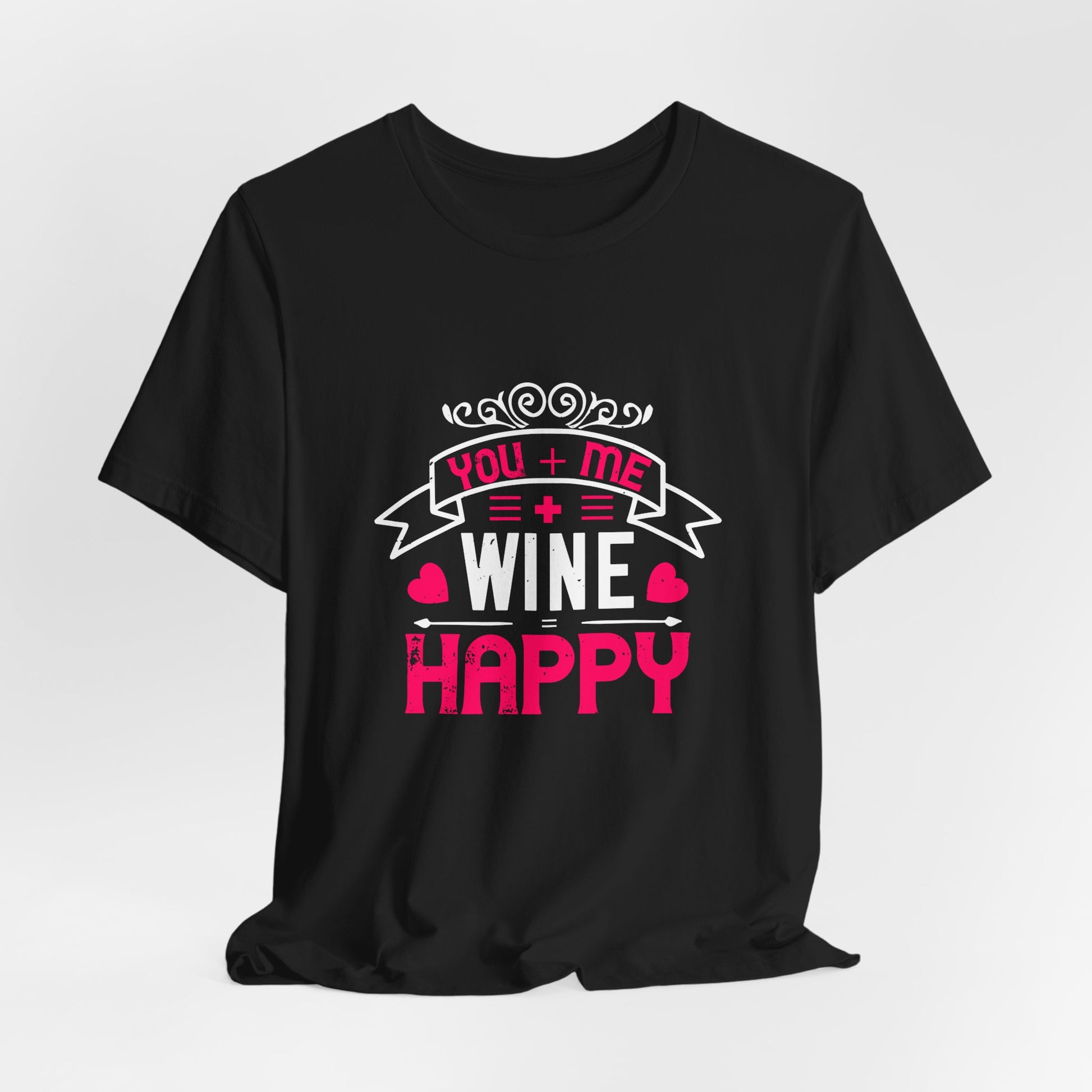 Celebrate the joy of good company and great wine with the "You + Me + Wine = Happy" tee—where comfort meets a touch of humor and fun.
