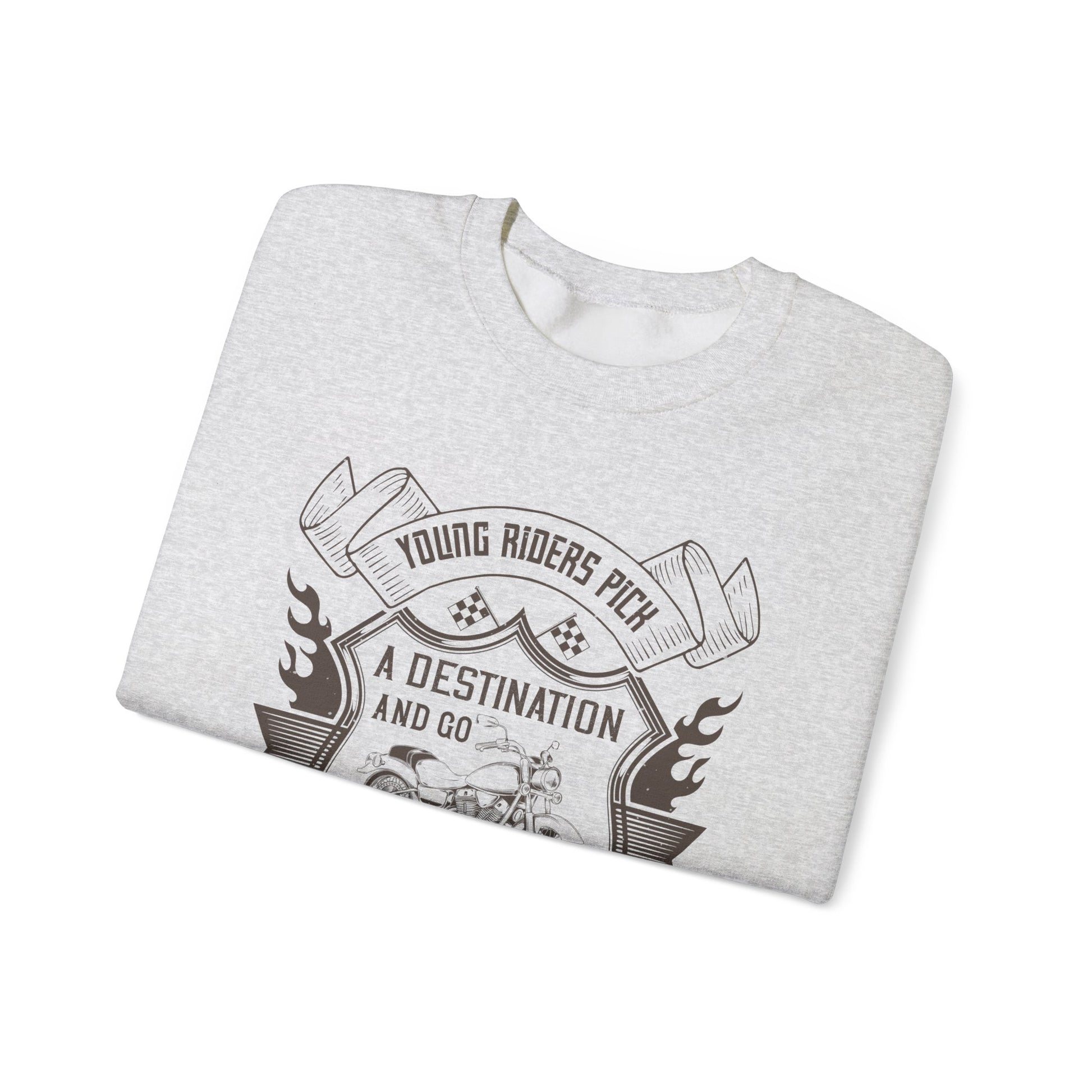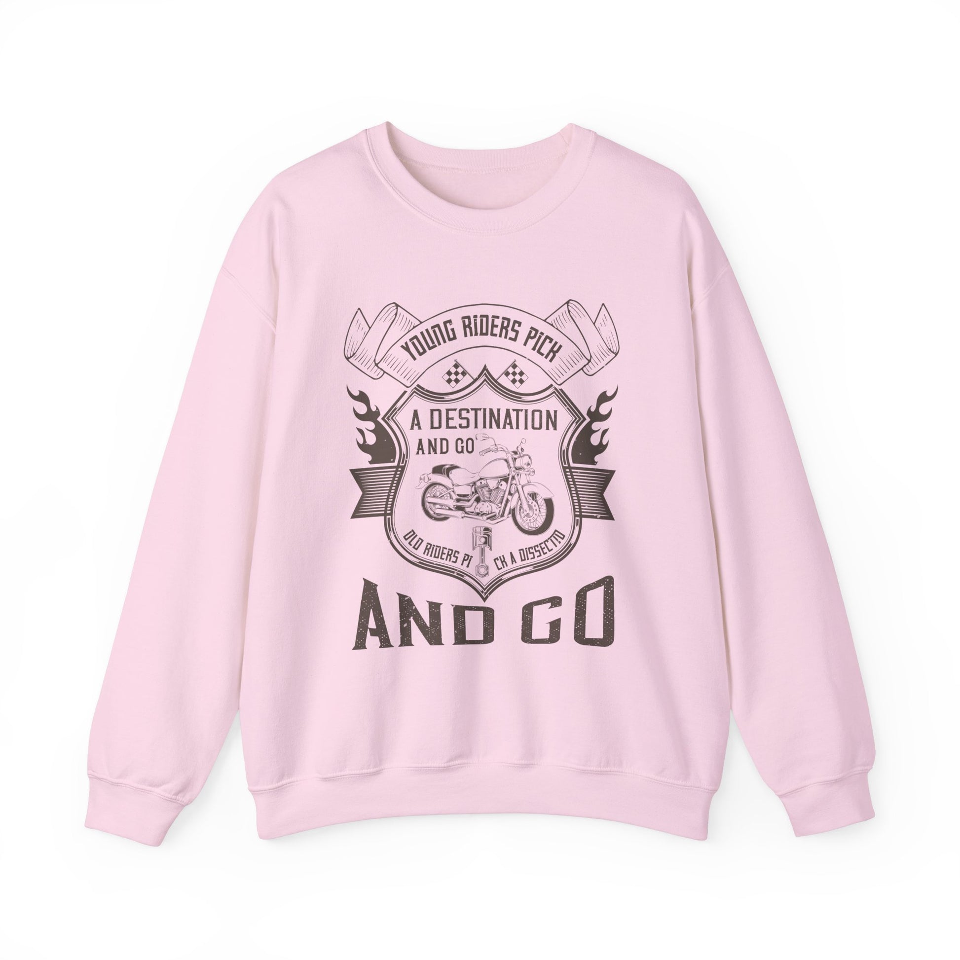 Get ready to ride in comfort and style with the Young Riders Pick a Destination and Go, Old Riders Pick a Dissection and Go Unisex Heavy Blend™ Crewneck Sweatshirt. Let this sweatshirt be a reminder that every ride is an adventure worth taking, no matter your age or experience!